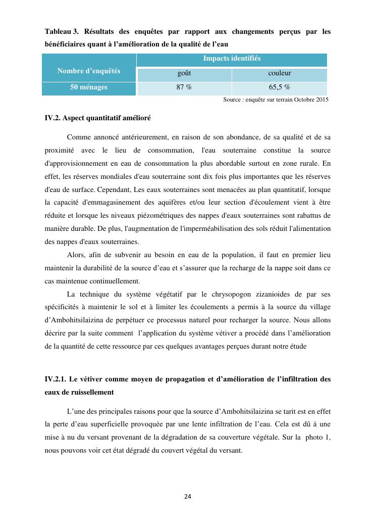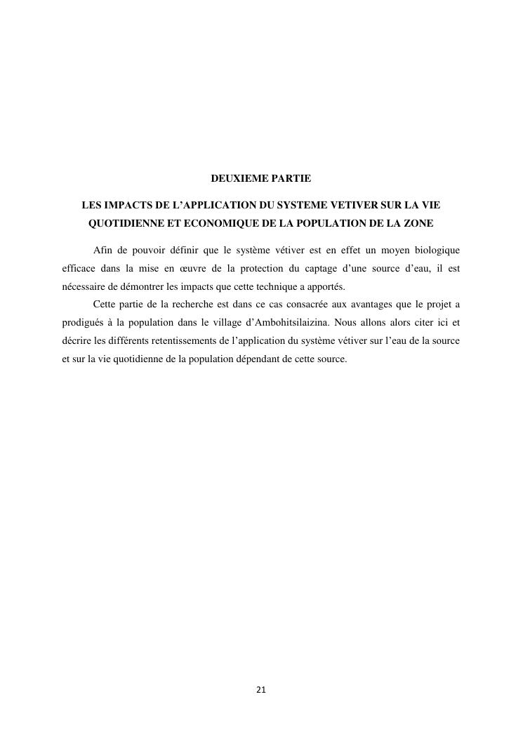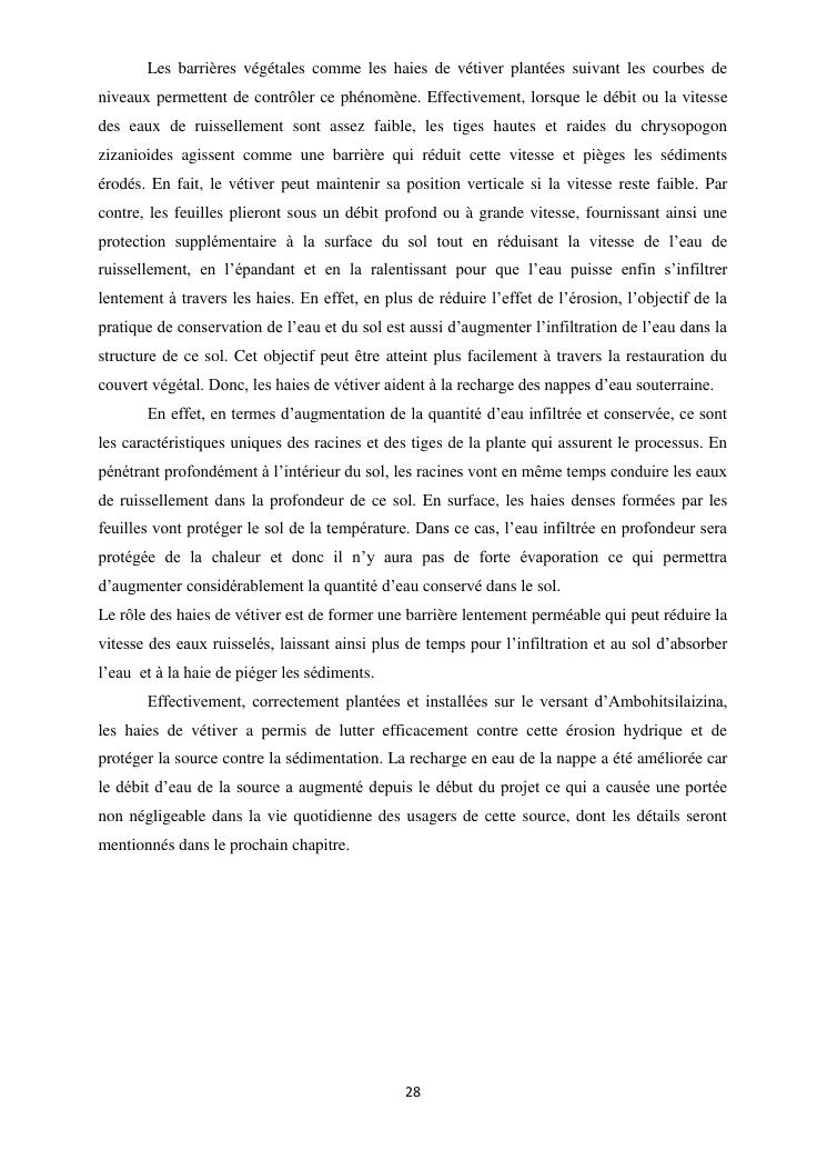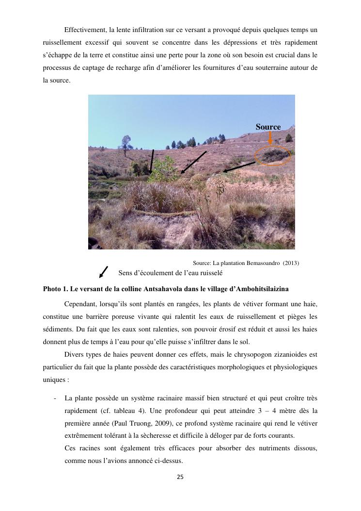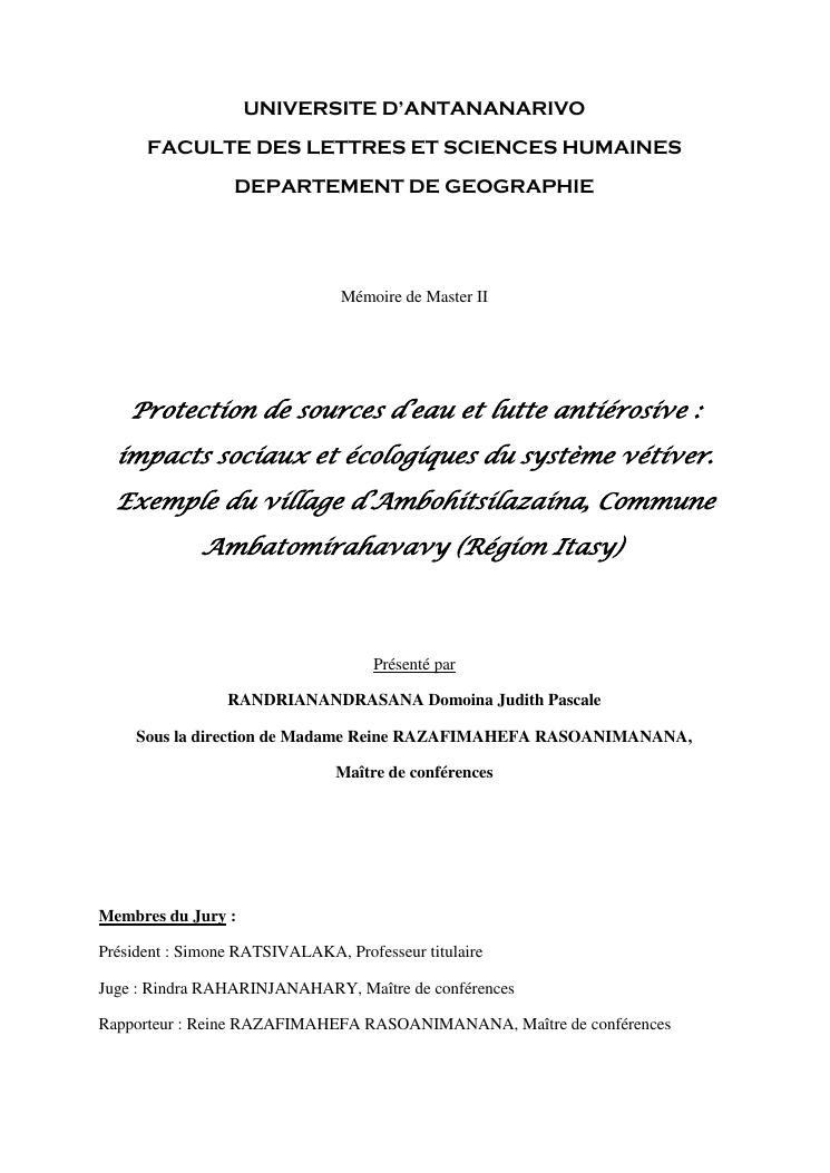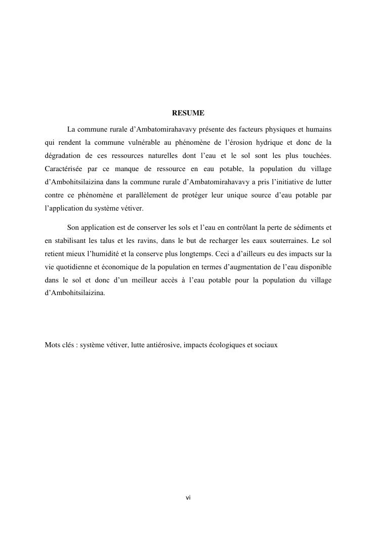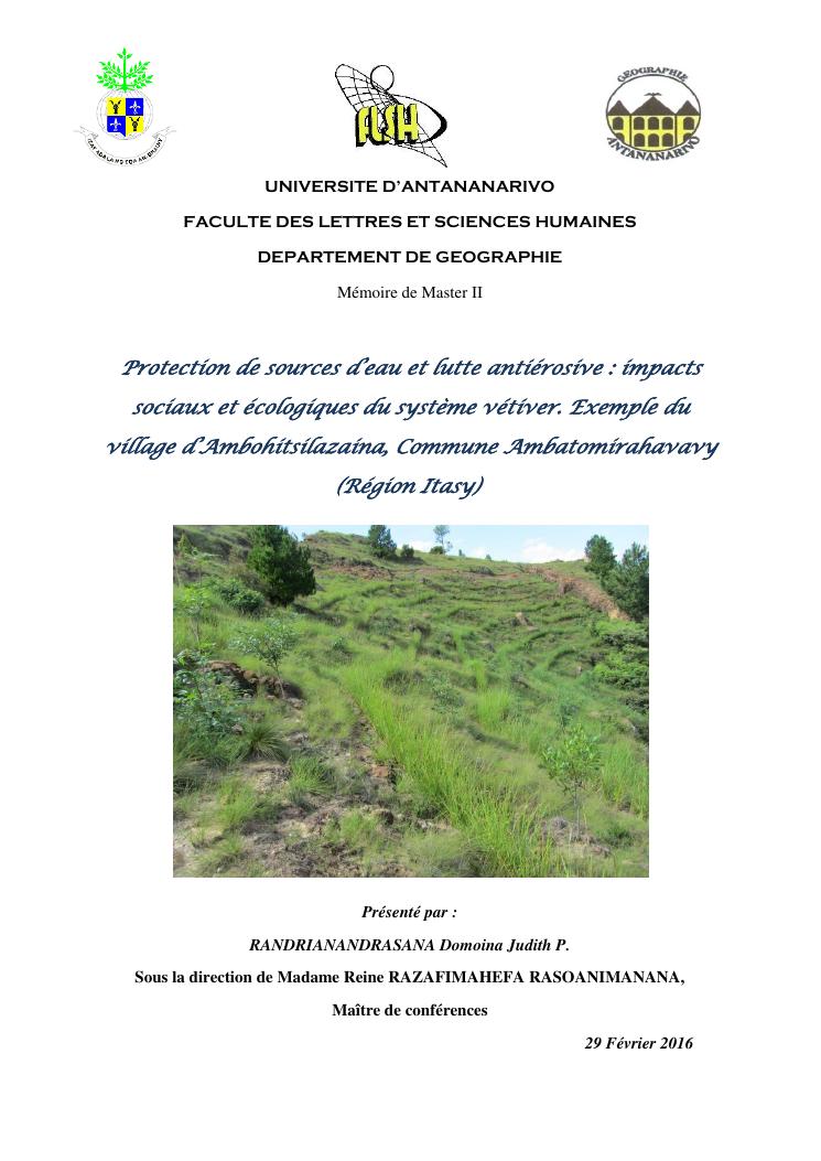 protection de sources d'eau et lutte antiérosive : impacts sociaux et écologiques du système vétiver. exemple du village d'ambohitsilazaina, commune ambatomirahavavy (région itasy)