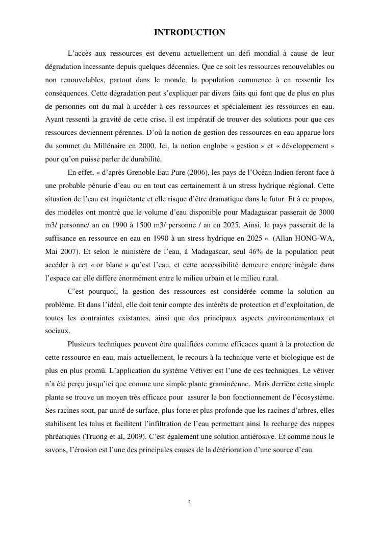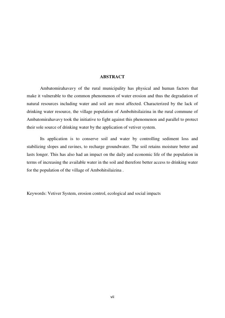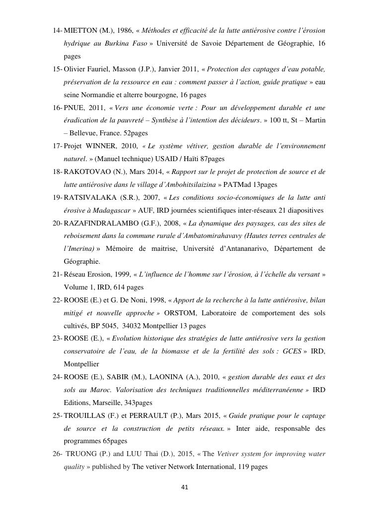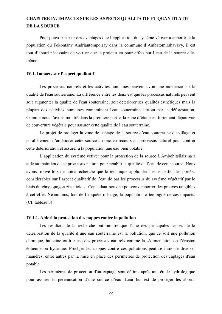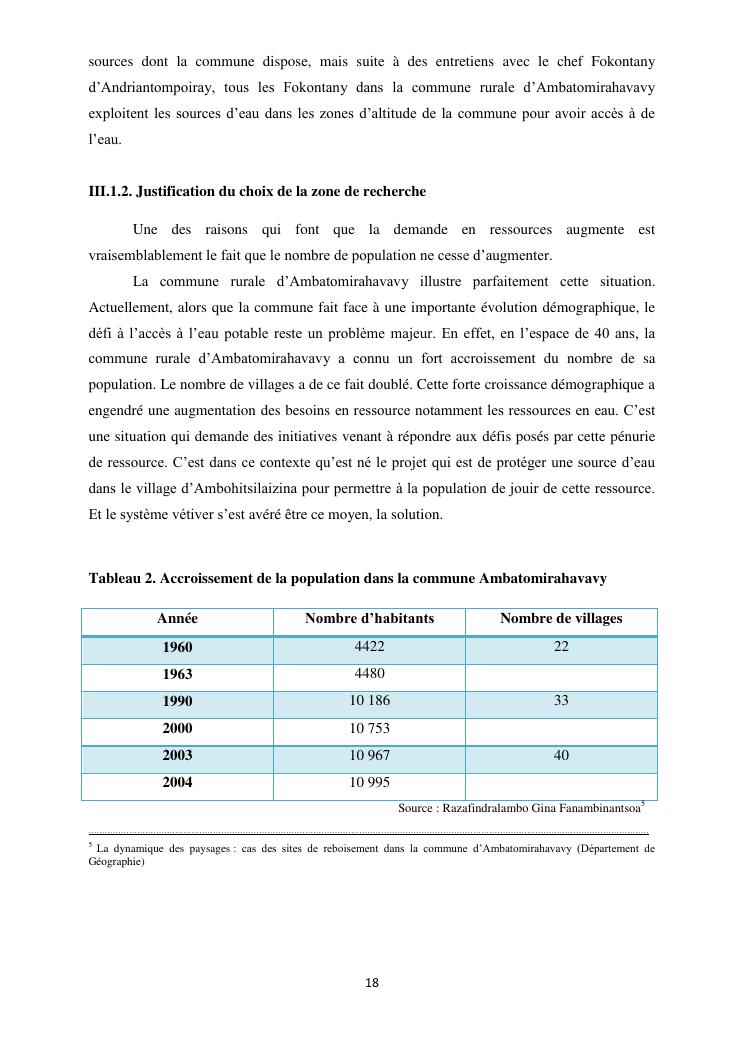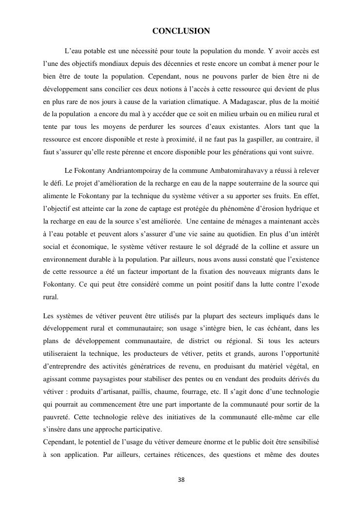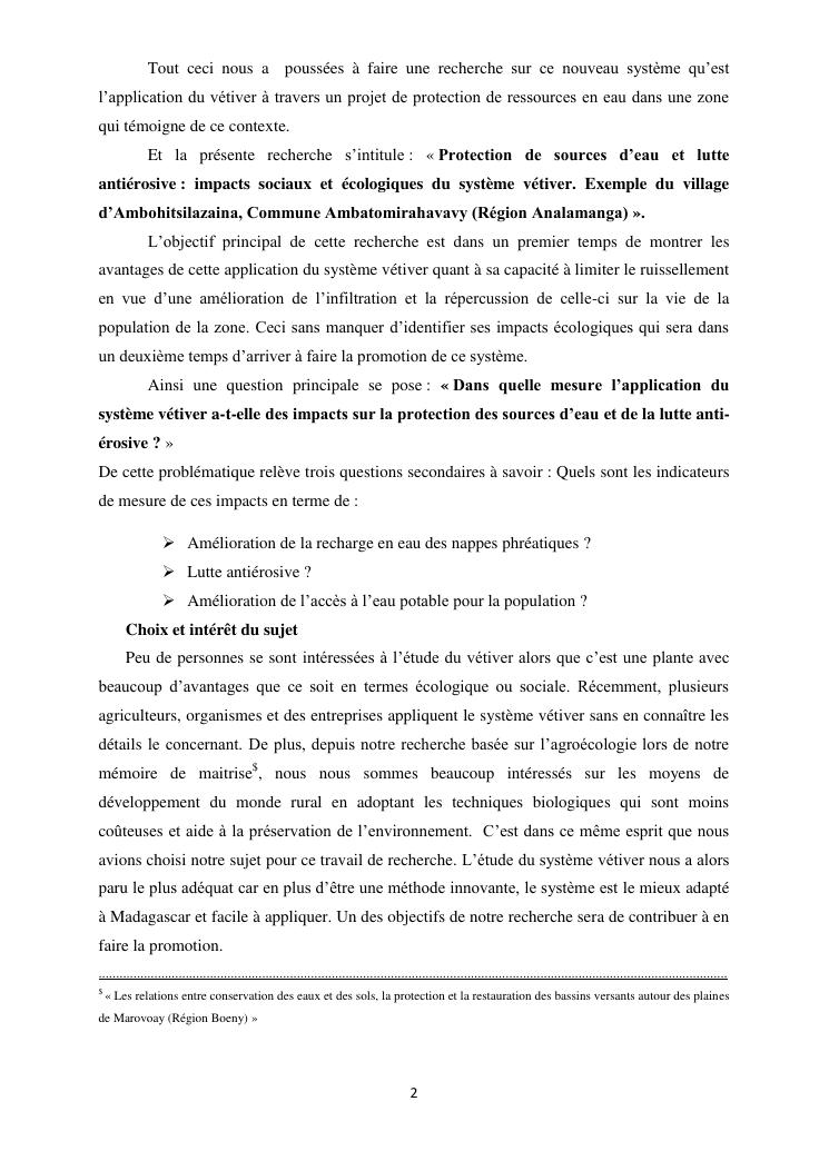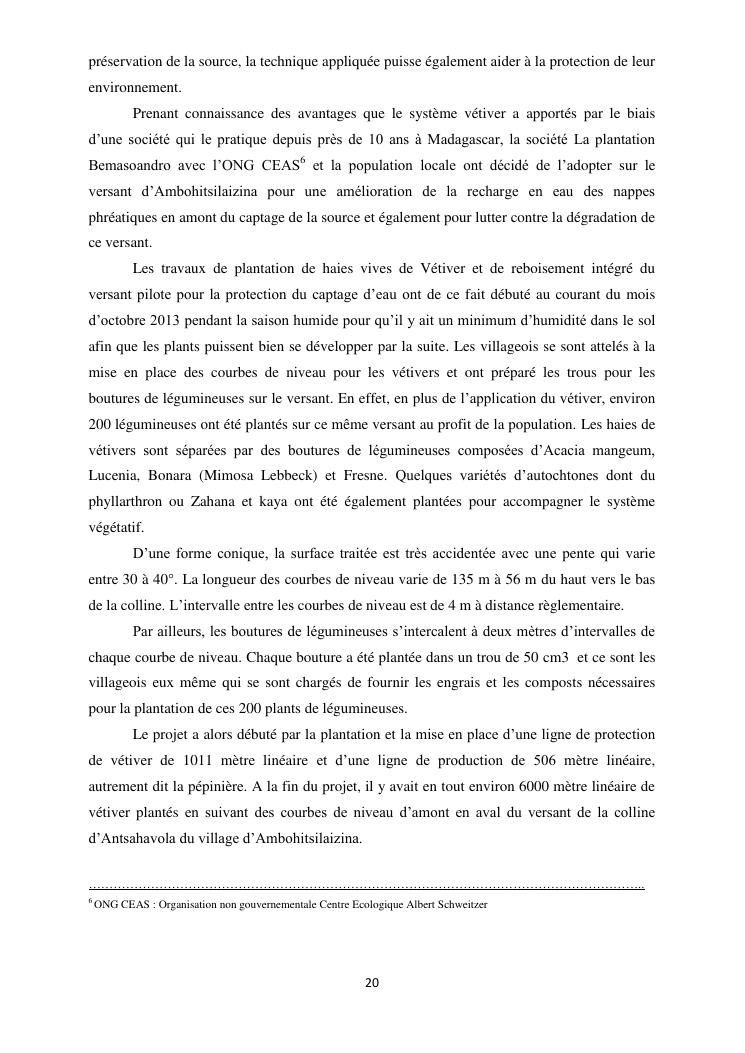 protection de sources d'eau et lutte antiérosive : impacts sociaux et écologiques du système vétiver. exemple du village d'ambohitsilazaina, commune ambatomirahavavy (région itasy)