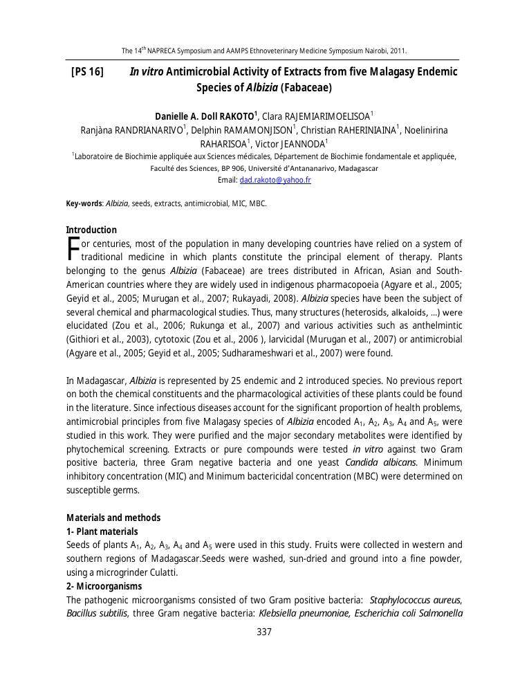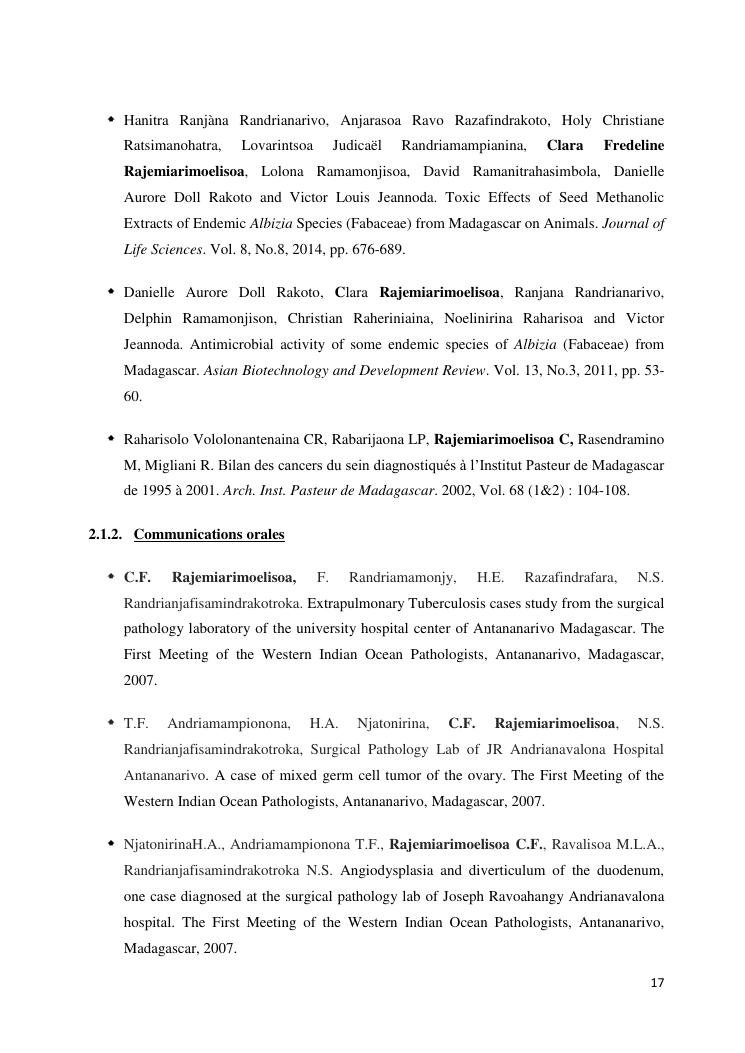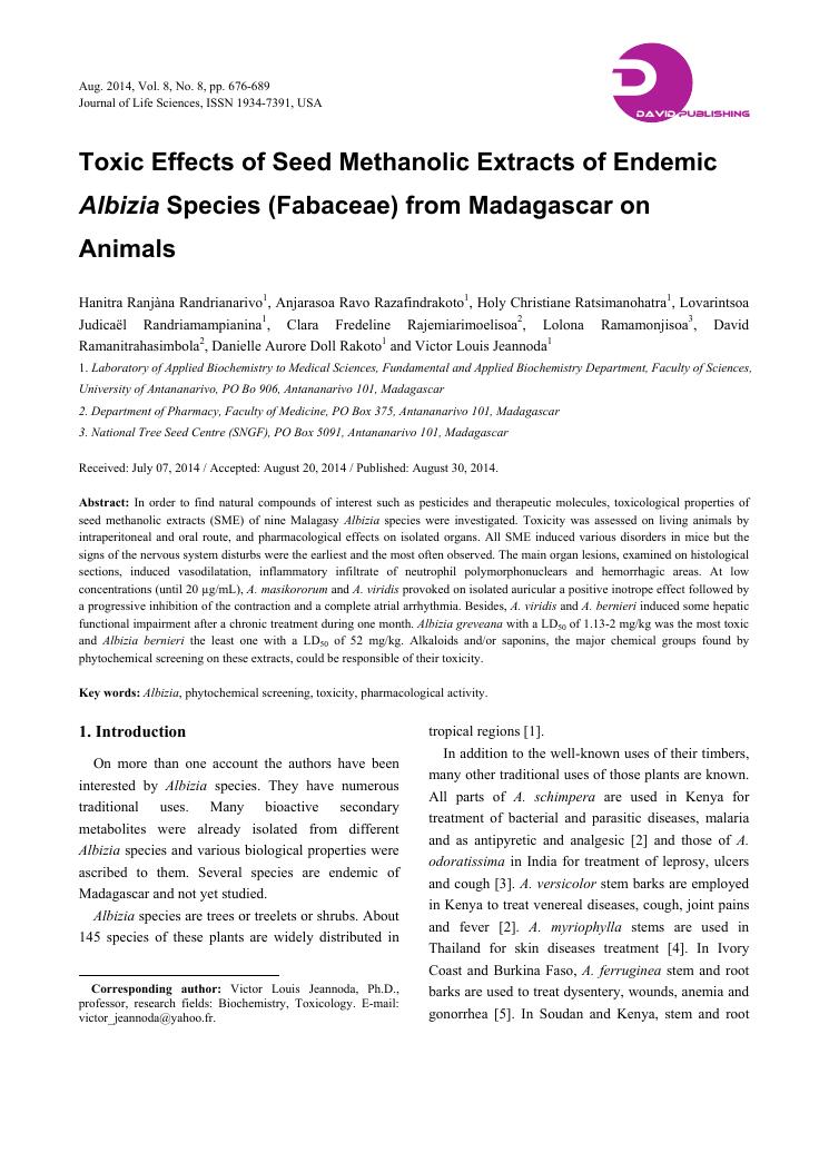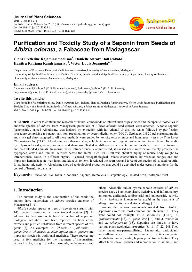 etude de plantes toxiques endémiques de madagascar etude anatomopathologique des cas cliniques. volume i : curriculum vitae productions scientifiques