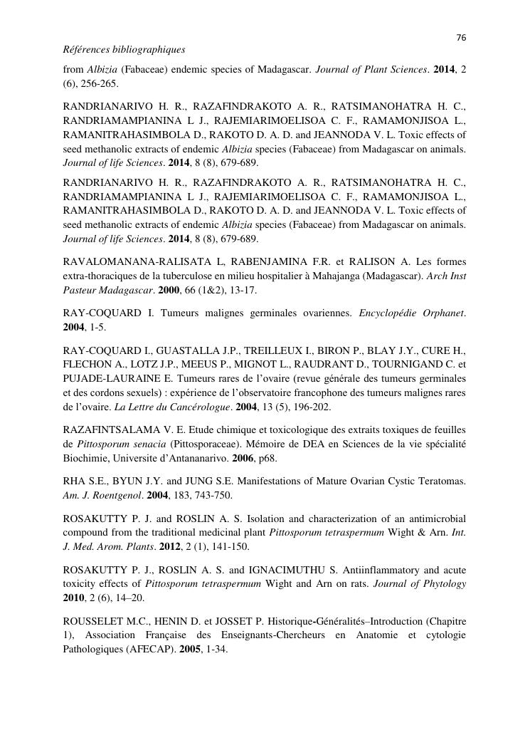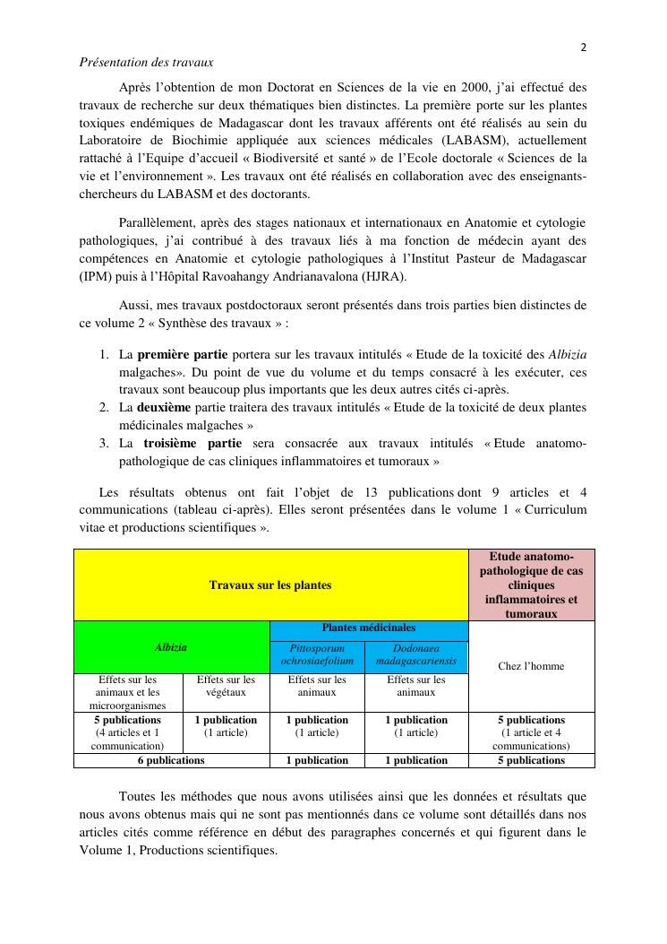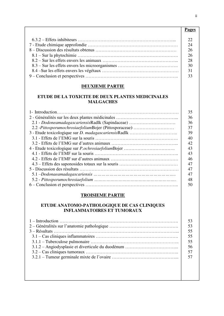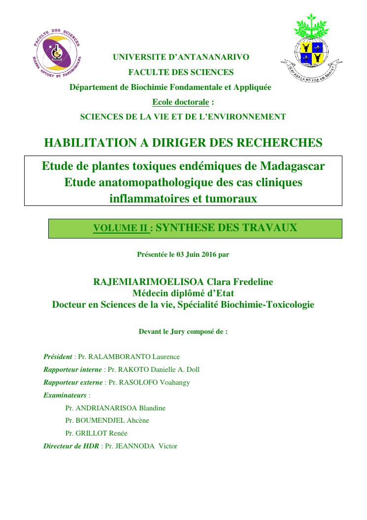etude de plantes toxiques endémiques de madagascar etude anatomopathologique des cas cliniques inflammatoires et tumoraux. volume ii : synthese des travaux
