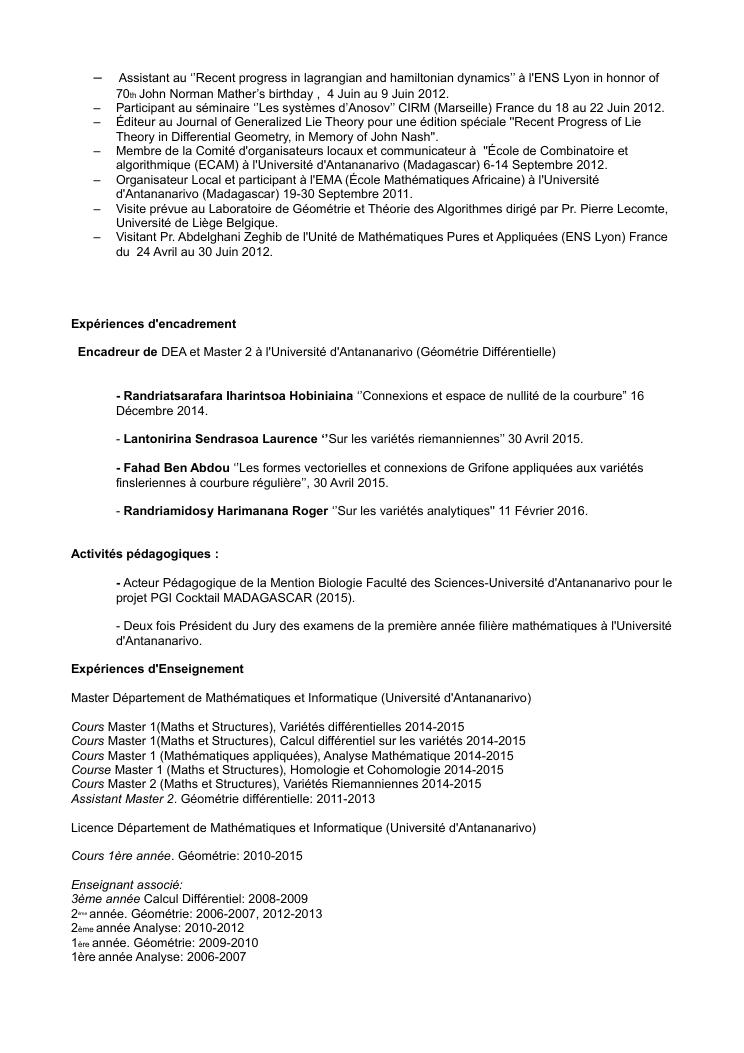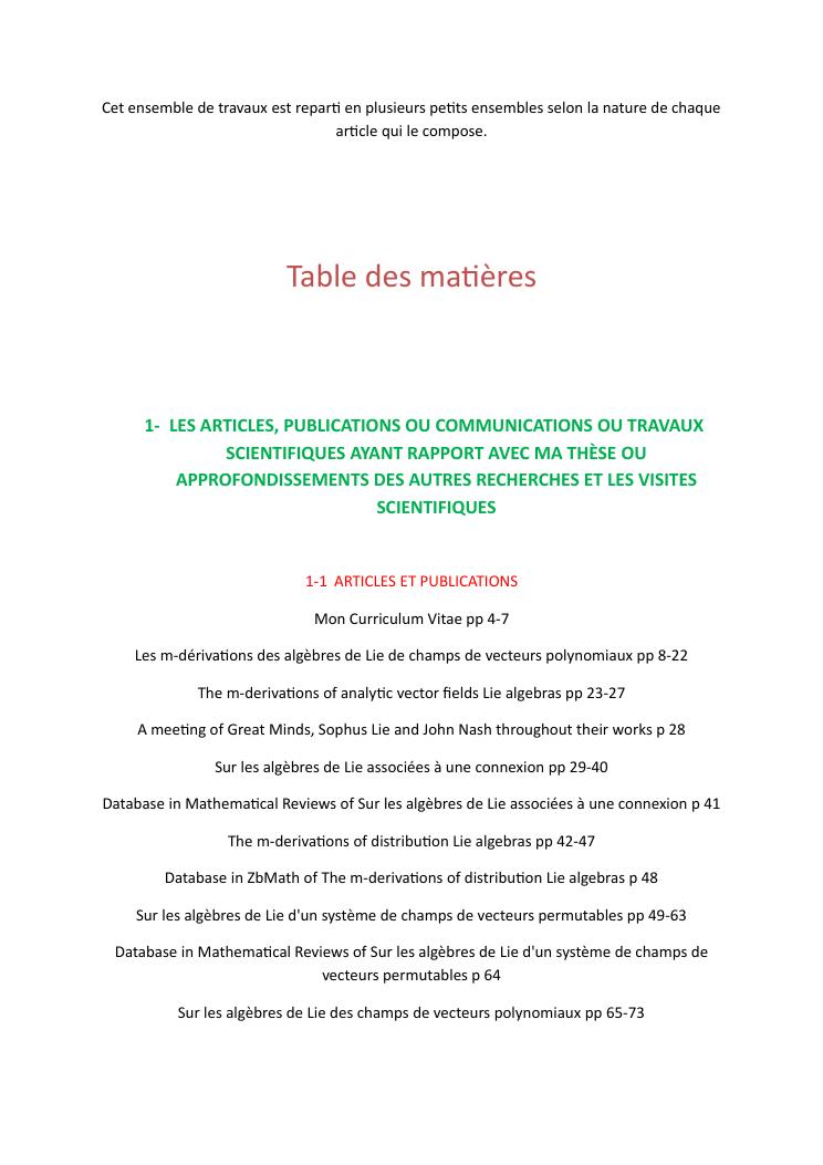 ensemble de travaux de recherches. volume 1 : curriculum vitaee et publications