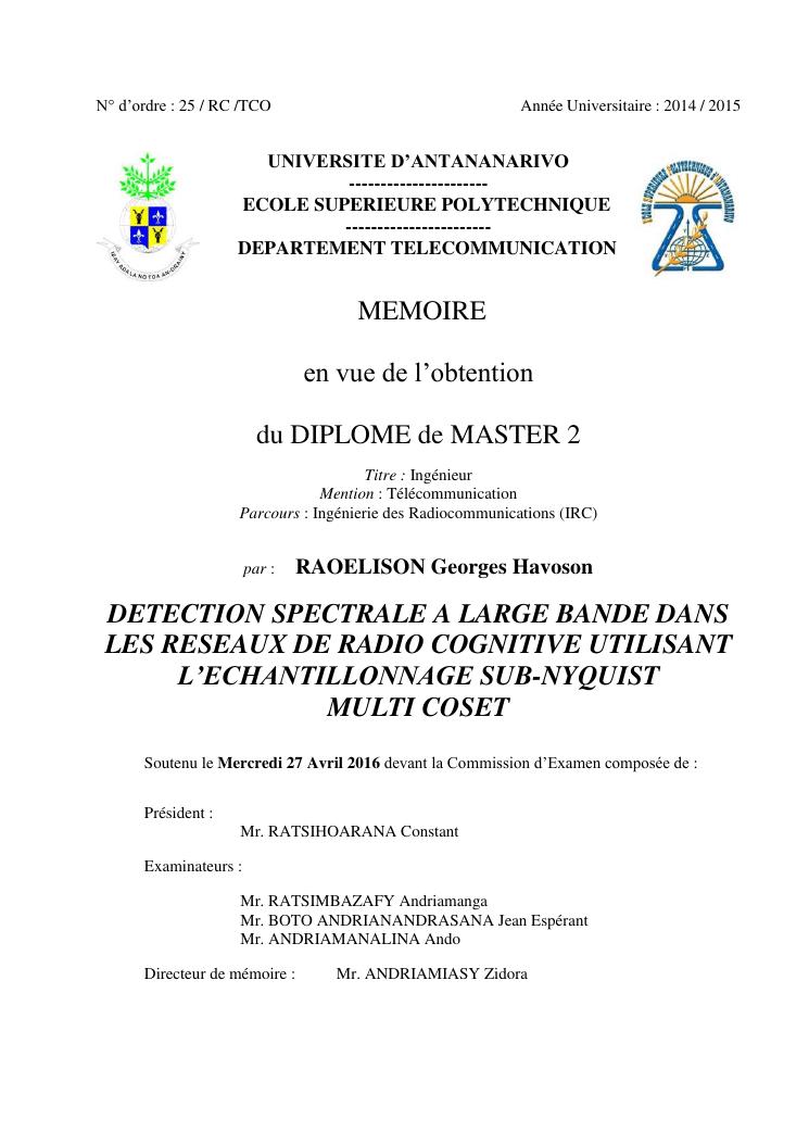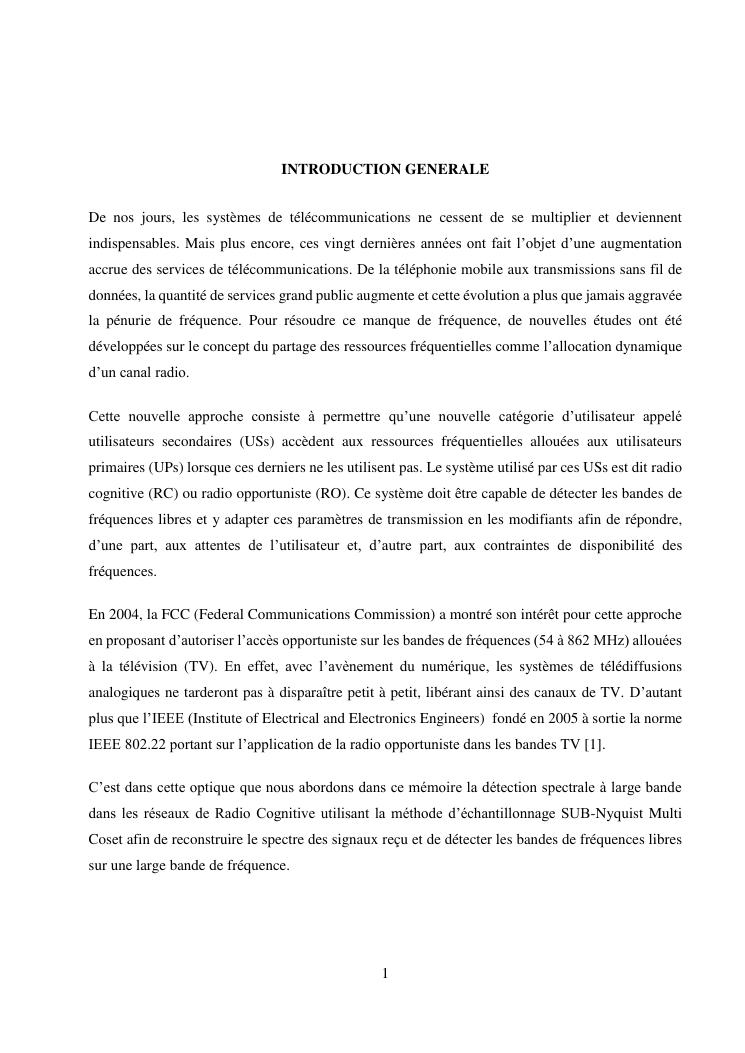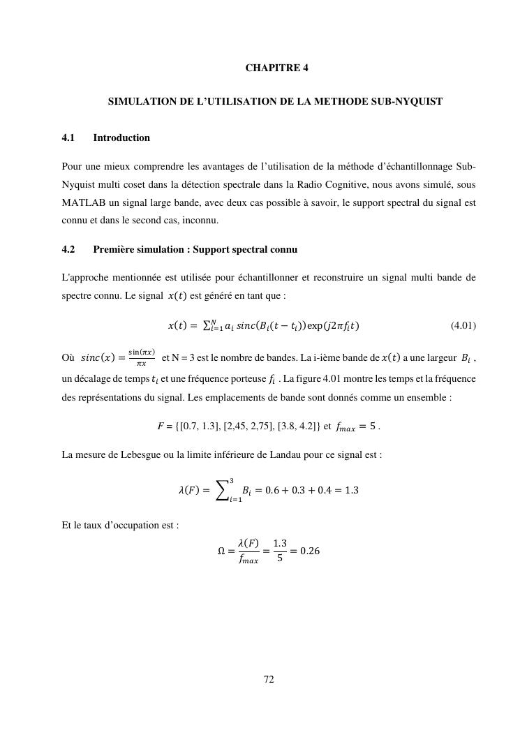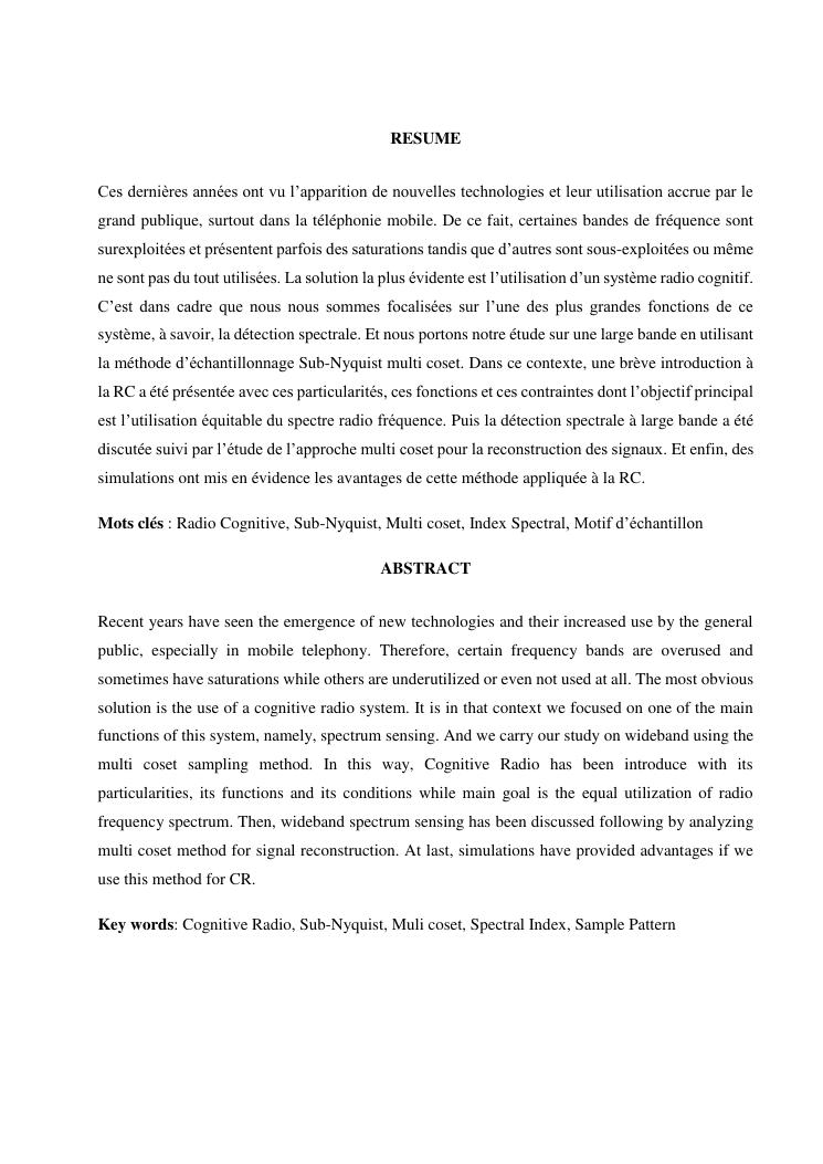 detection spectrale a large bande dans les reseaux de radio cognitive utilisant l'echantillonnage sub-nyquist multi coset