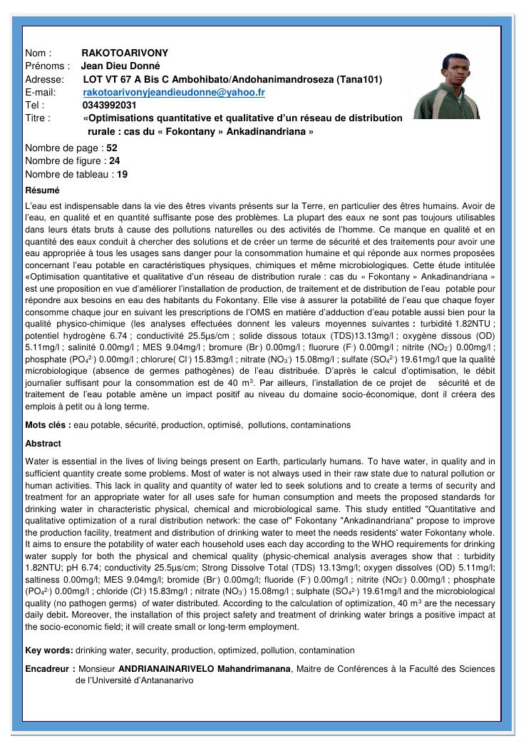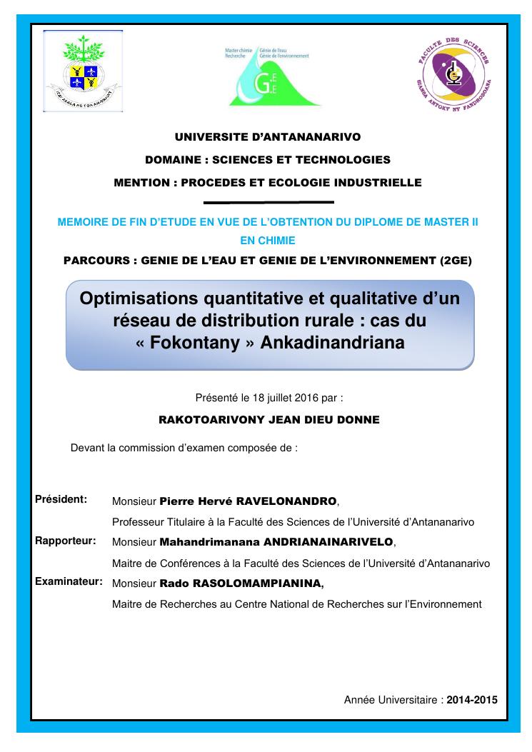 optimisations quantitative et qualitative d'un réseau de distribution rurale : cas du « fokontany » ankadinandriana