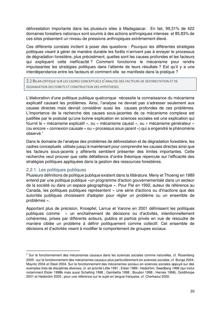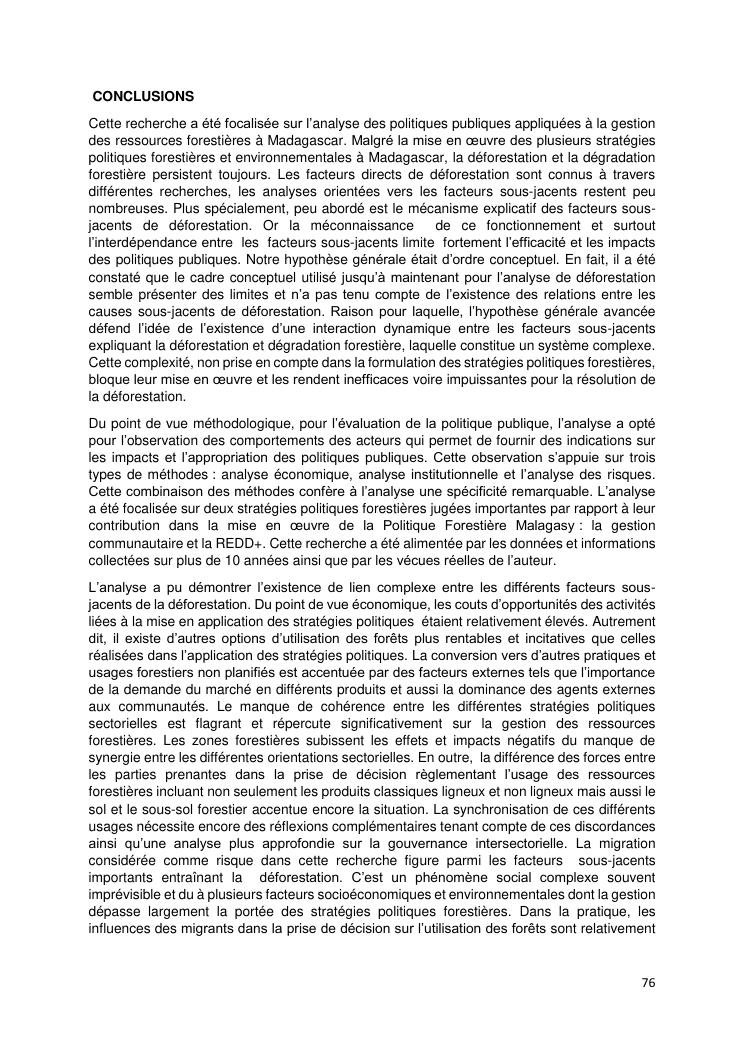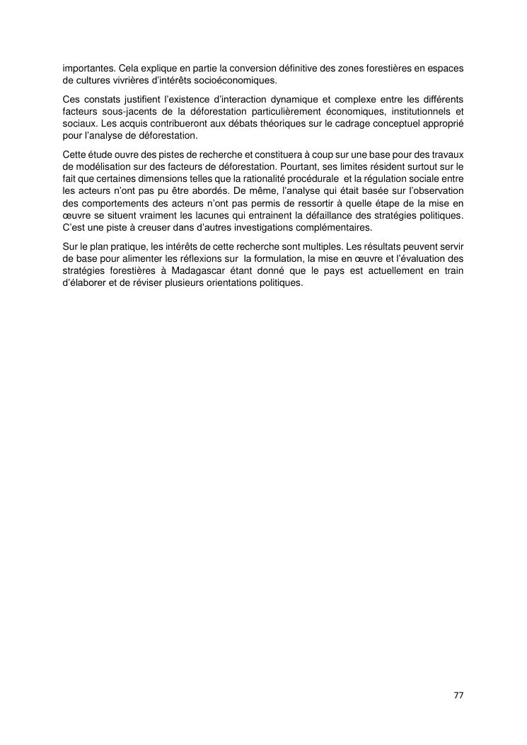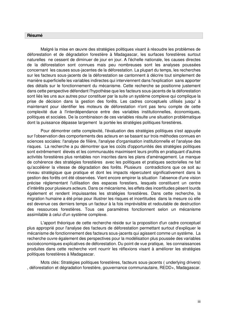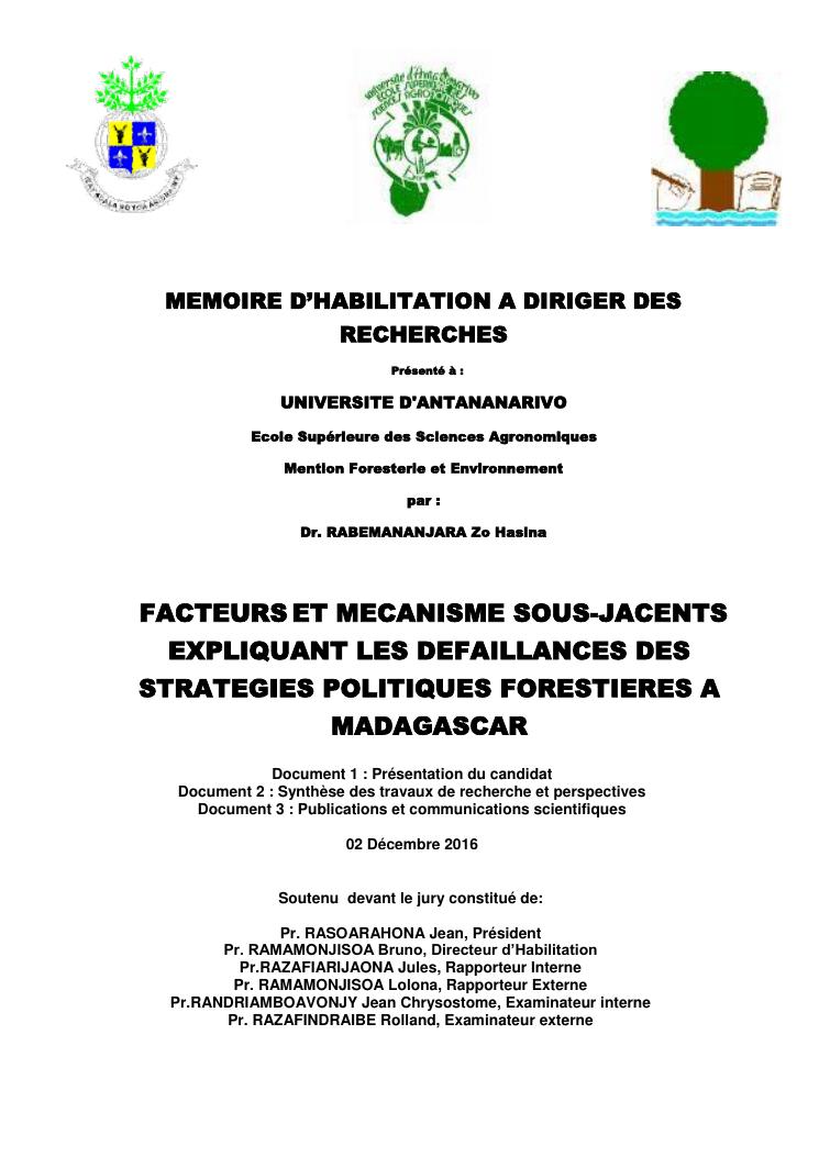facteurs et mecanisme sous-jacents expliquant les defaillances des strategies politiques forestieres a madagascar