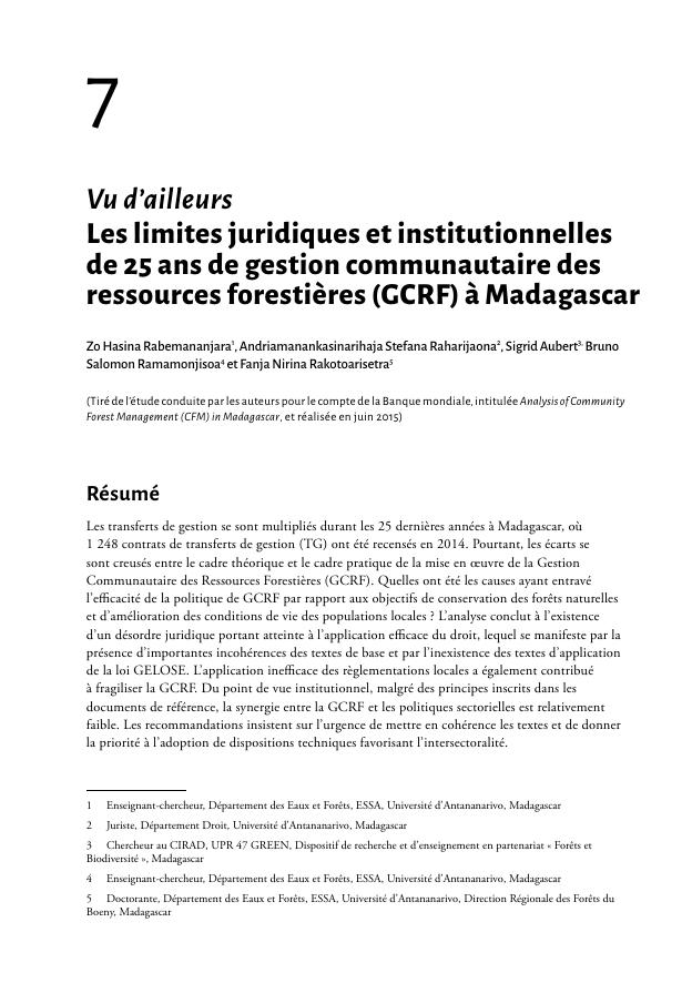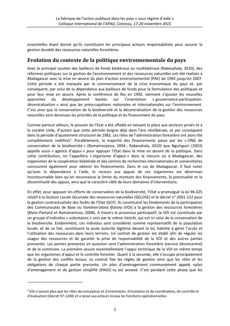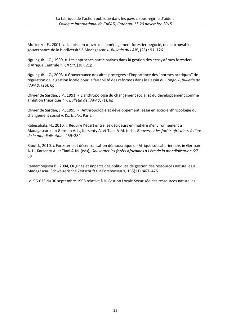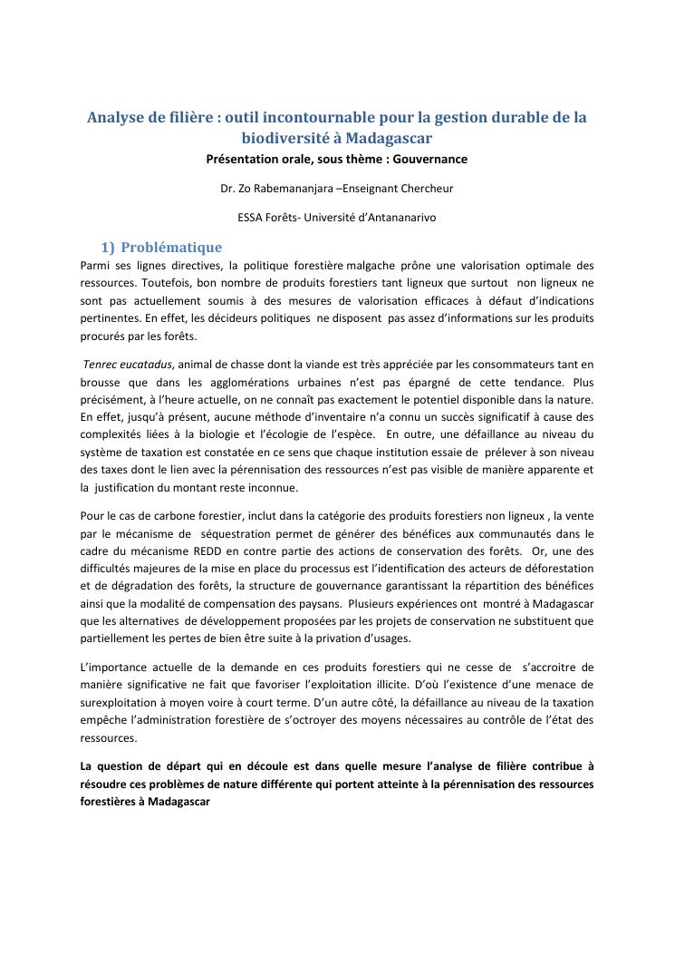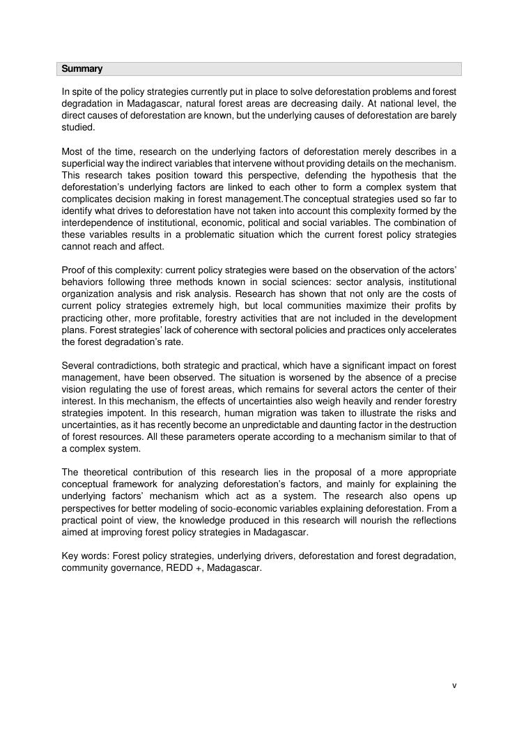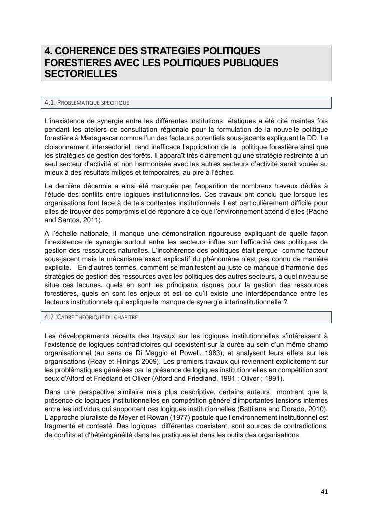 facteurs et mecanisme sous-jacents expliquant les defaillances des strategies politiques forestieres a madagascar