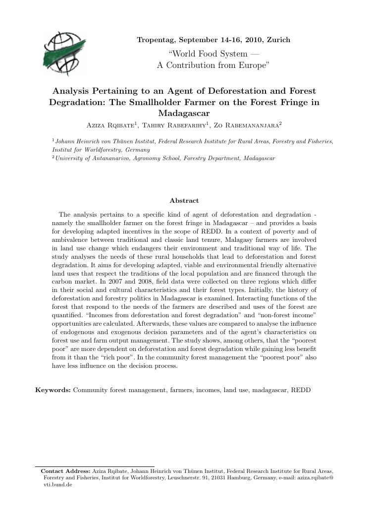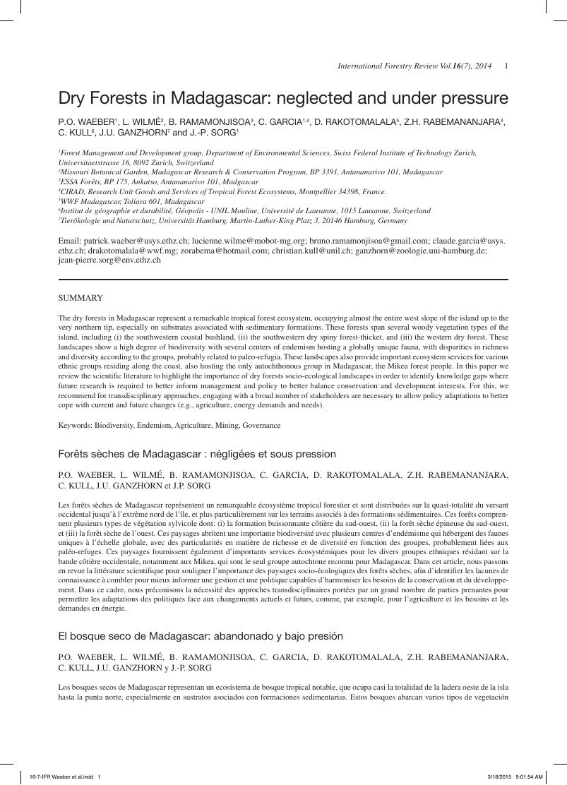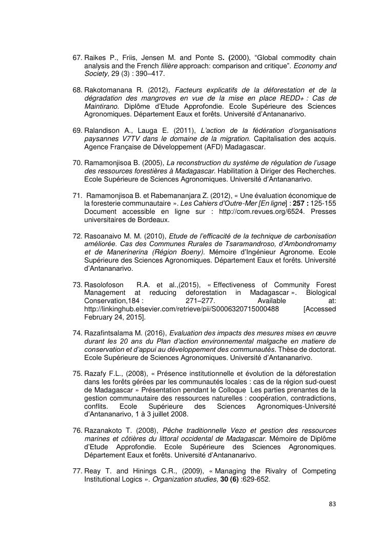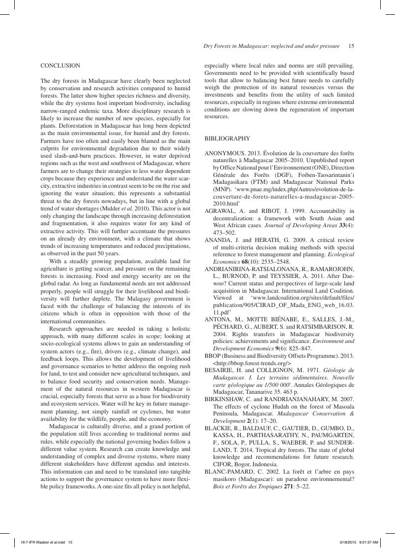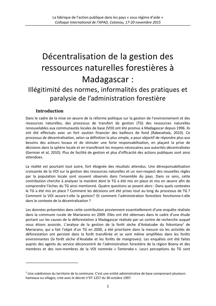 facteurs et mecanisme sous-jacents expliquant les defaillances des strategies politiques forestieres a madagascar