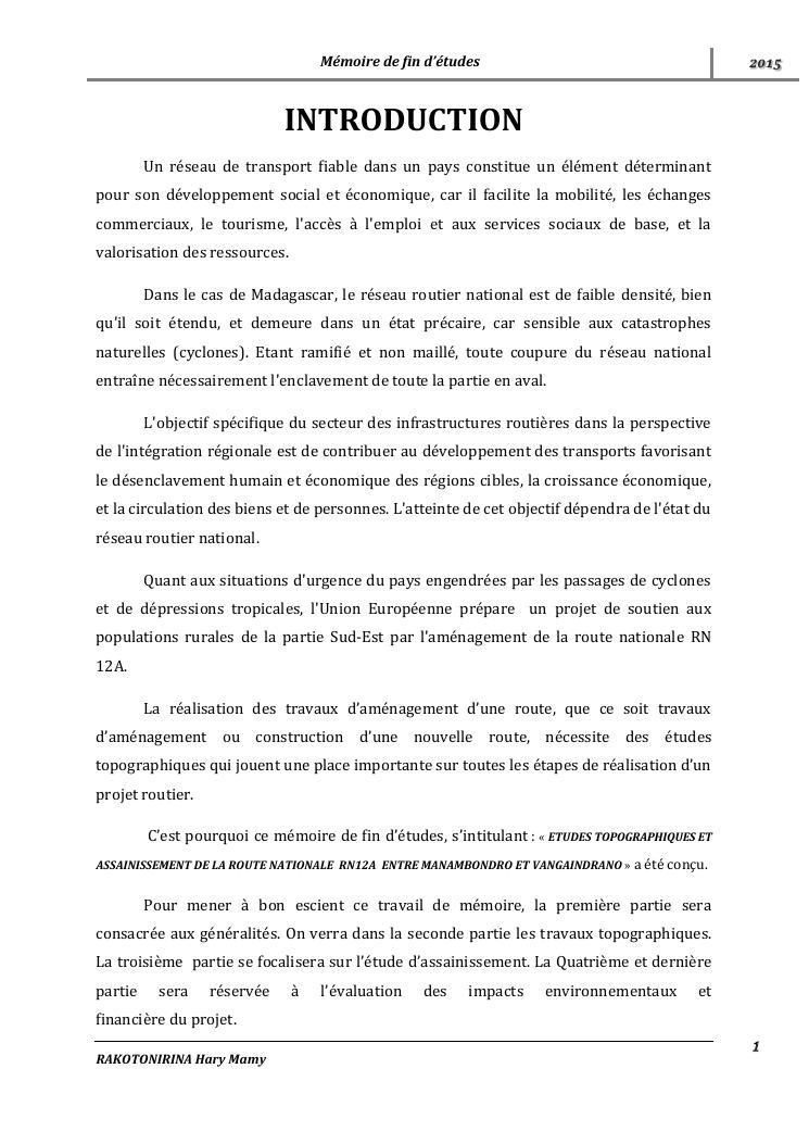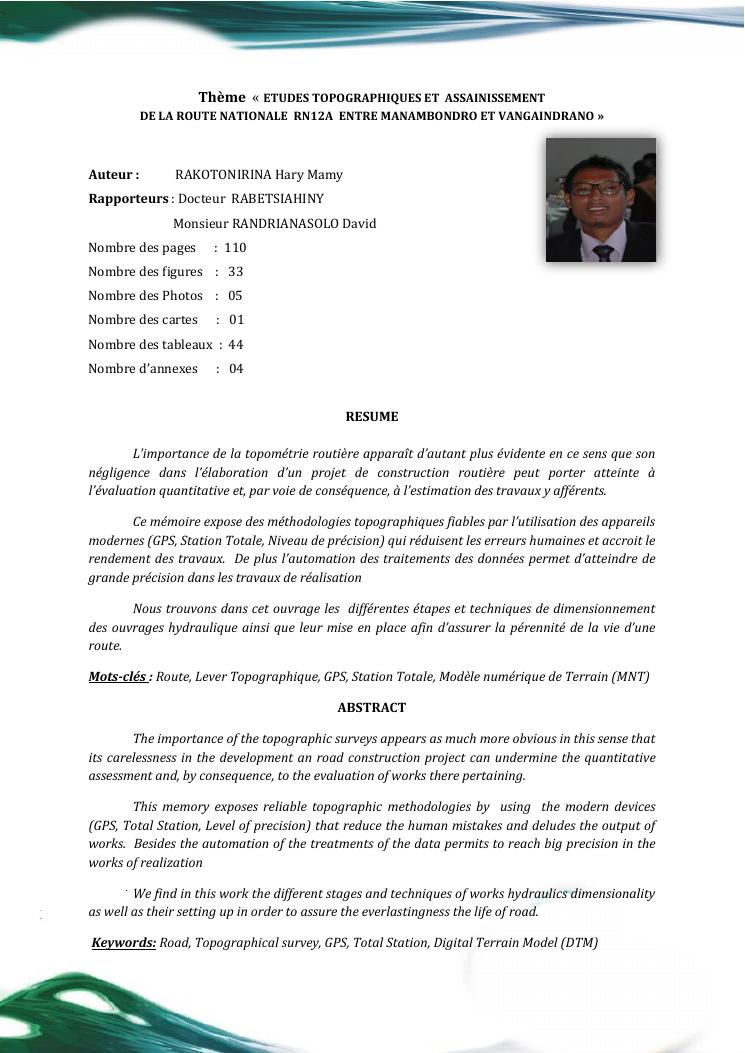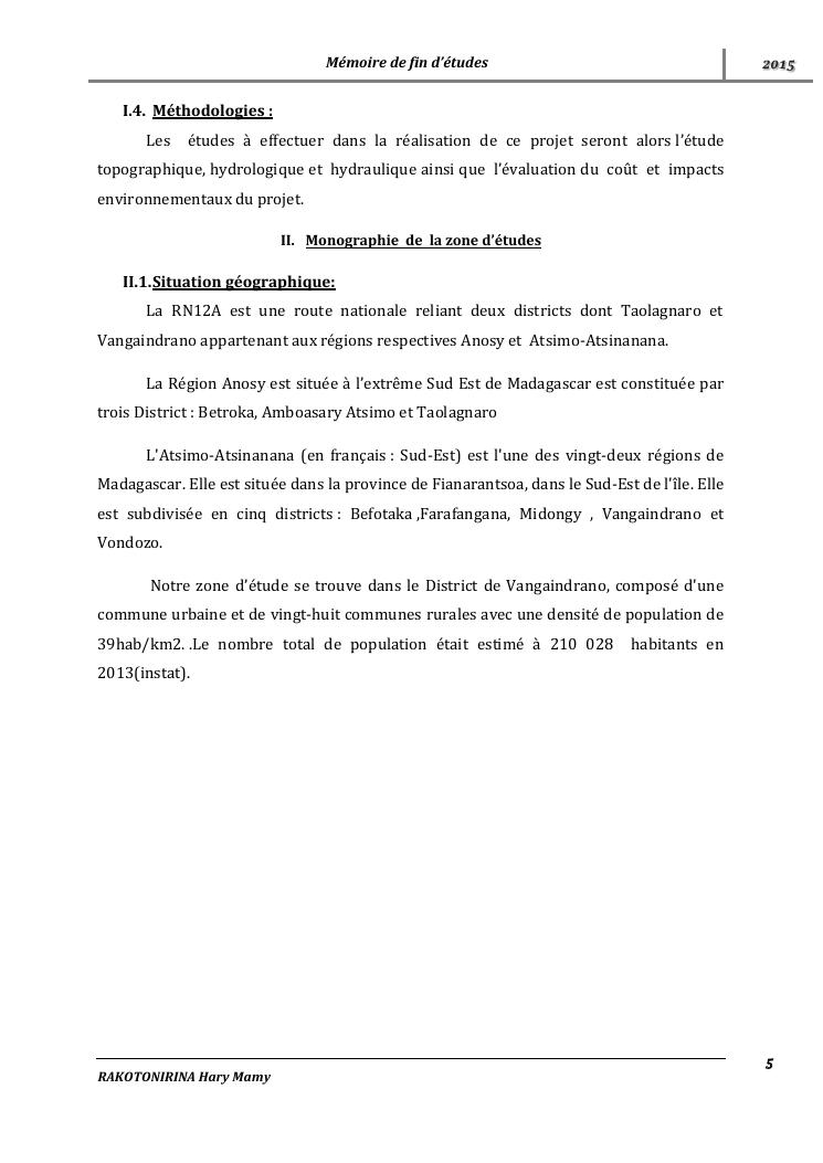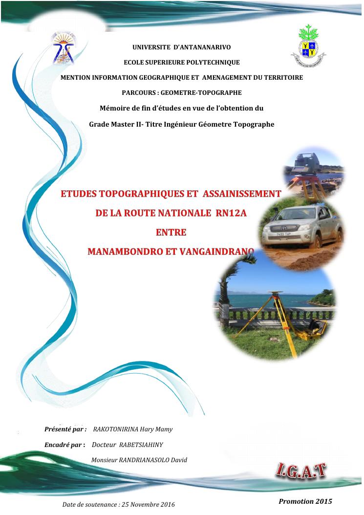 etudes topographiques et assainissement de la route nationale rn12a entre manambondro et vangaindrano