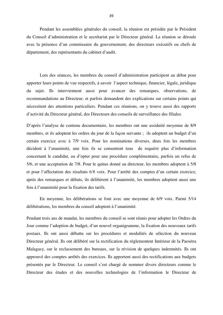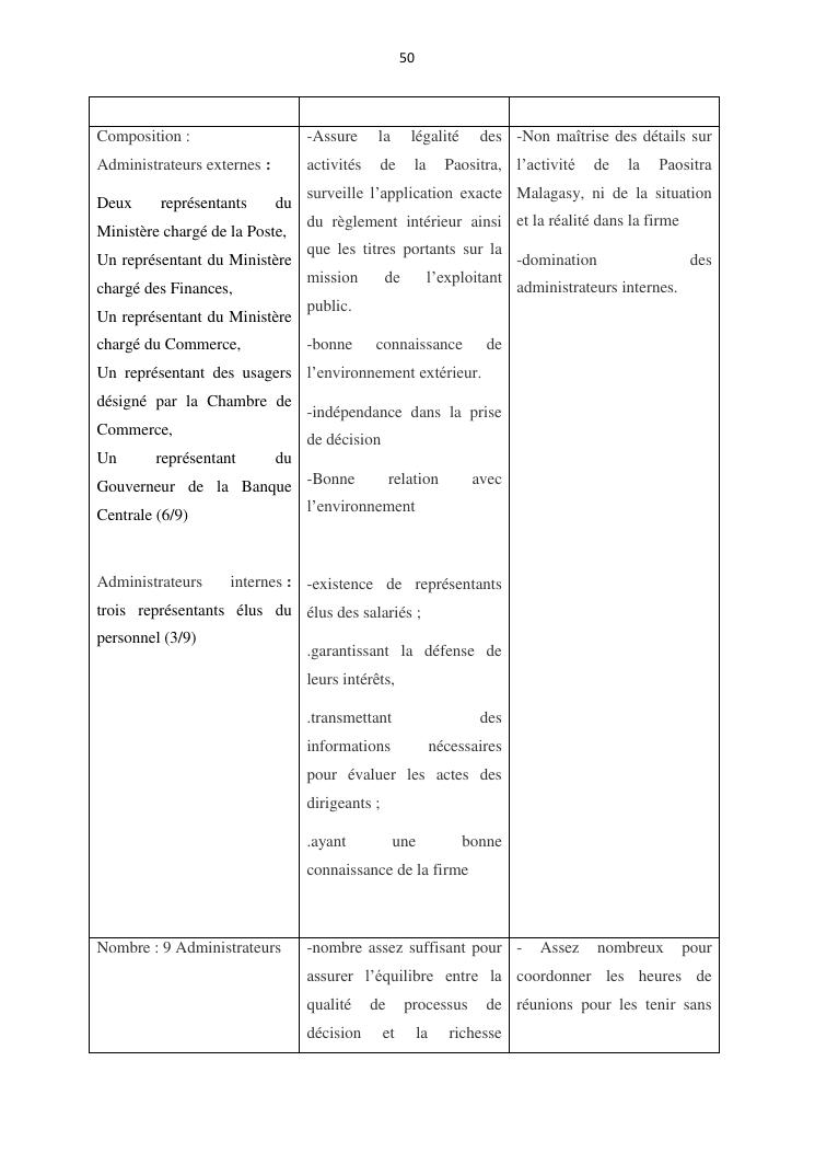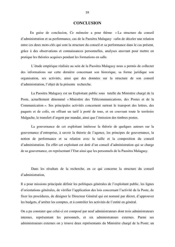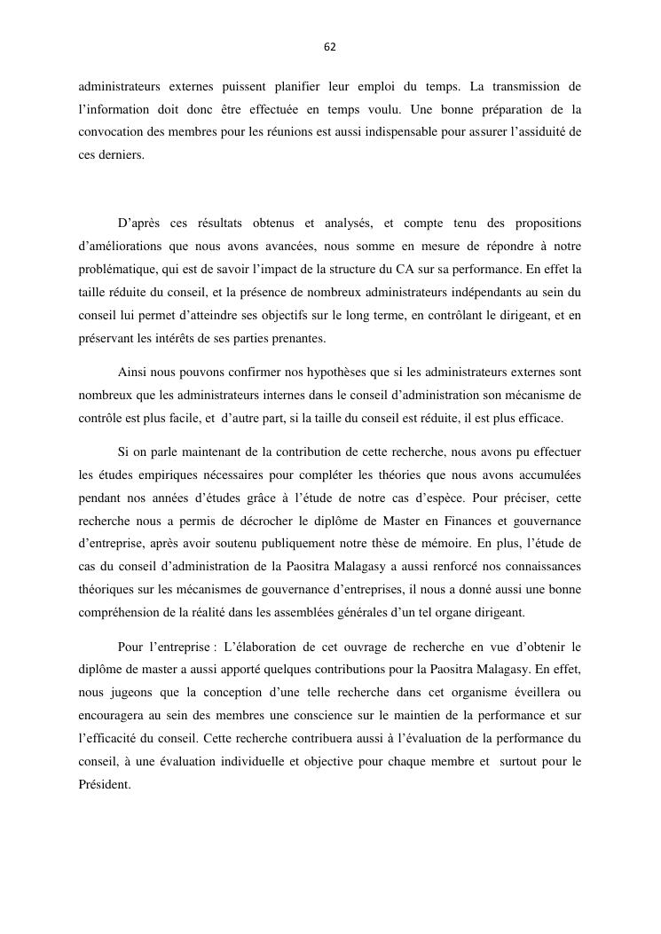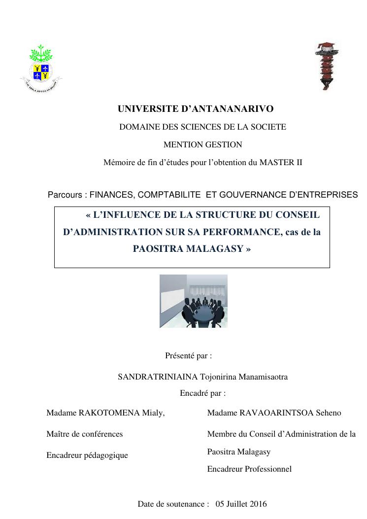 l'influence de la structure du conseil d'administration sur sa performance, cas de la paositra malagasy