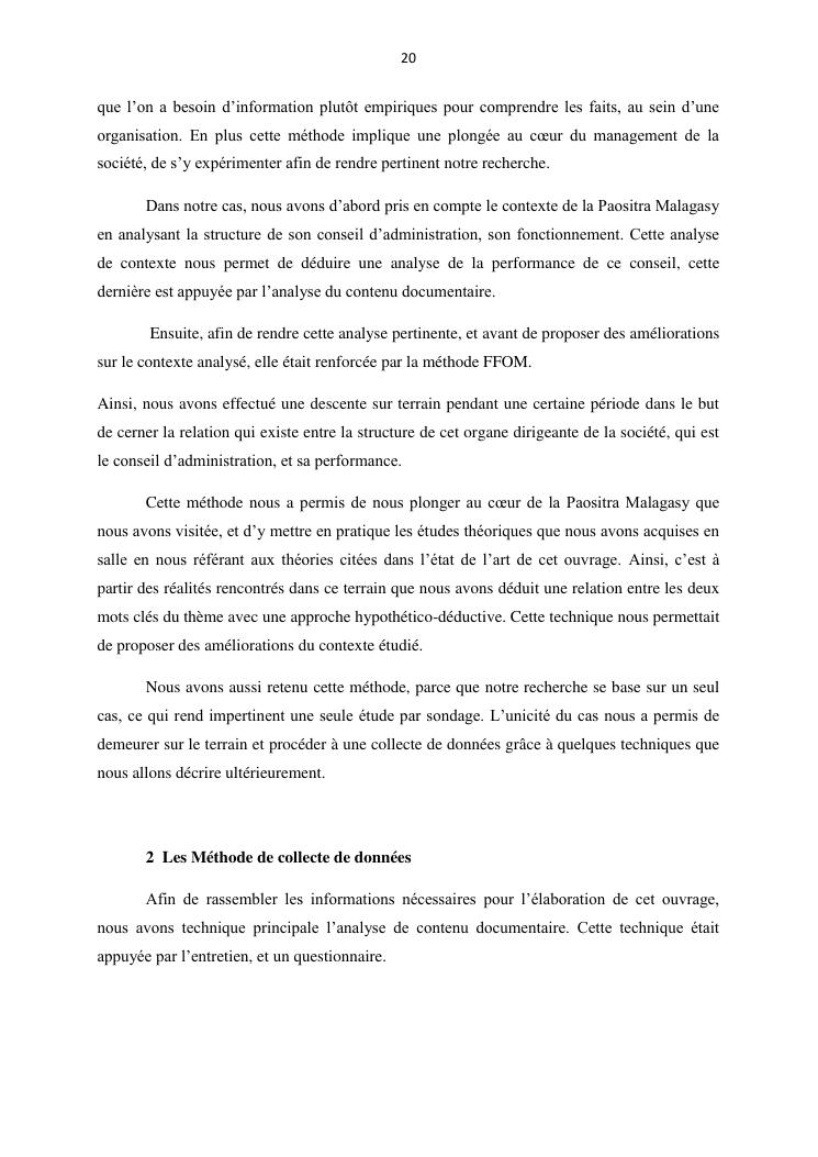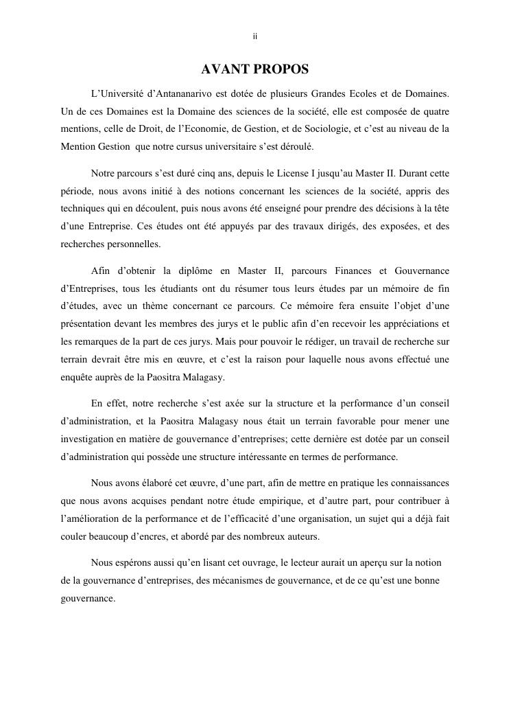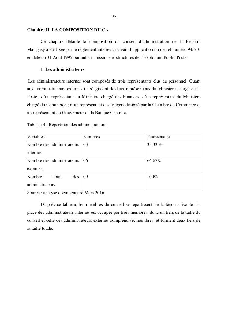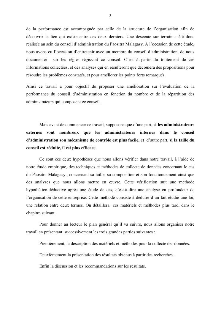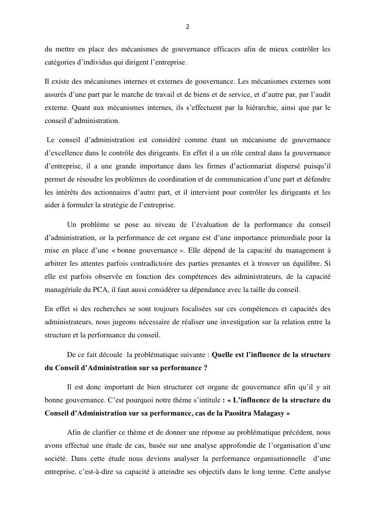 l'influence de la structure du conseil d'administration sur sa performance, cas de la paositra malagasy