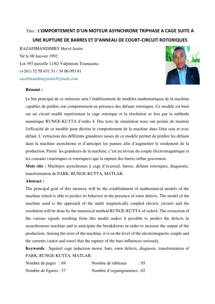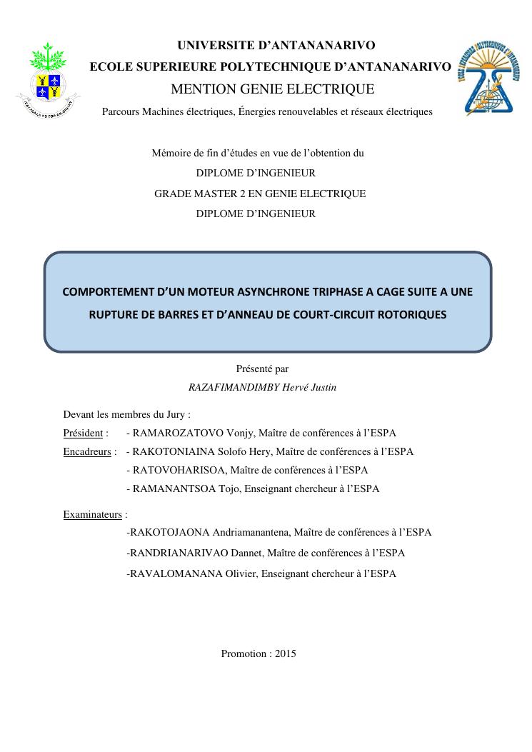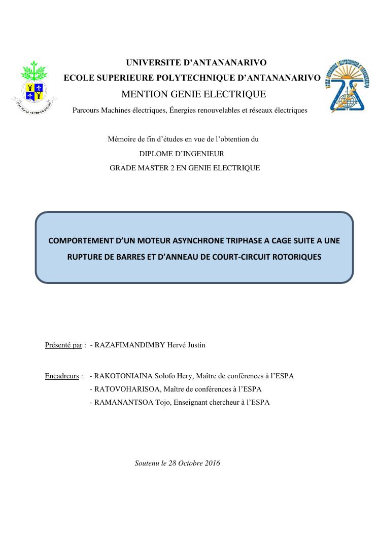 comportement d'un moteur asynchrone triphase a cage suite a une rupture de barres et d'anneau de court-circuit rotoriques