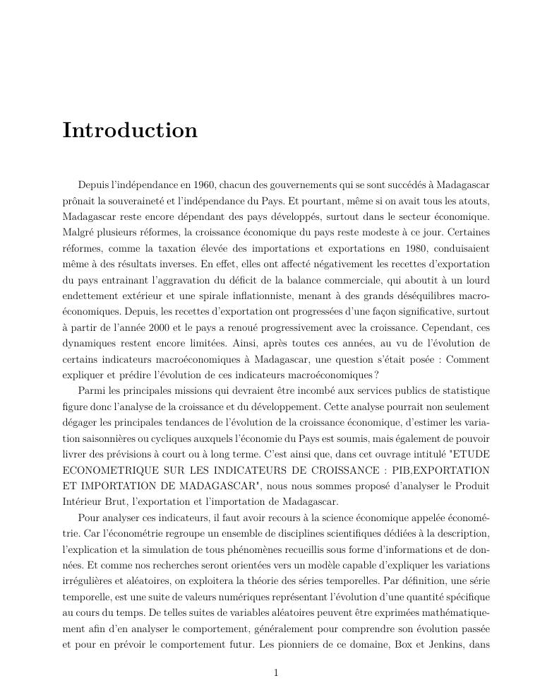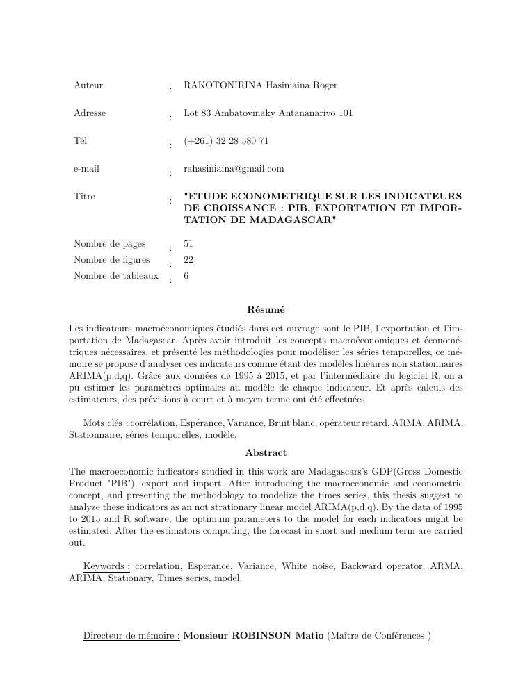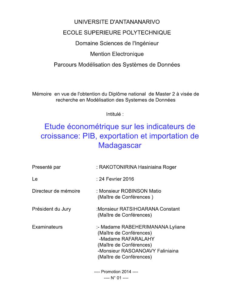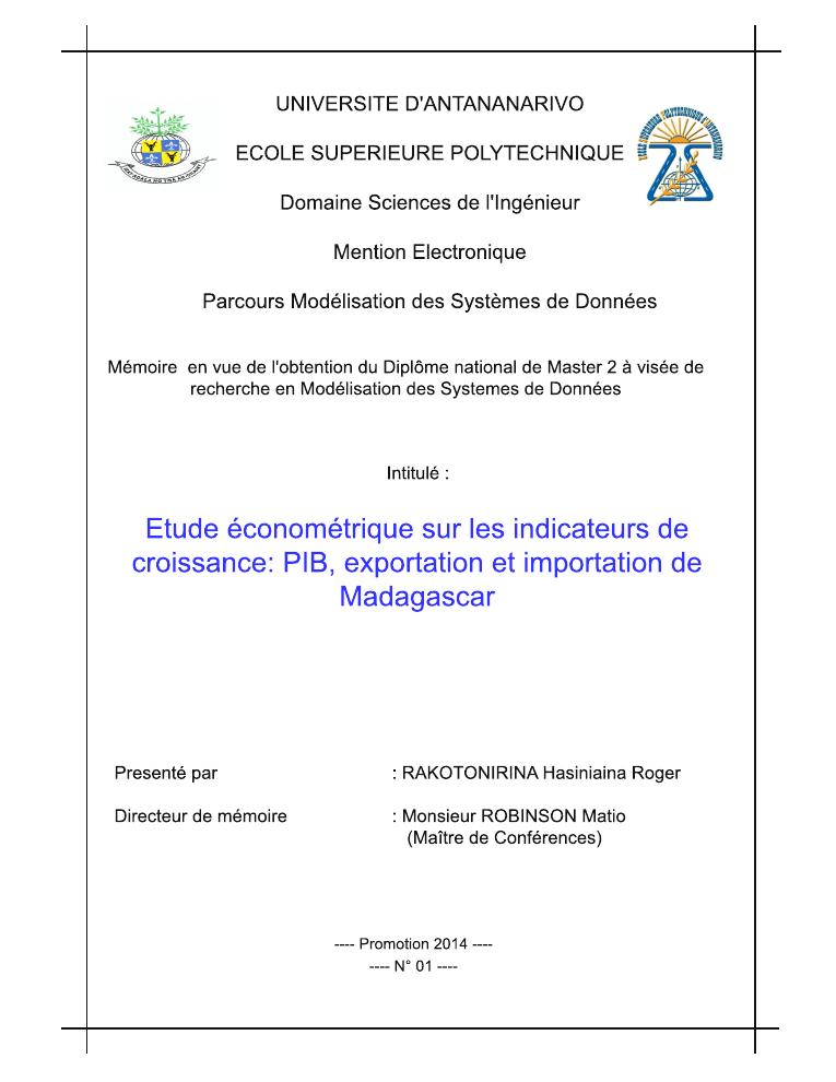 etude econometrique sur les indicateurs de croissance : pib, exportation et importation de madagascar