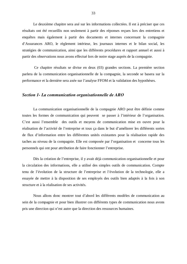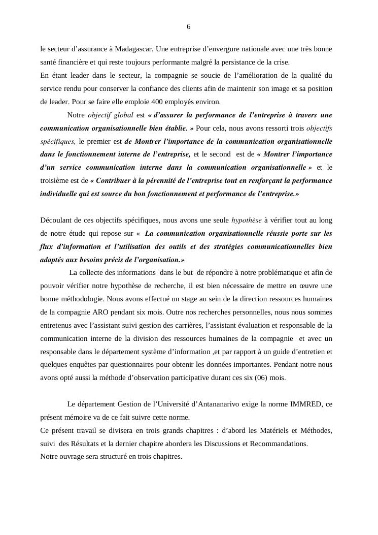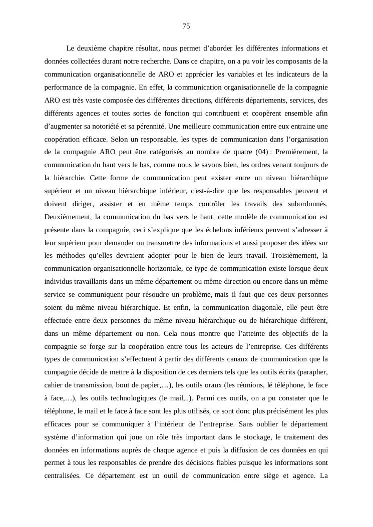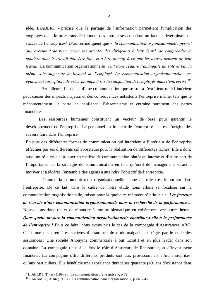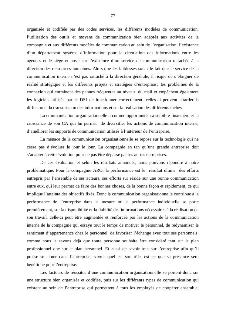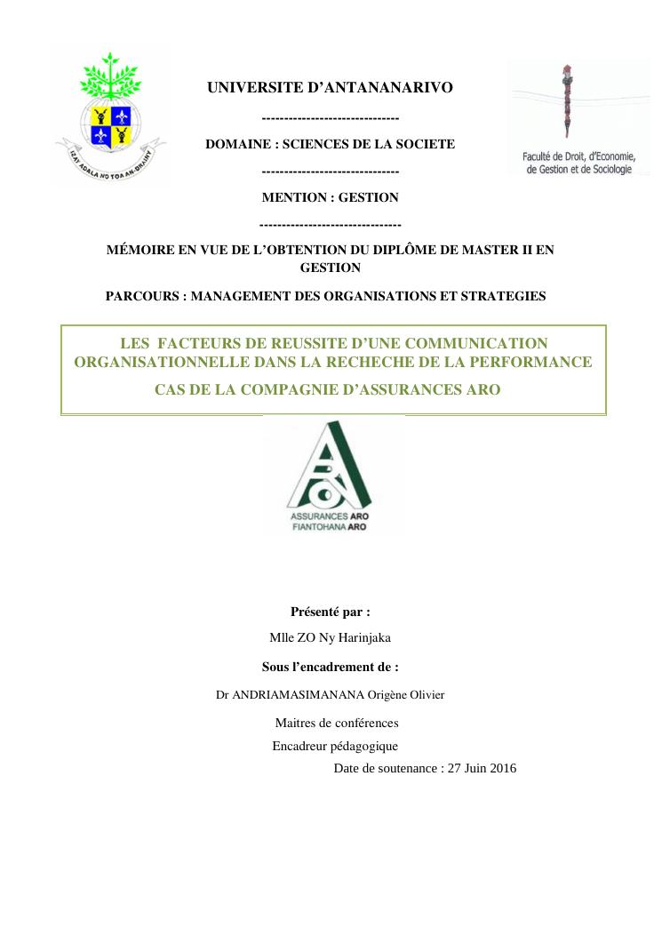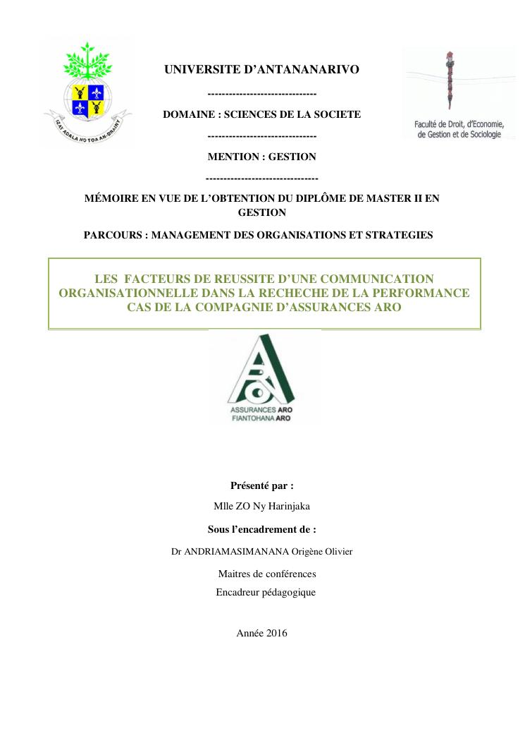 les facteurs de reussite d'une communication organisationnelle dans la recheche de la performance cas de la compagnie d'assurances aro
