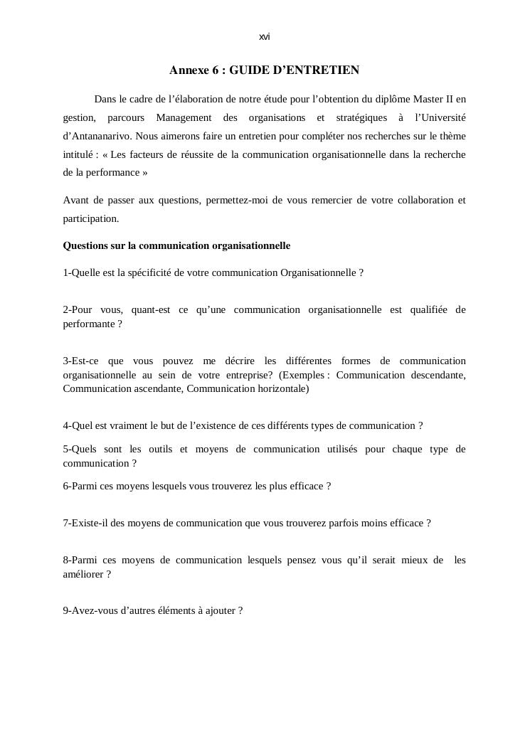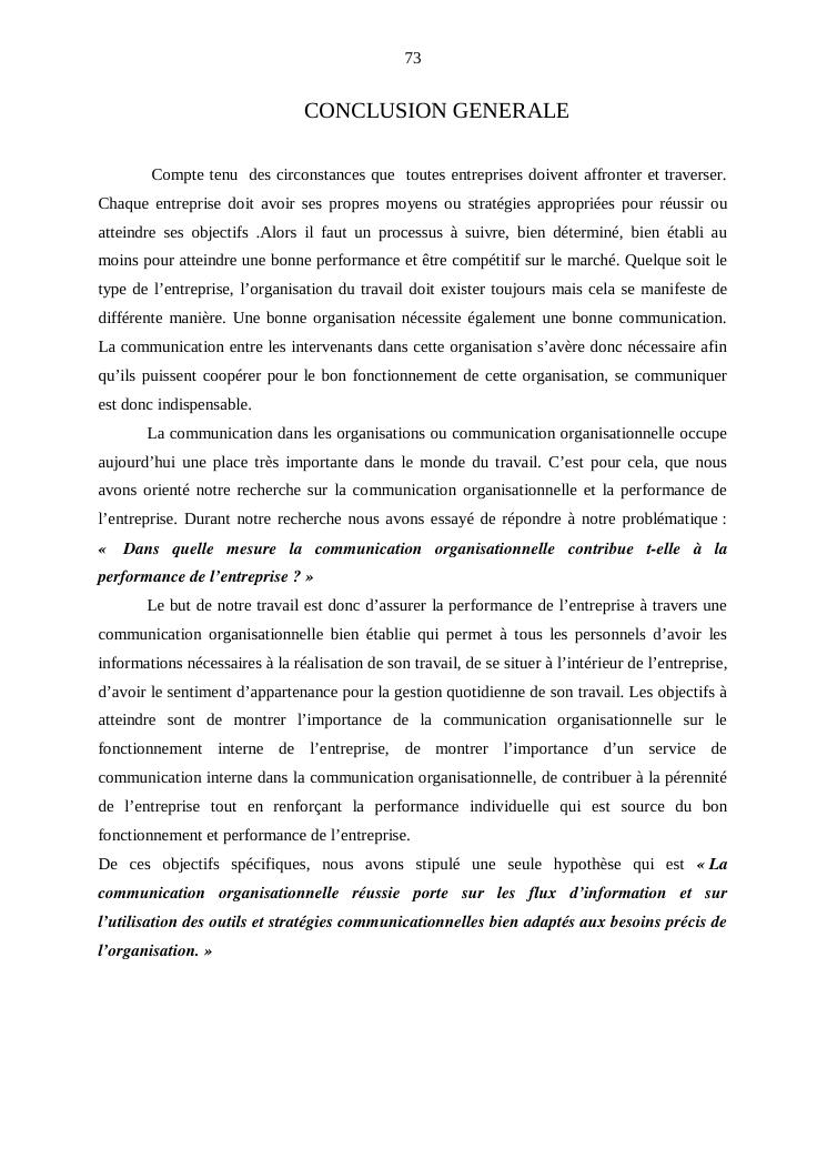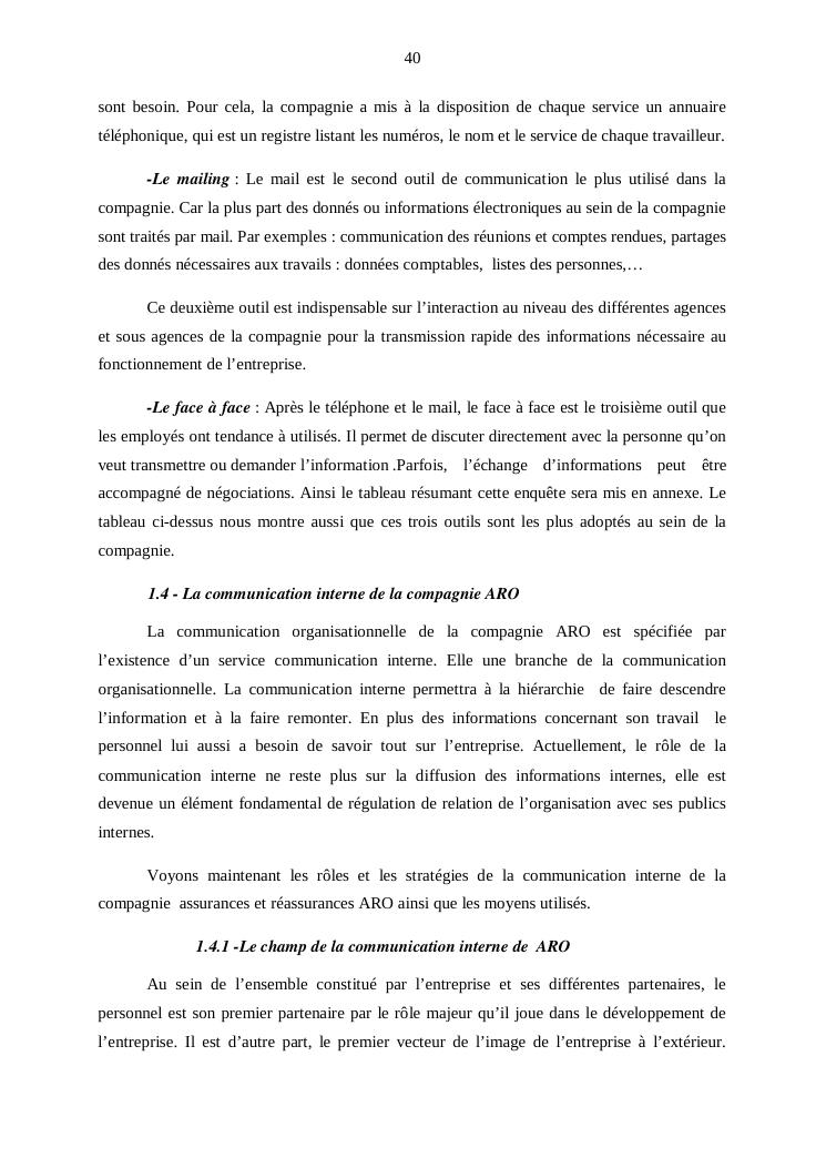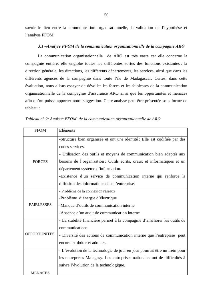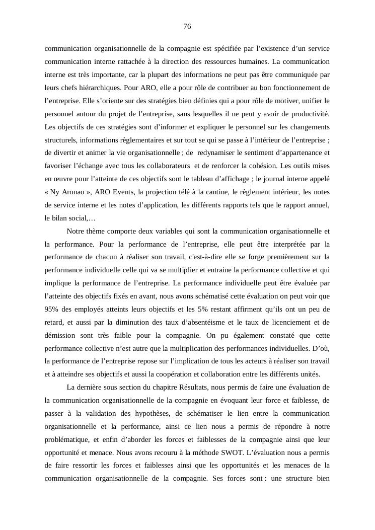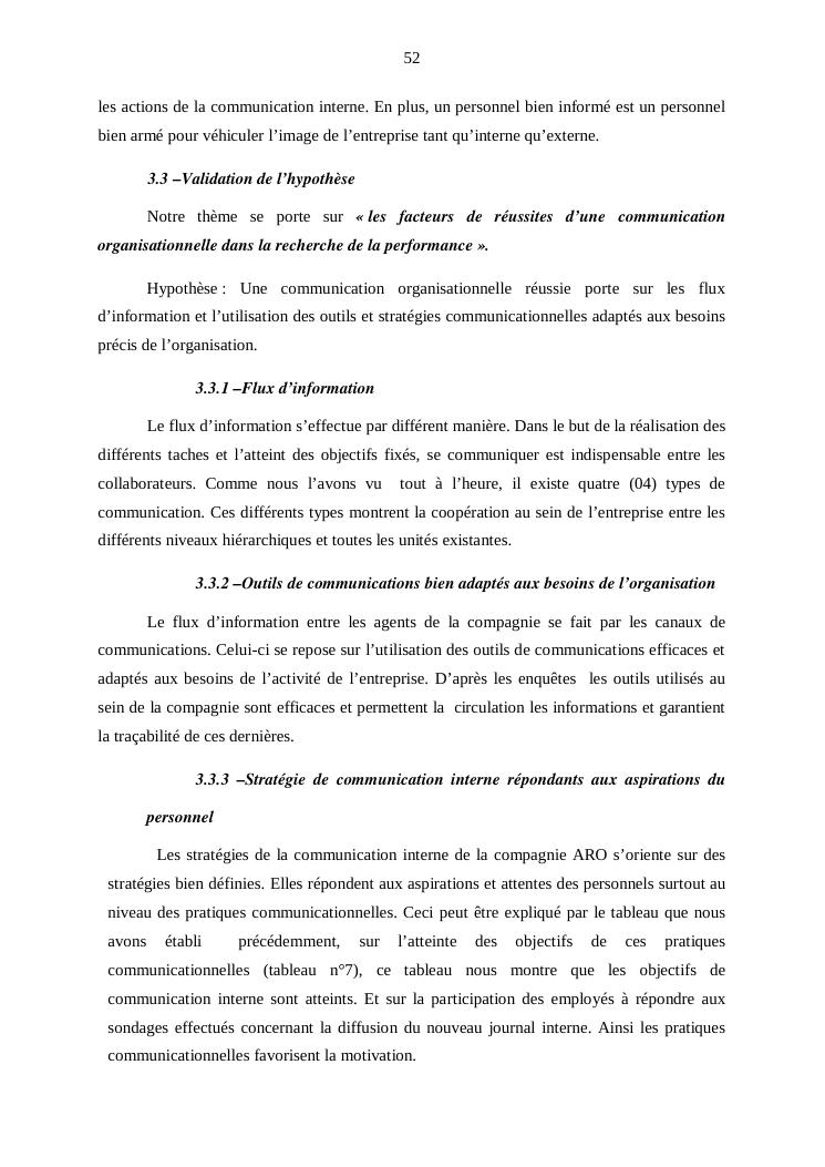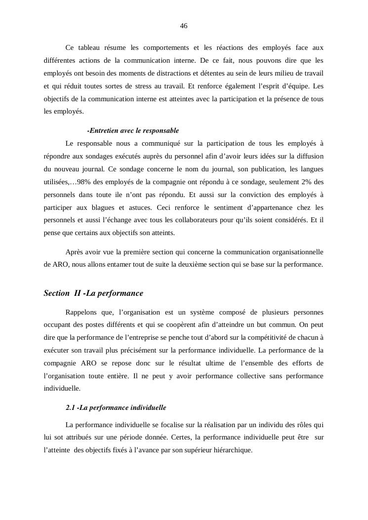 les facteurs de reussite d'une communication organisationnelle dans la recheche de la performance cas de la compagnie d'assurances aro