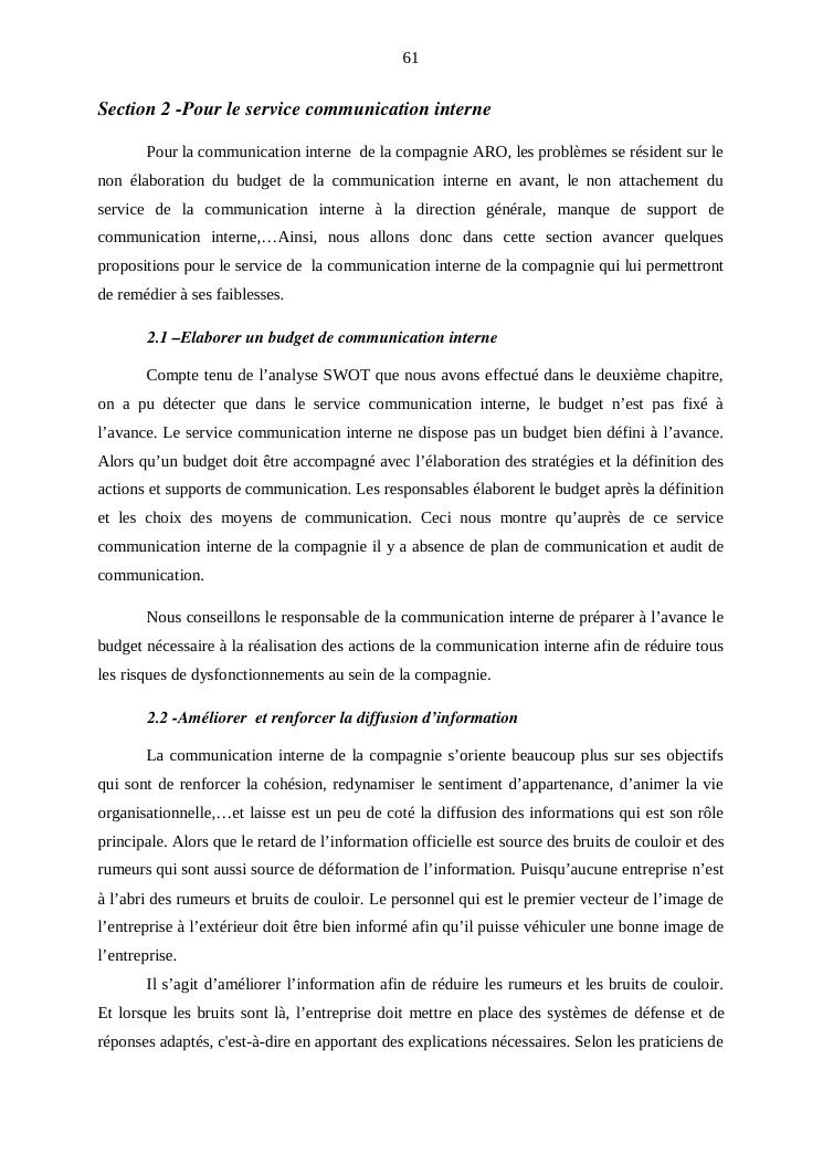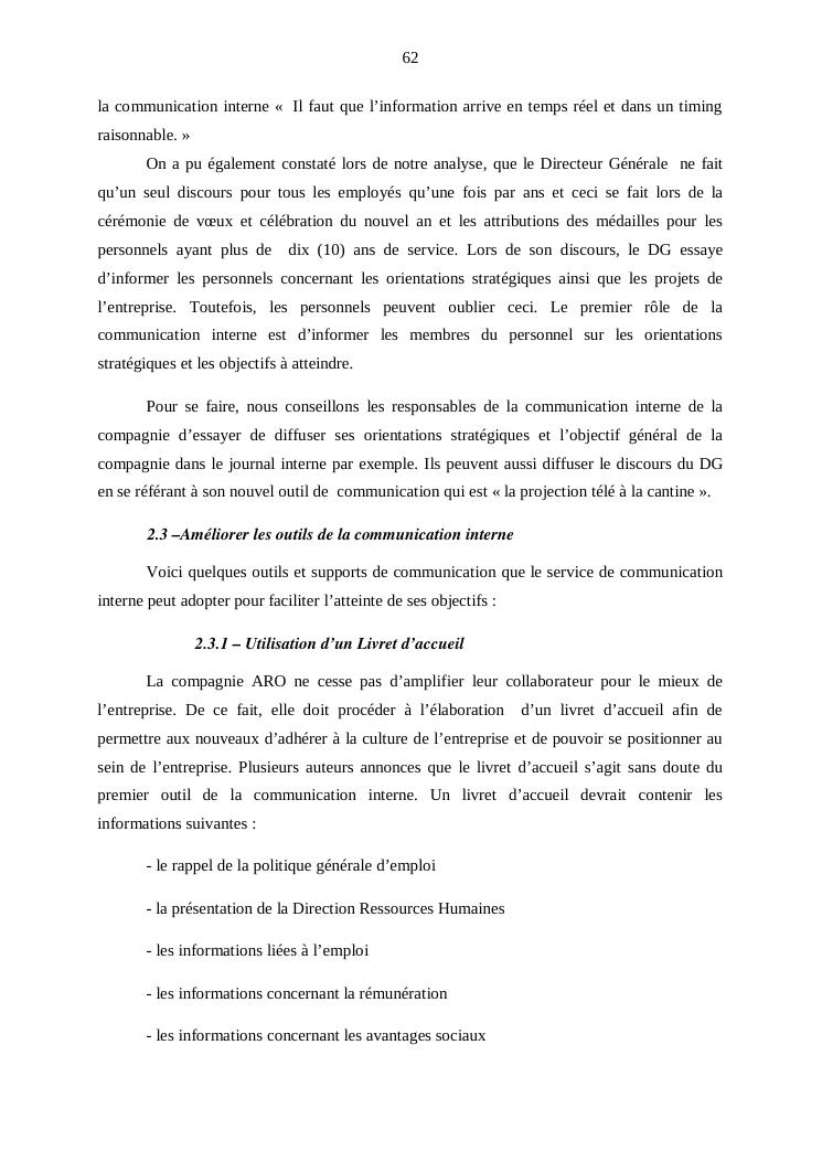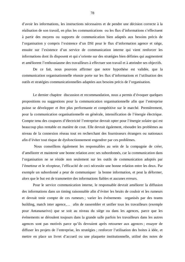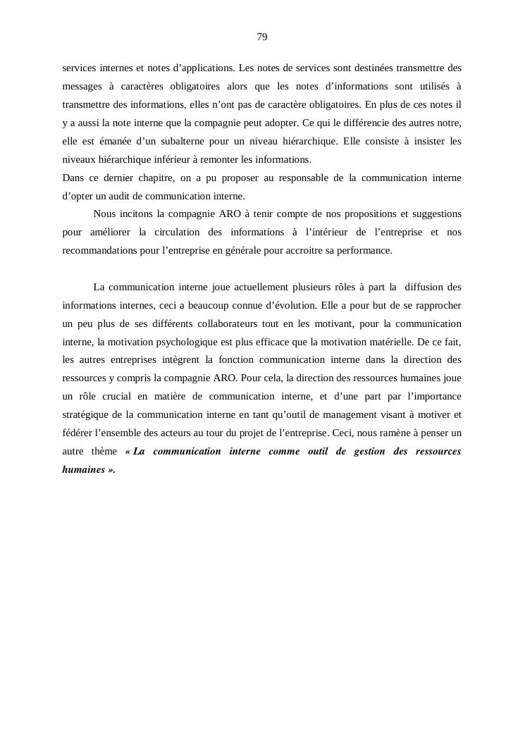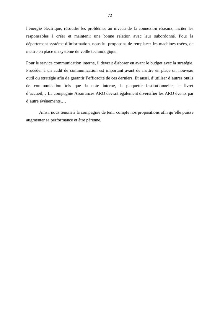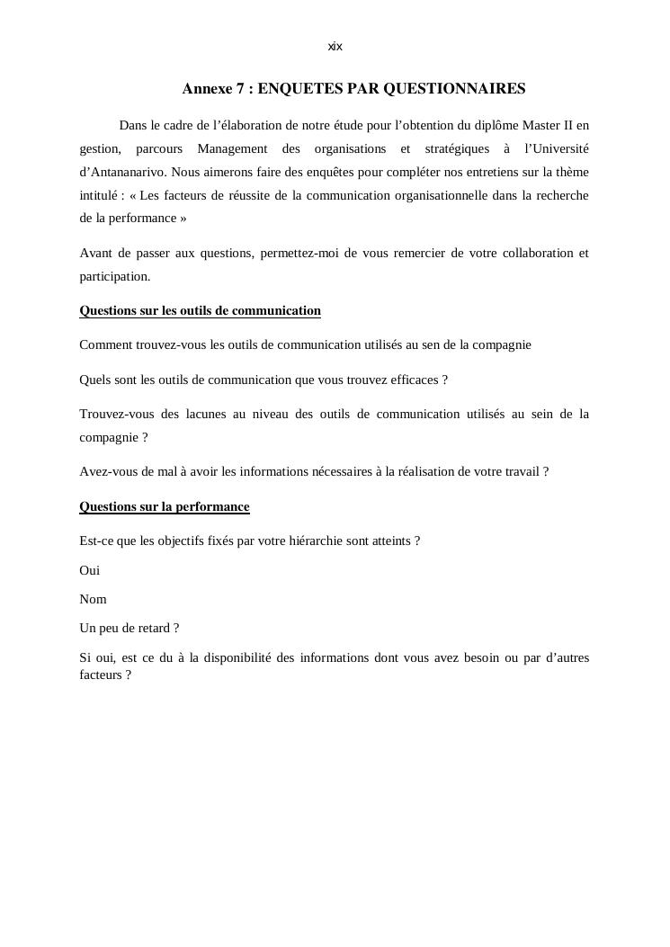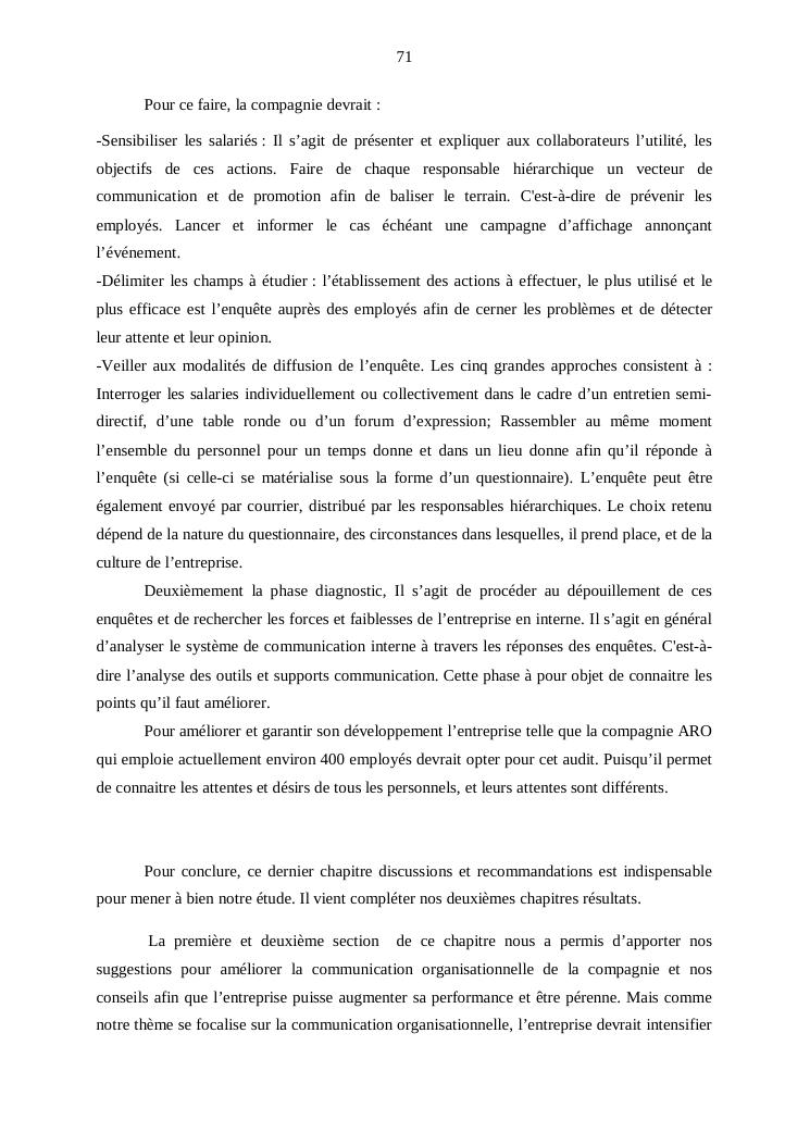 les facteurs de reussite d'une communication organisationnelle dans la recheche de la performance cas de la compagnie d'assurances aro