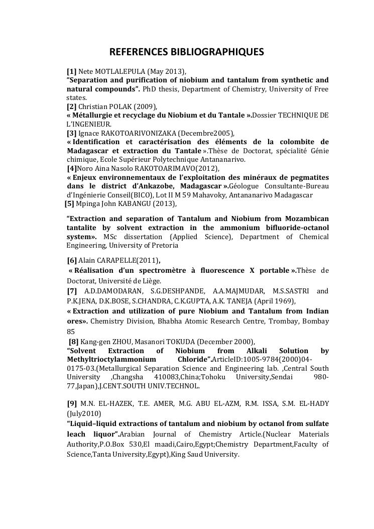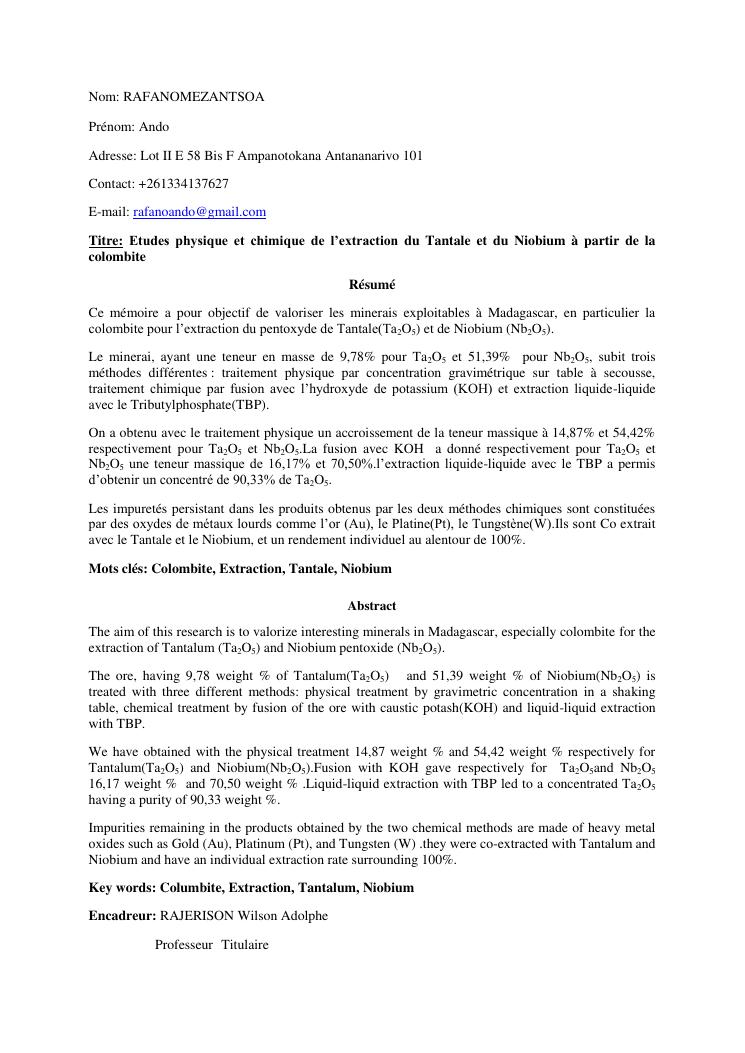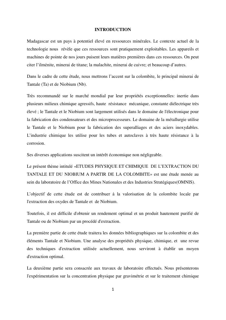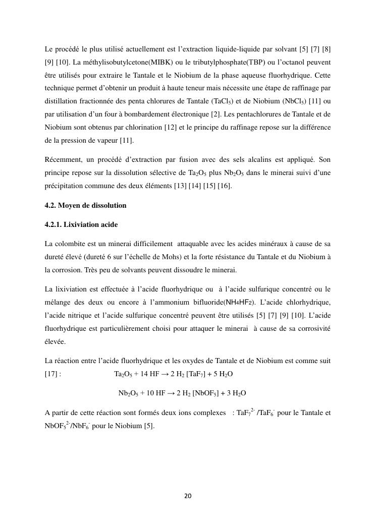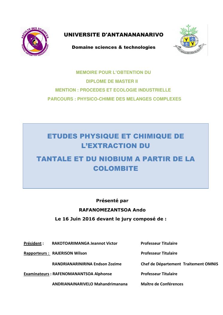 etudes physique et chimique de l'extraction du tantale et du niobium a partir de la colombite