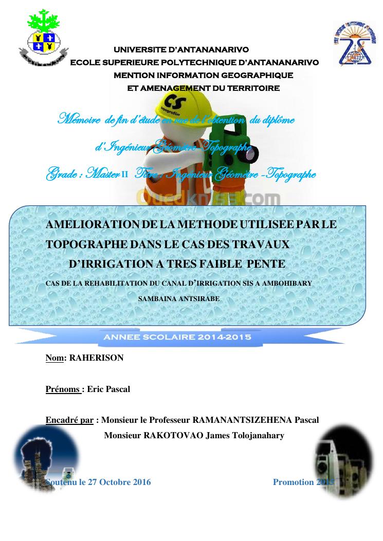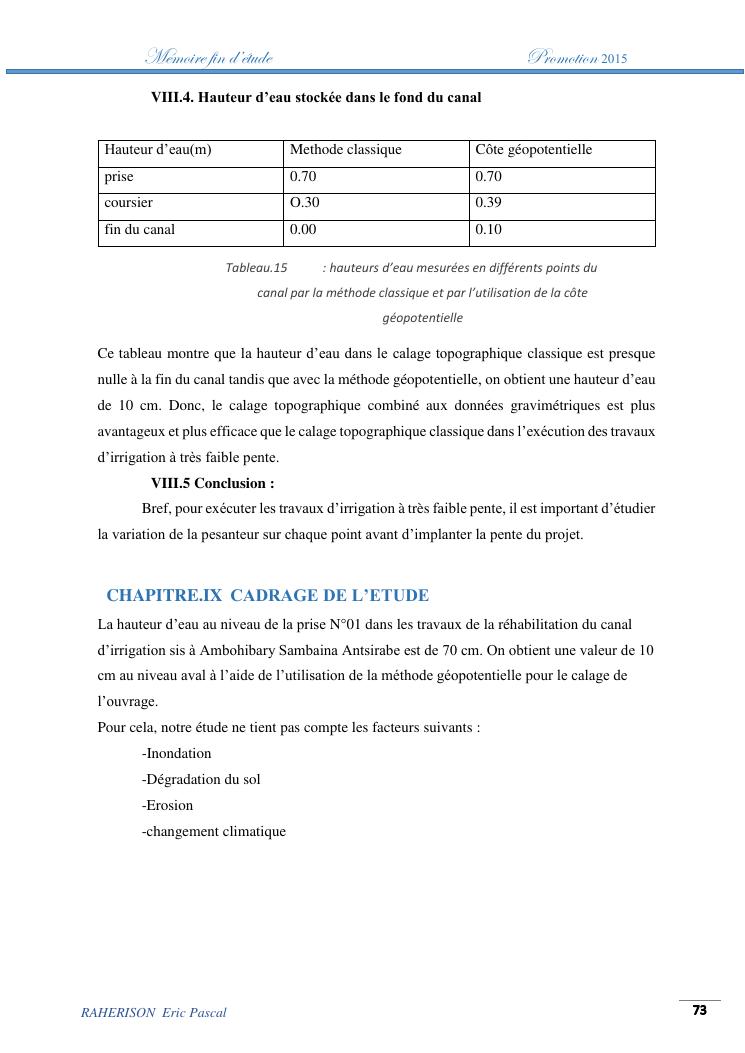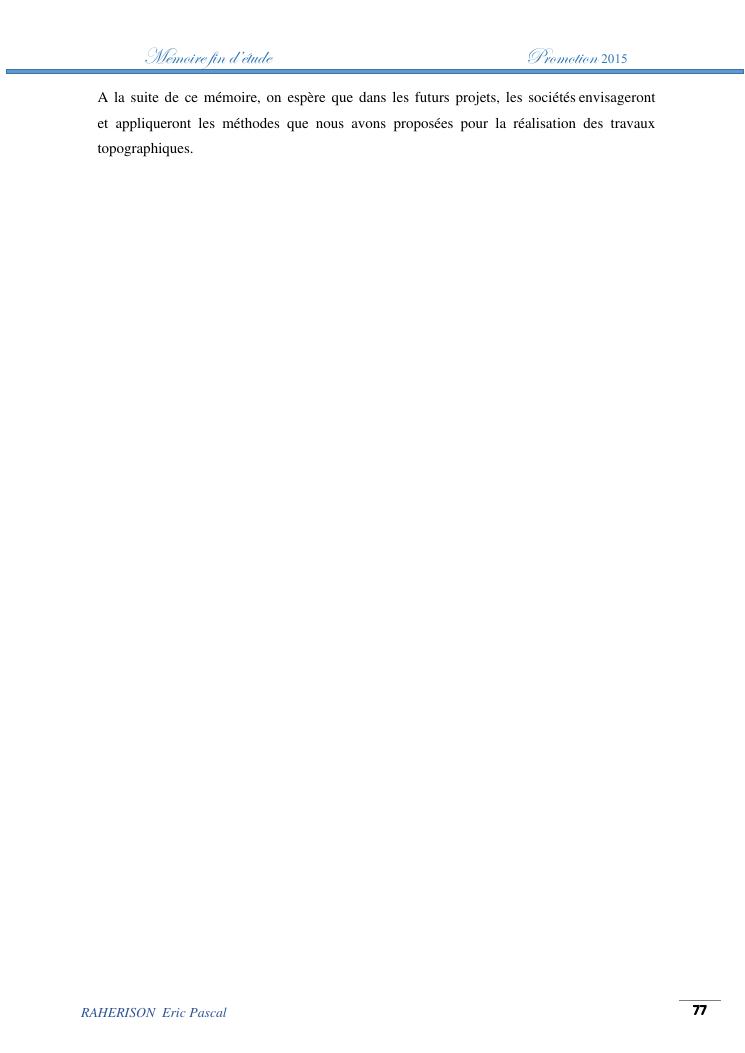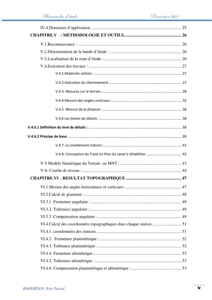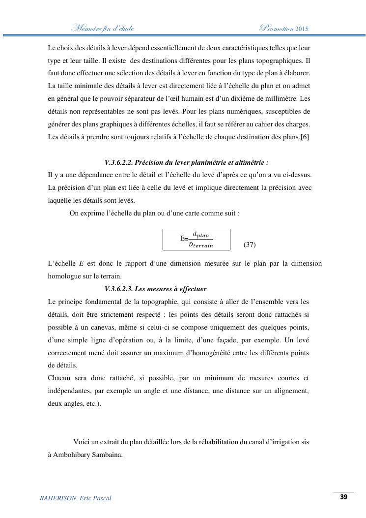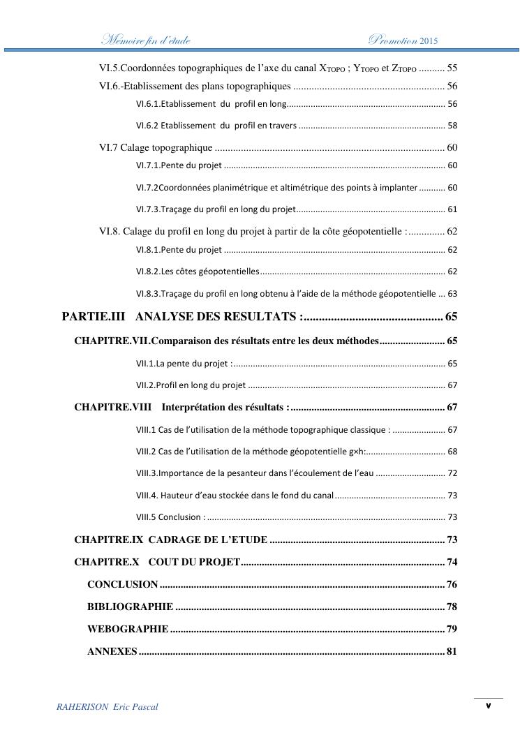amelioration de la methode utilisee par le topographe dans le cas des travaux d'irrigation a tres faible pente : cas de la rehabilitation du canal d'irrigation sis a ambohibary sambaina antsirabe