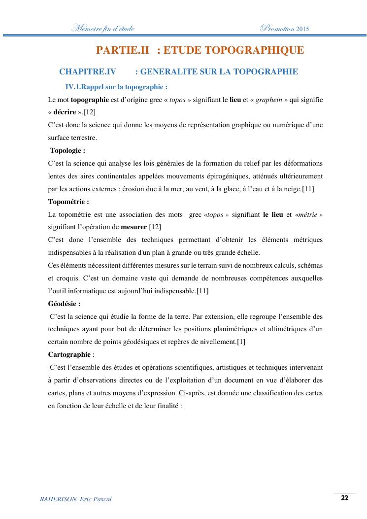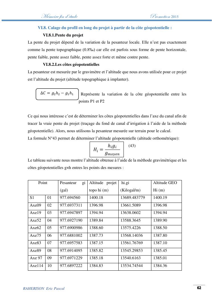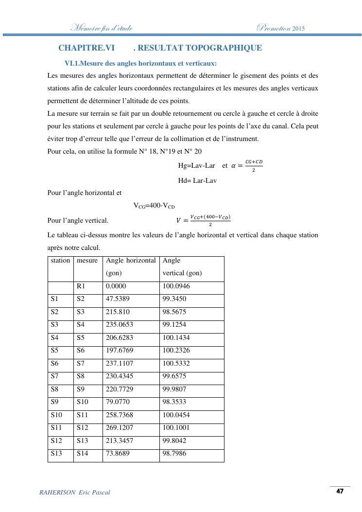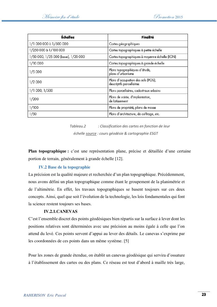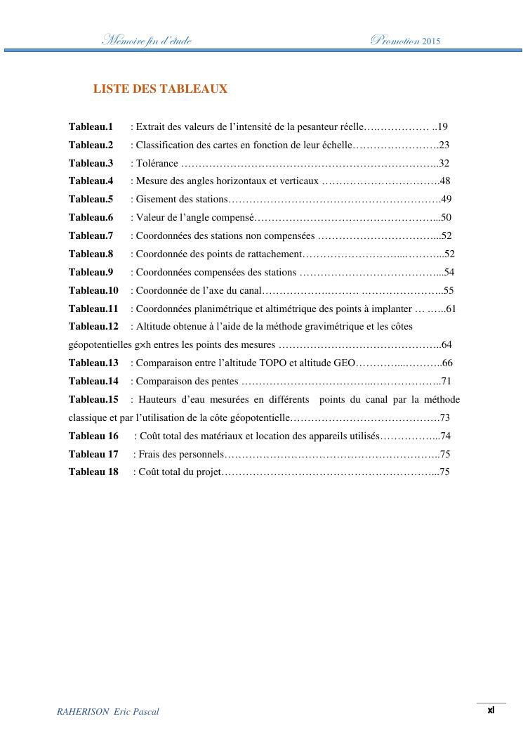 amelioration de la methode utilisee par le topographe dans le cas des travaux d'irrigation a tres faible pente : cas de la rehabilitation du canal d'irrigation sis a ambohibary sambaina antsirabe