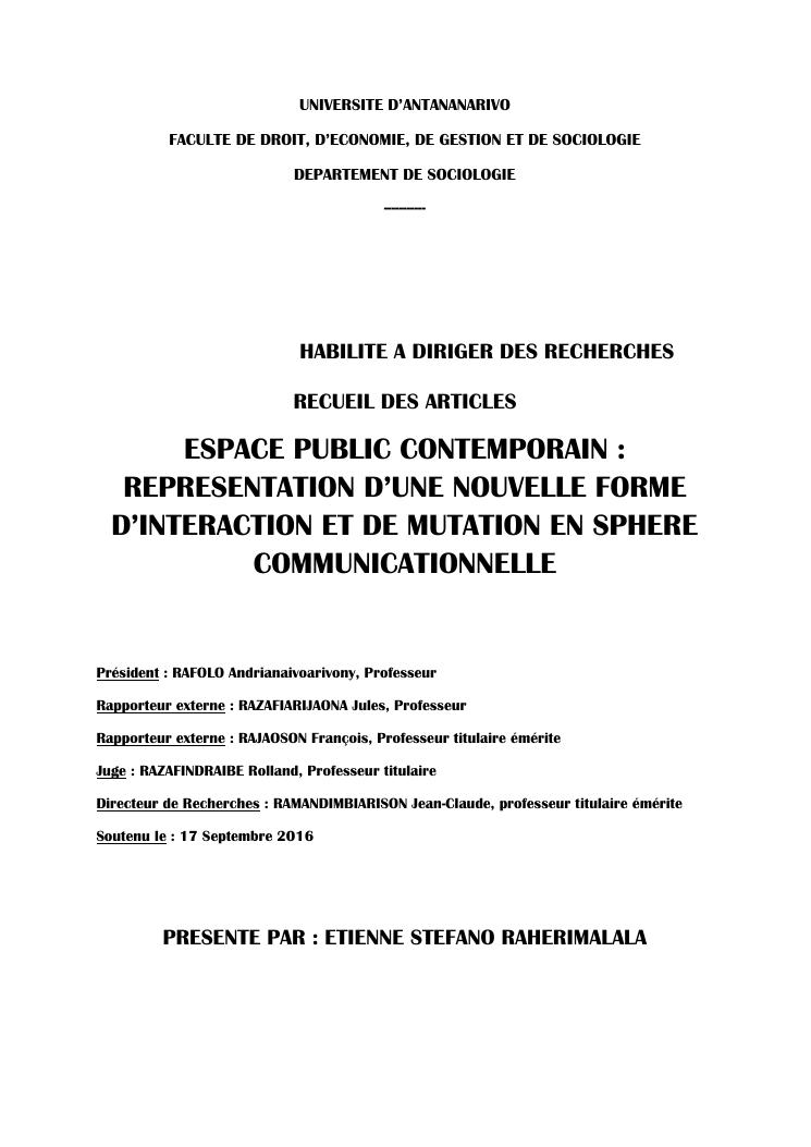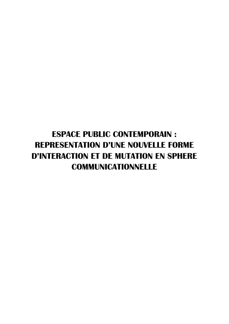 espace public contemporain : representation d'une nouvelle forme d'interaction et de mutation en sphere communicationnelle . recueil des articles