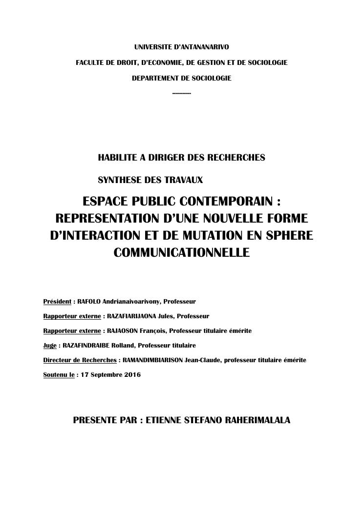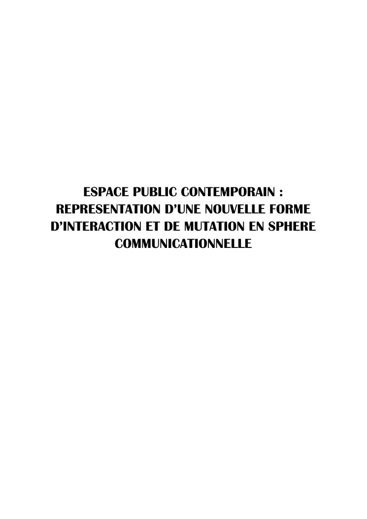 espace public contemporain : representation d'une nouvelle forme d'interaction et de mutation en sphere communicationnelle. synthese des travaux