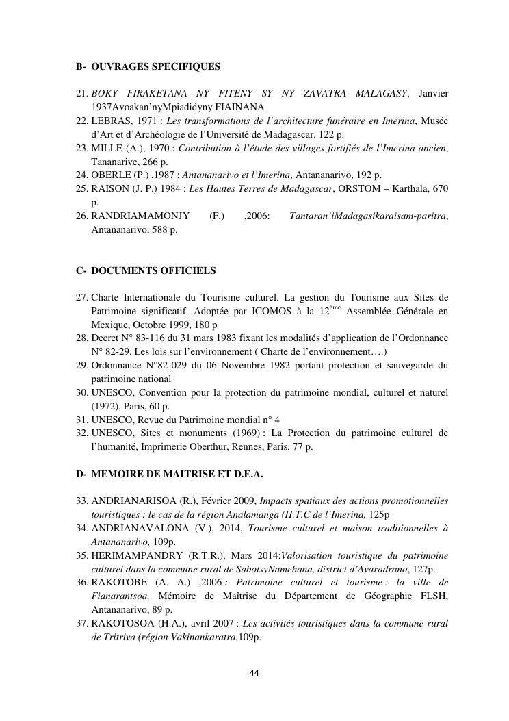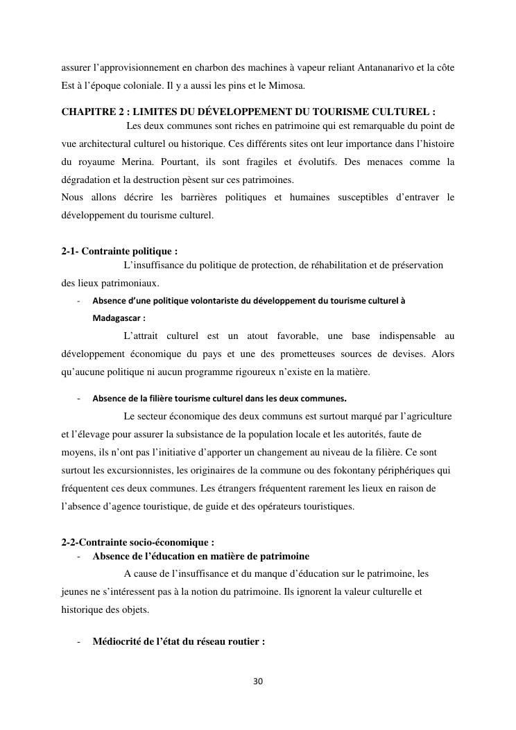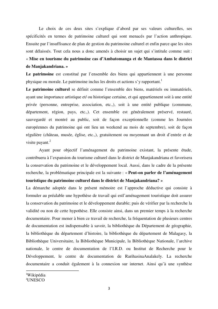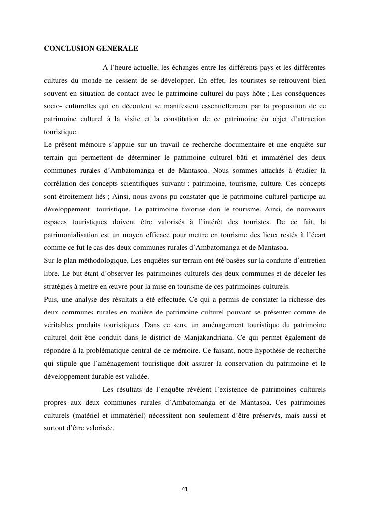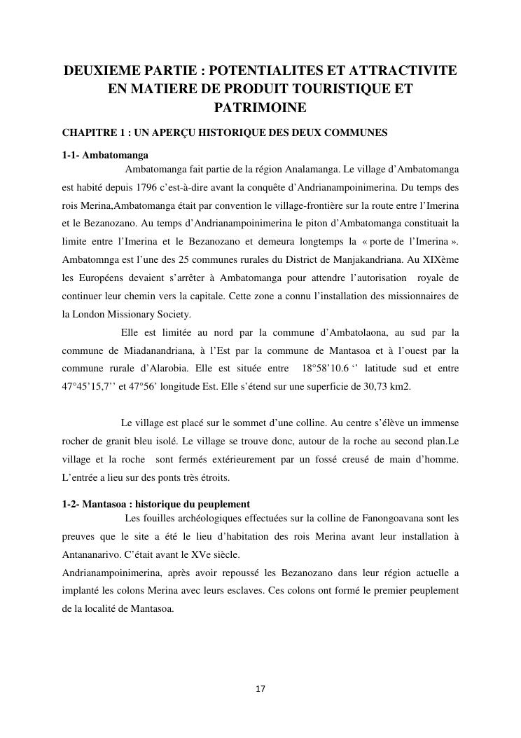 mise en tourisme du patrimoine culturel dans le district de manjakandriana : cas des communes rurales d'ambatomanga et de mantasoa