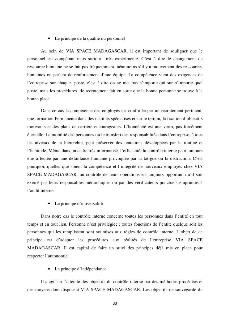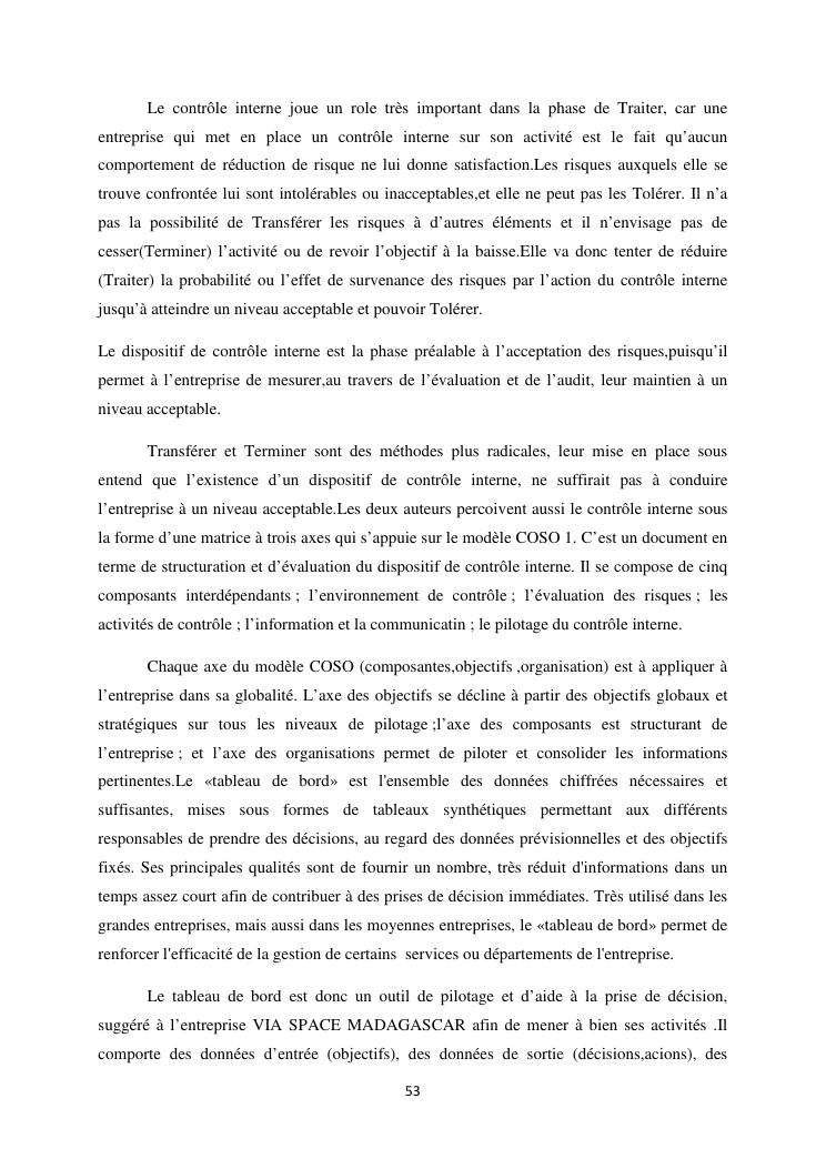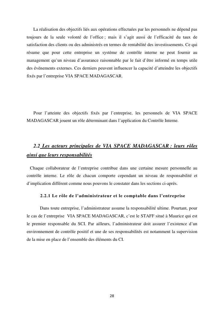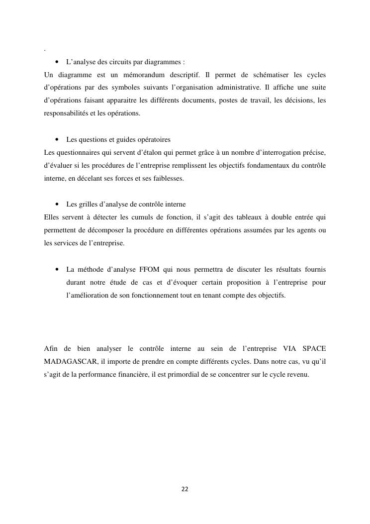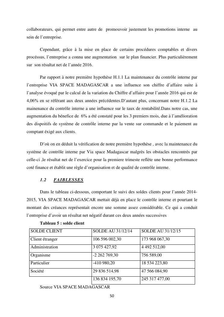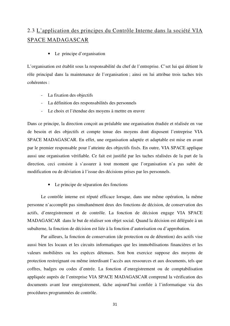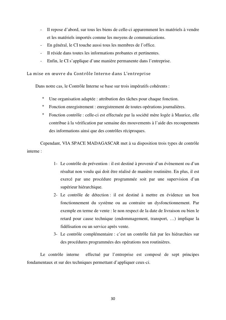 le systeme de controle interne : un outil de gestion et un facteur determinant pour une bonne performance financiere d'une entreprise : cas de via space madagascar
