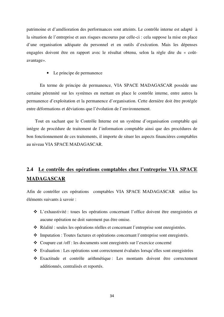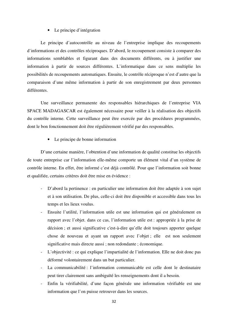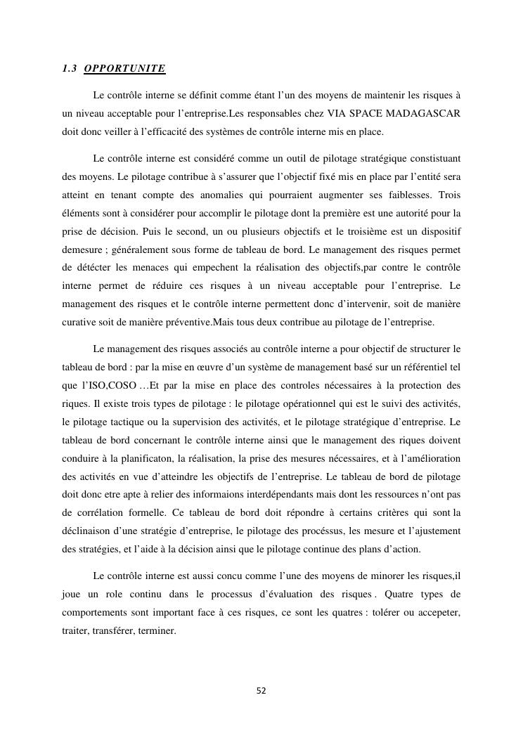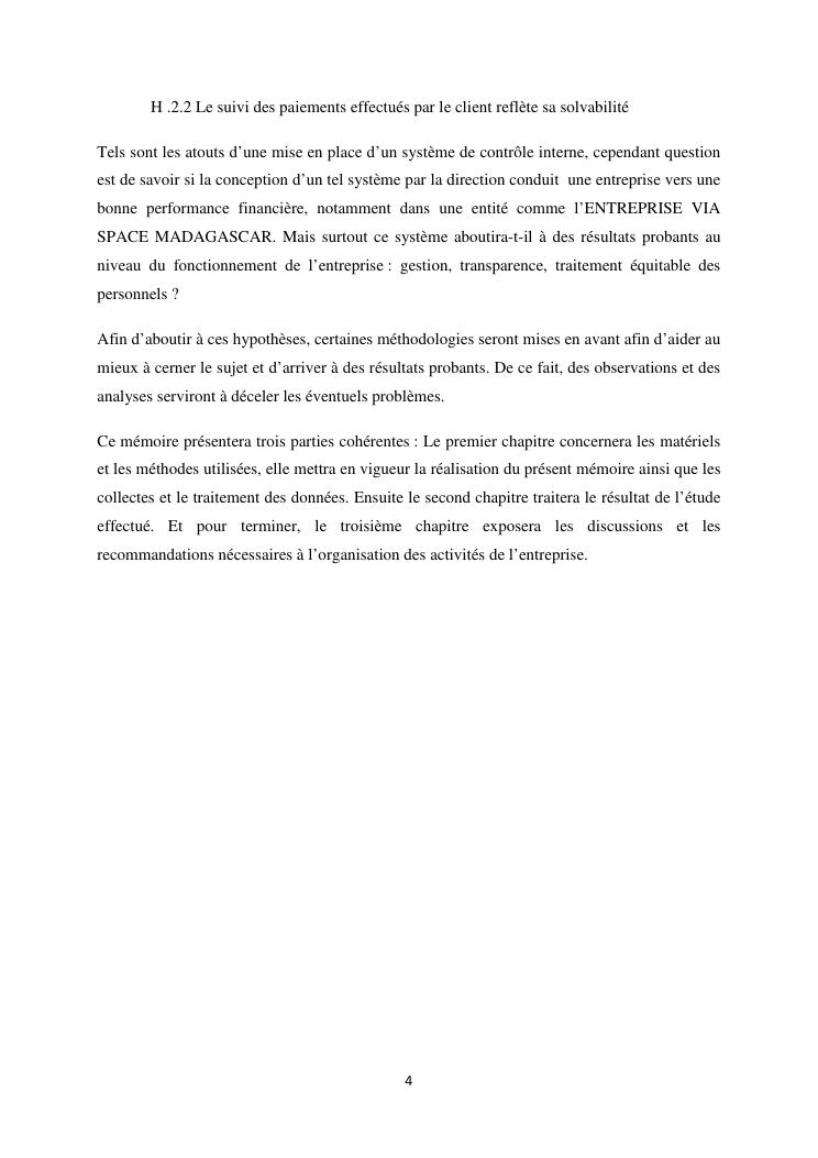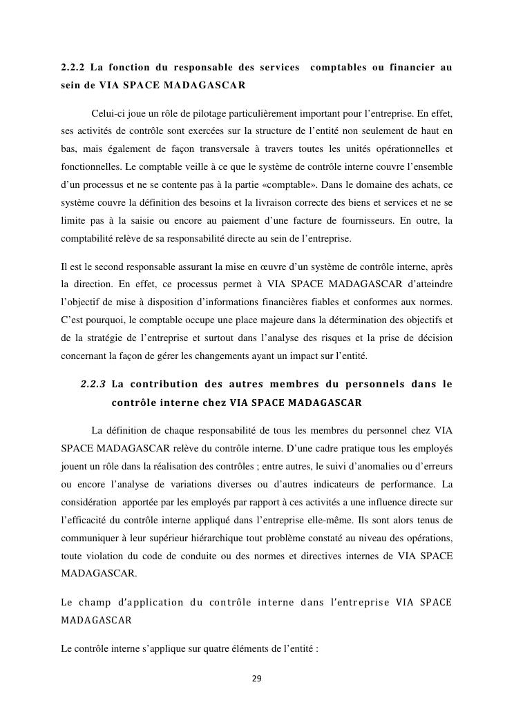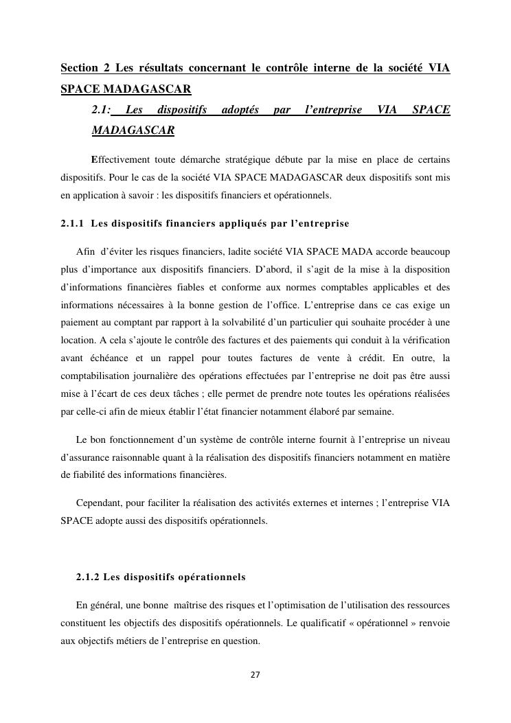 le systeme de controle interne : un outil de gestion et un facteur determinant pour une bonne performance financiere d'une entreprise : cas de via space madagascar