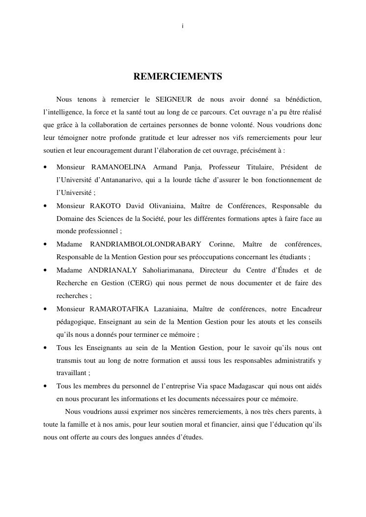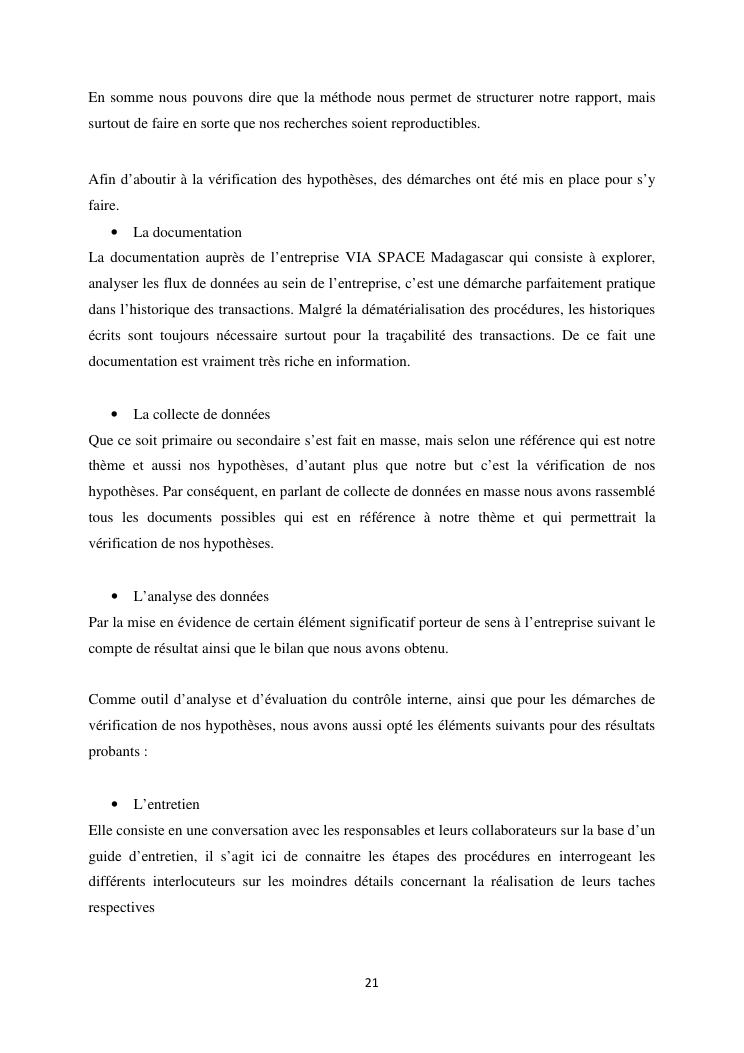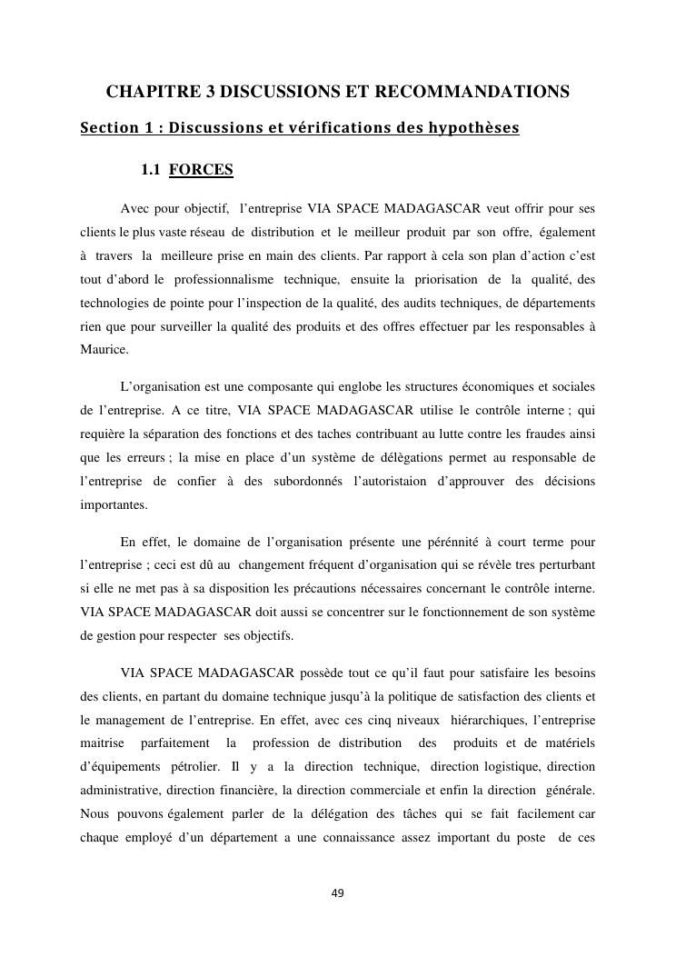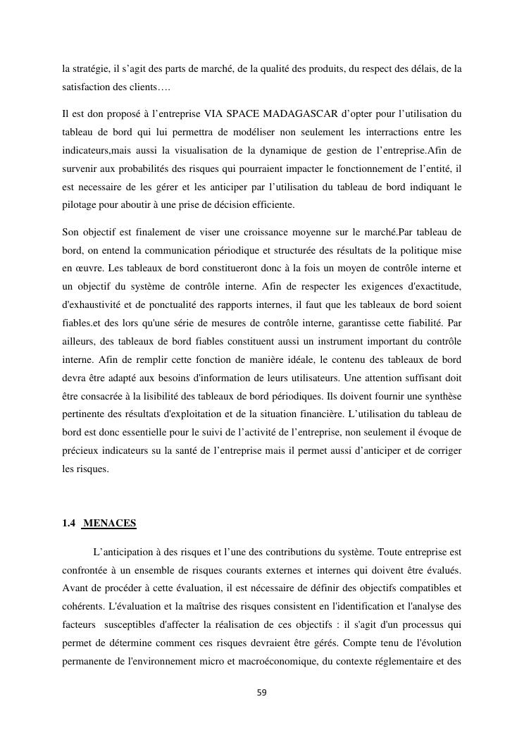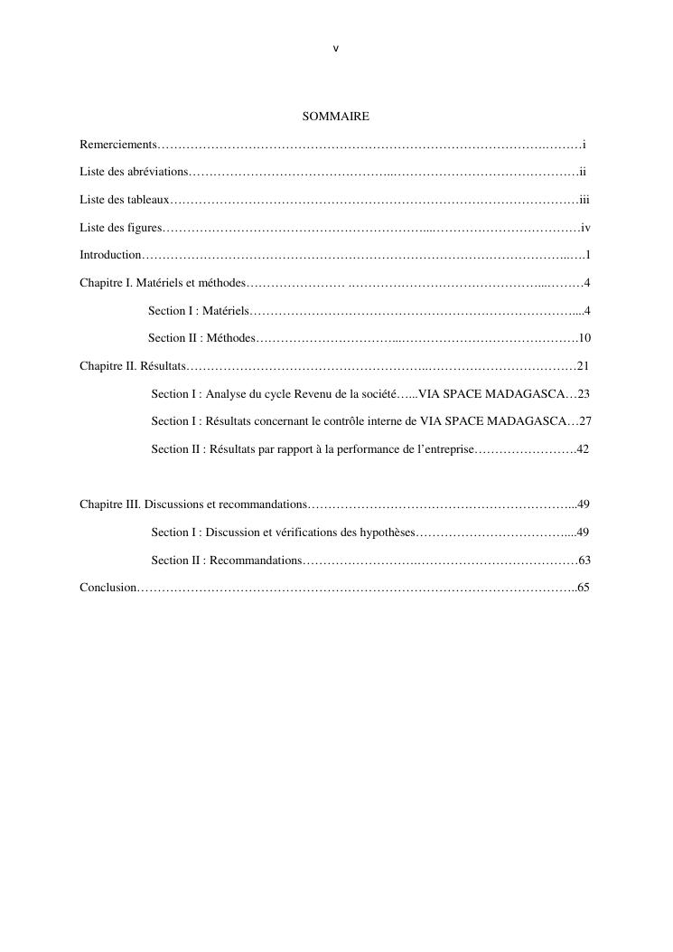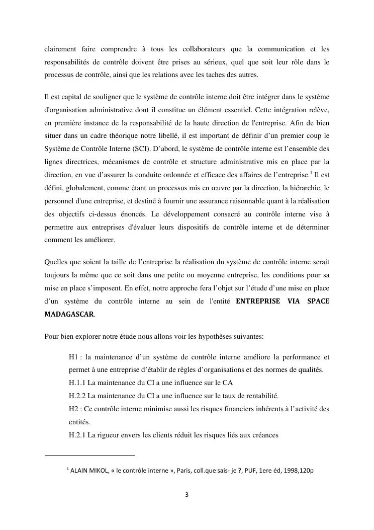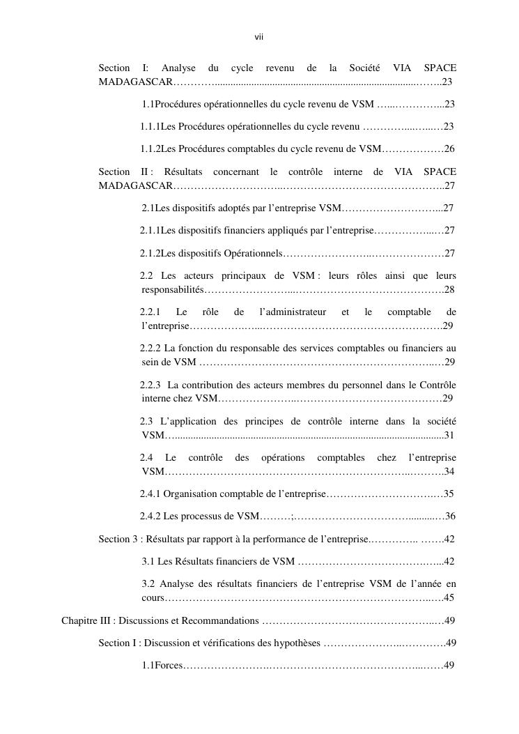 le systeme de controle interne : un outil de gestion et un facteur determinant pour une bonne performance financiere d'une entreprise : cas de via space madagascar