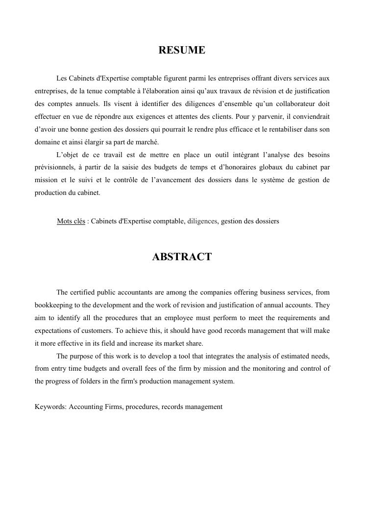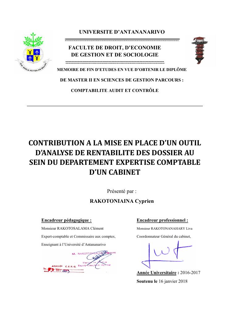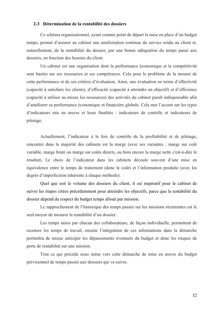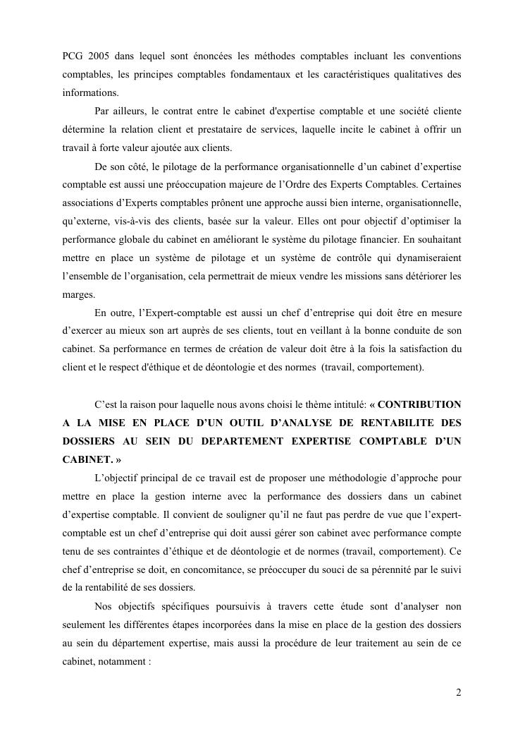 contribution a la mise en place d'un outil d'analyse de rentabilite des dossier au sein du departement expertise comptable d'un cabinet