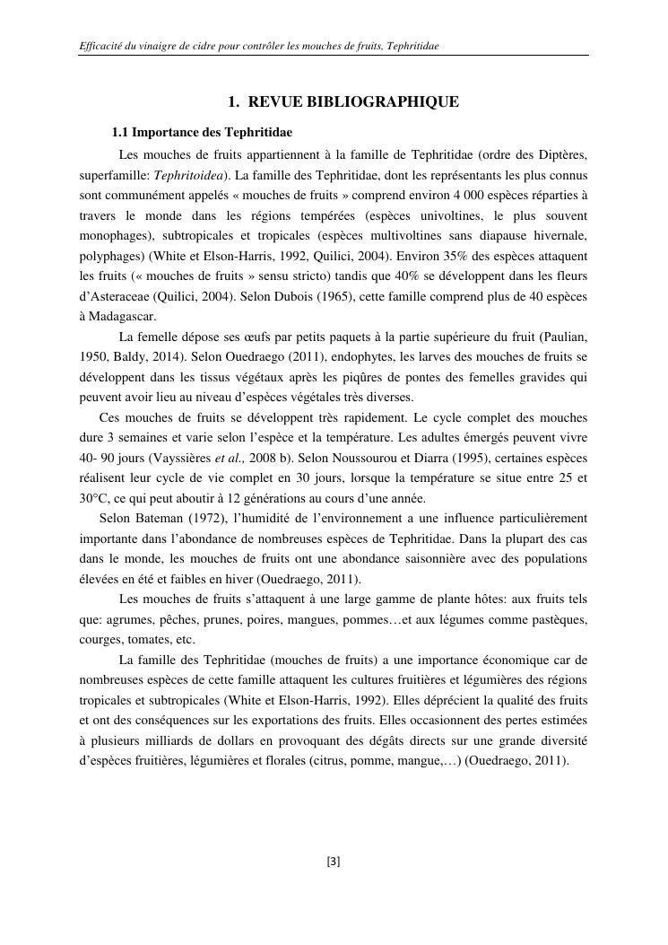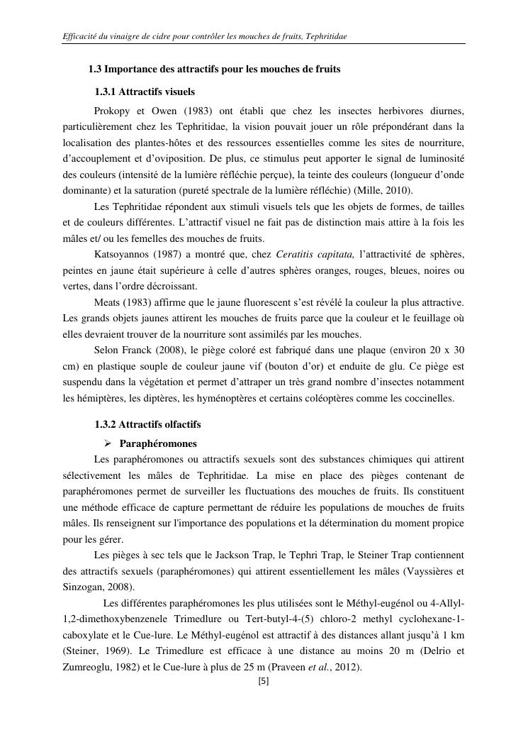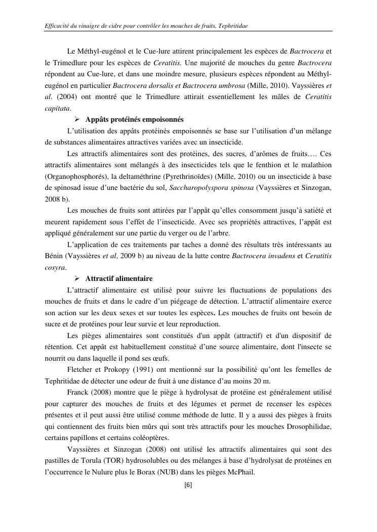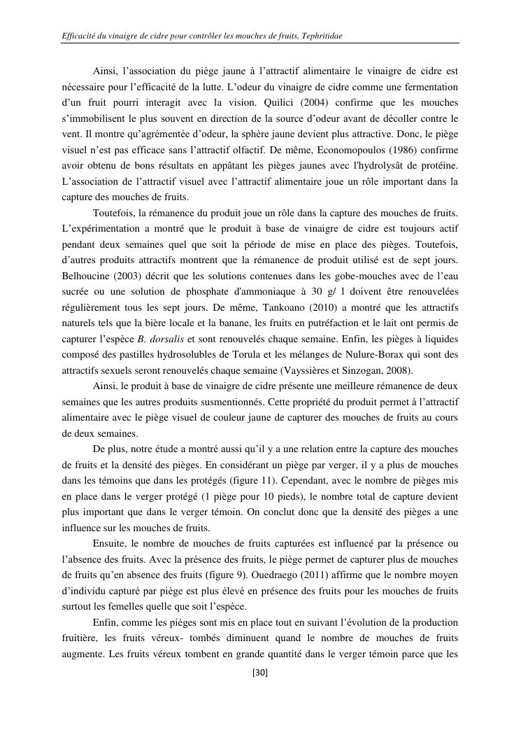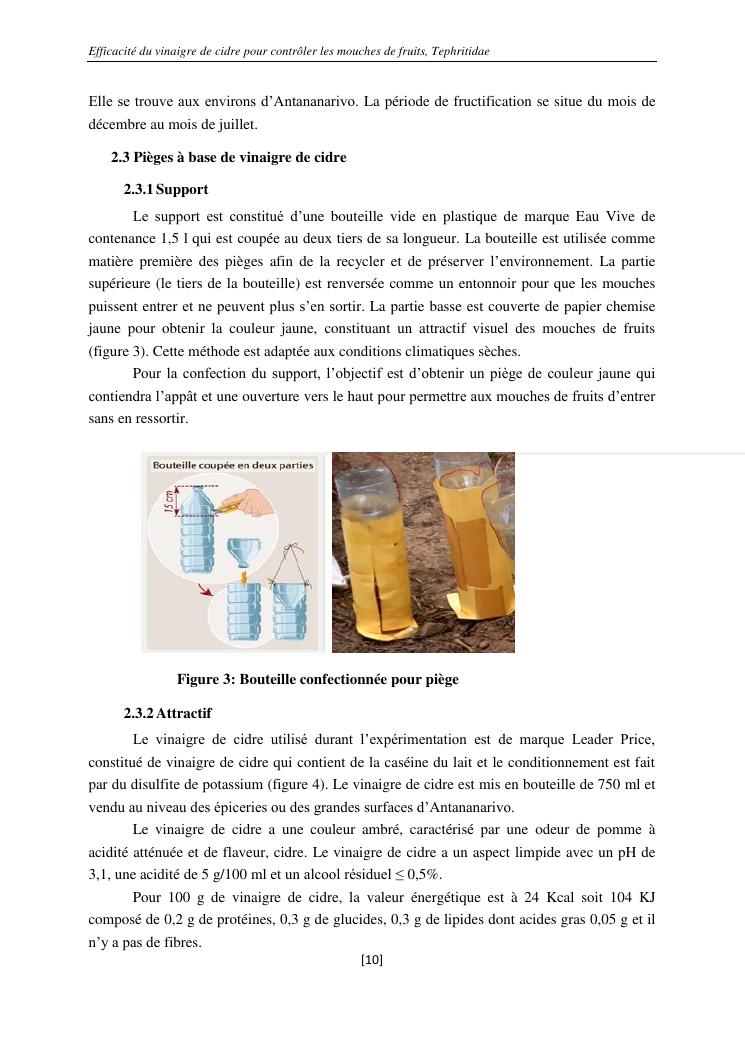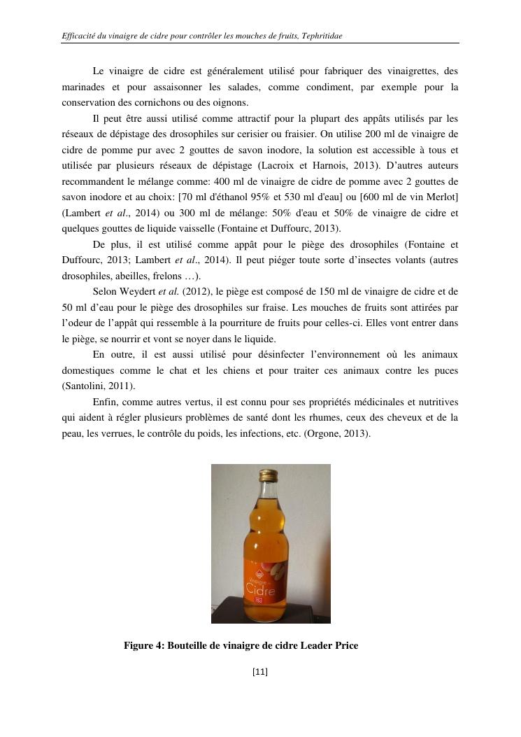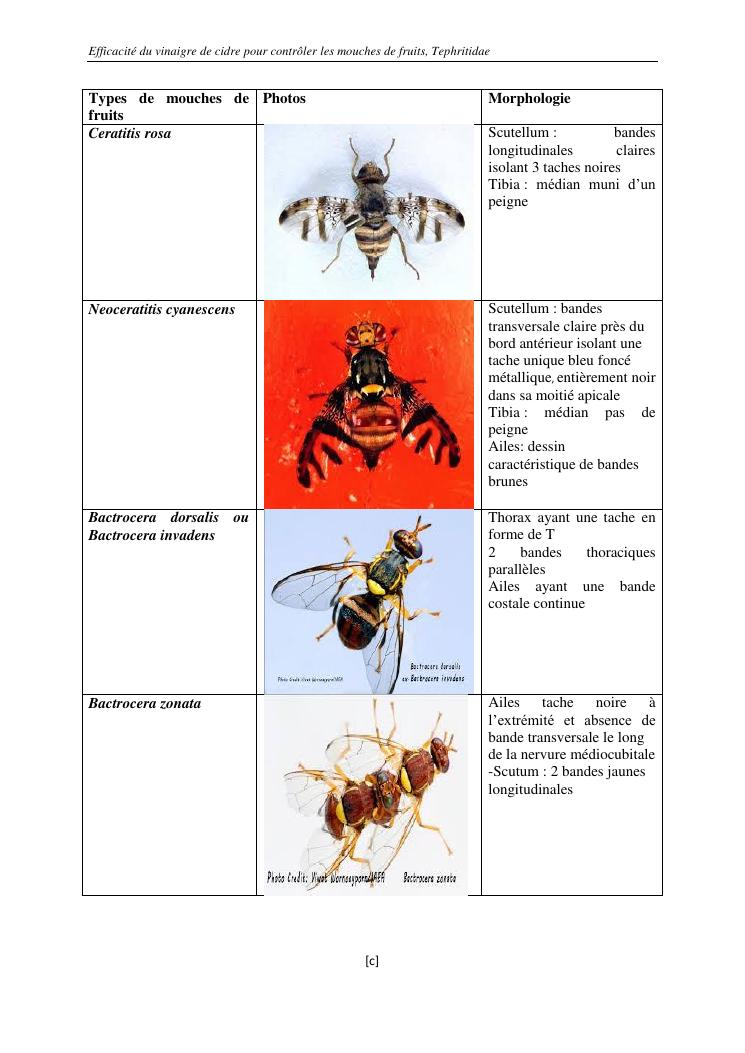 efficacité du vinaigre de cidre pour contrôler les mouches de fruits, tephritidae