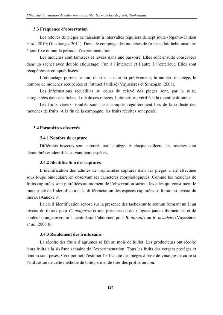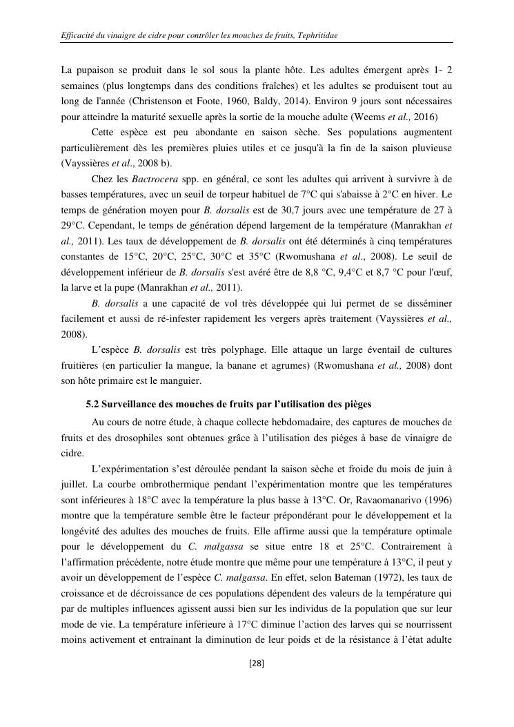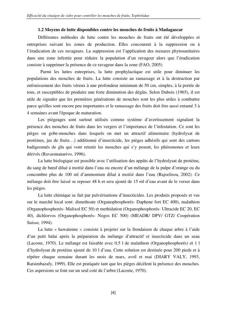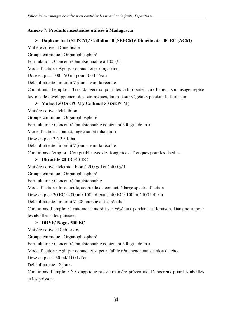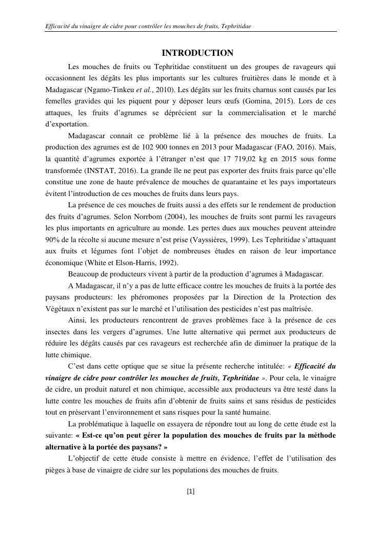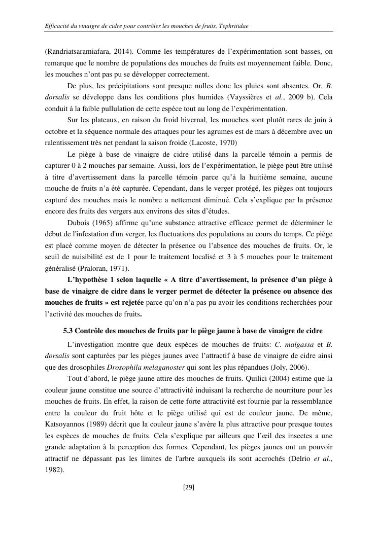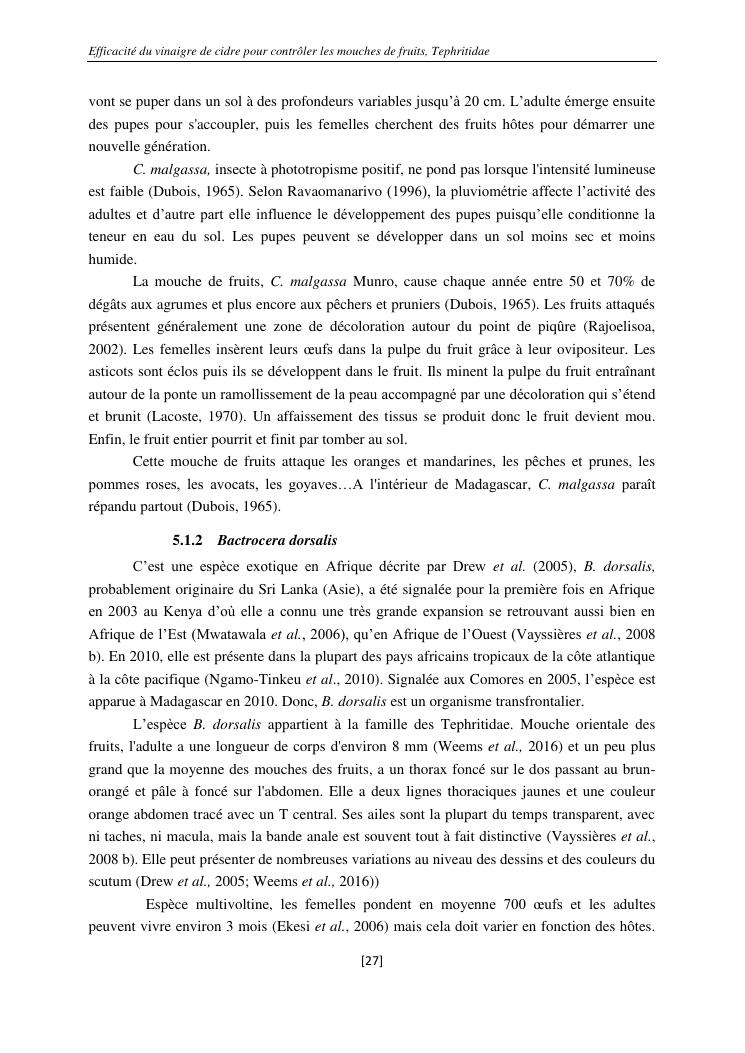 efficacité du vinaigre de cidre pour contrôler les mouches de fruits, tephritidae
