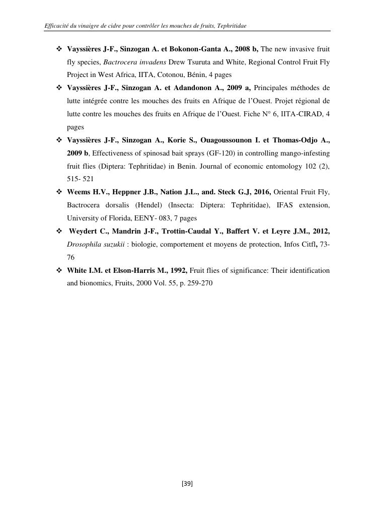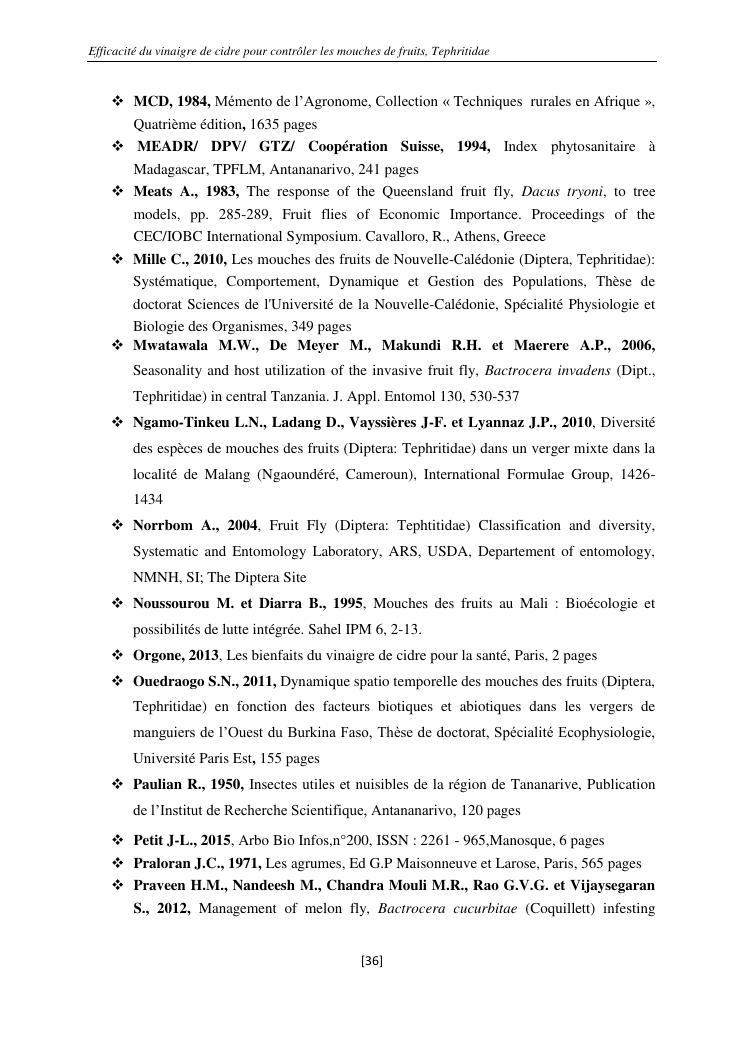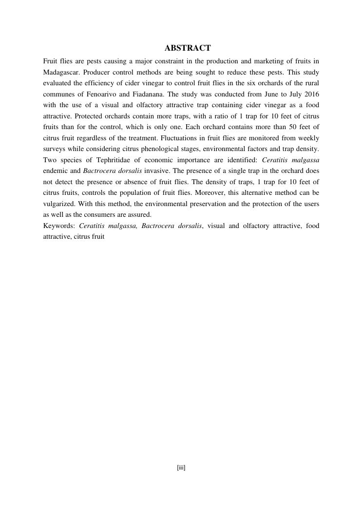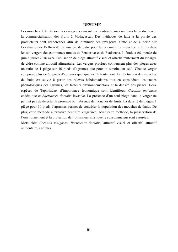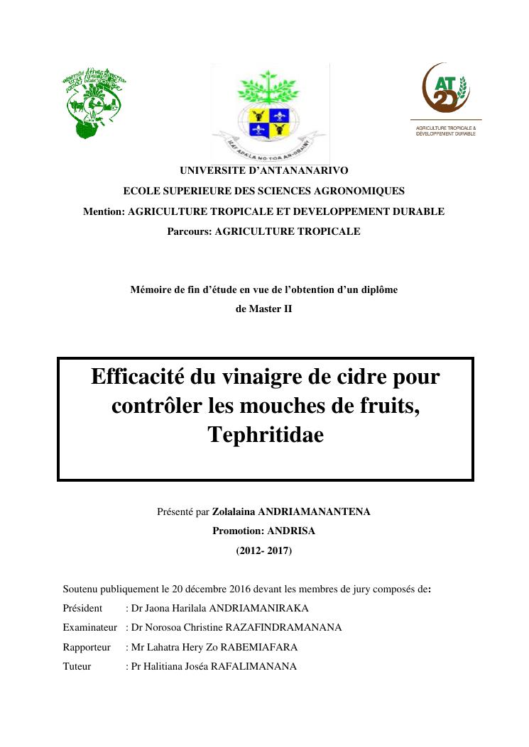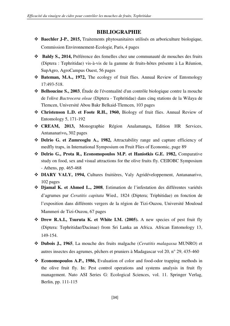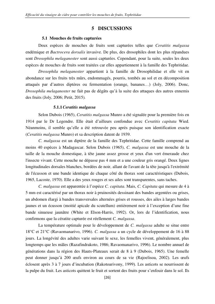 efficacité du vinaigre de cidre pour contrôler les mouches de fruits, tephritidae