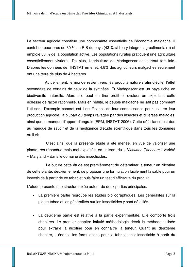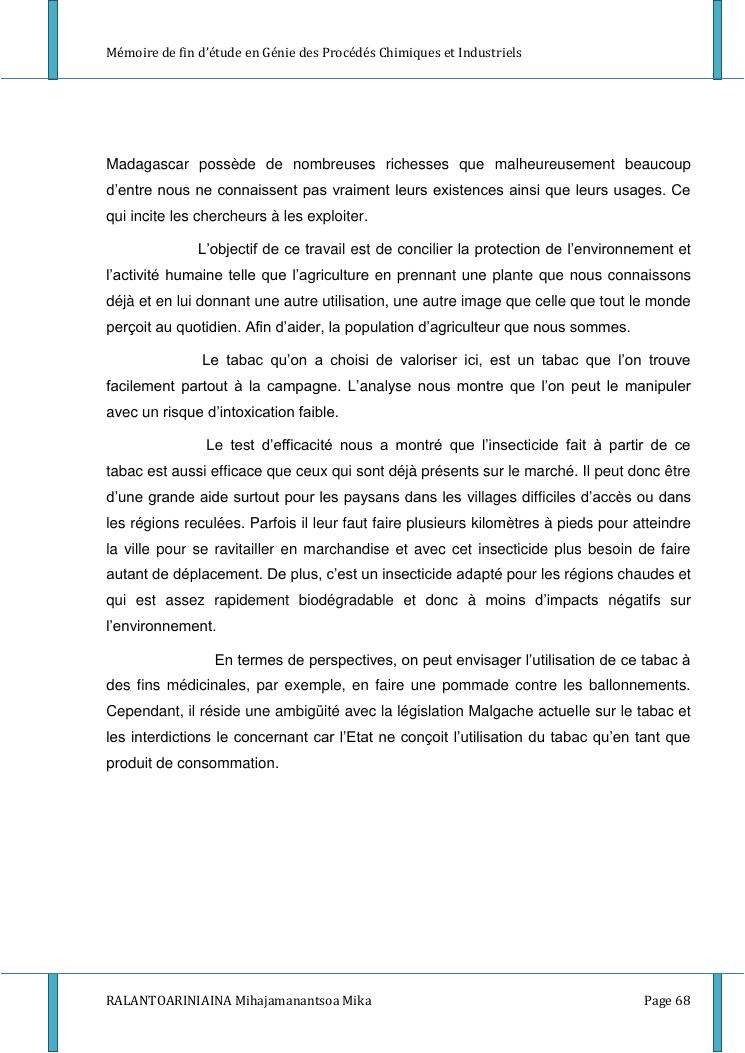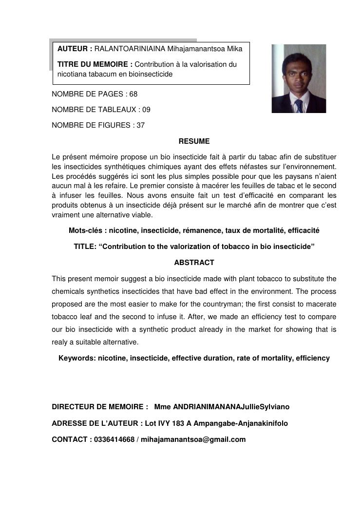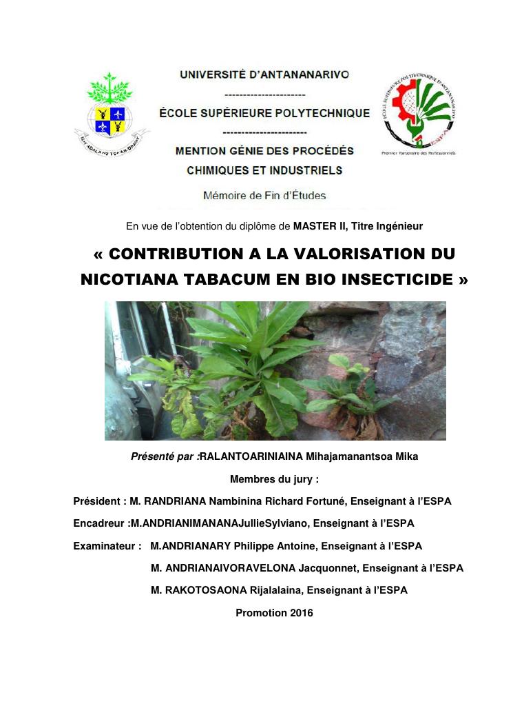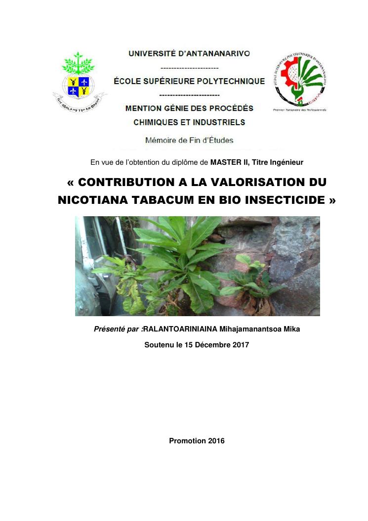 « contribution a la valorisation du nicotiana tabacum en bio insecticide »