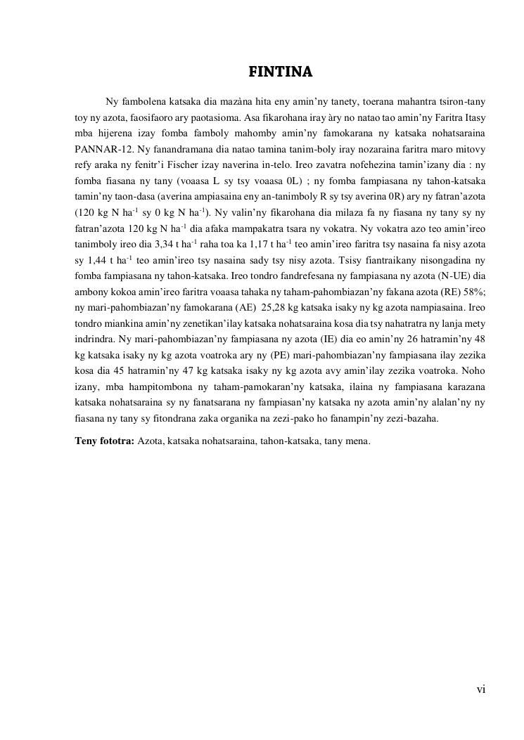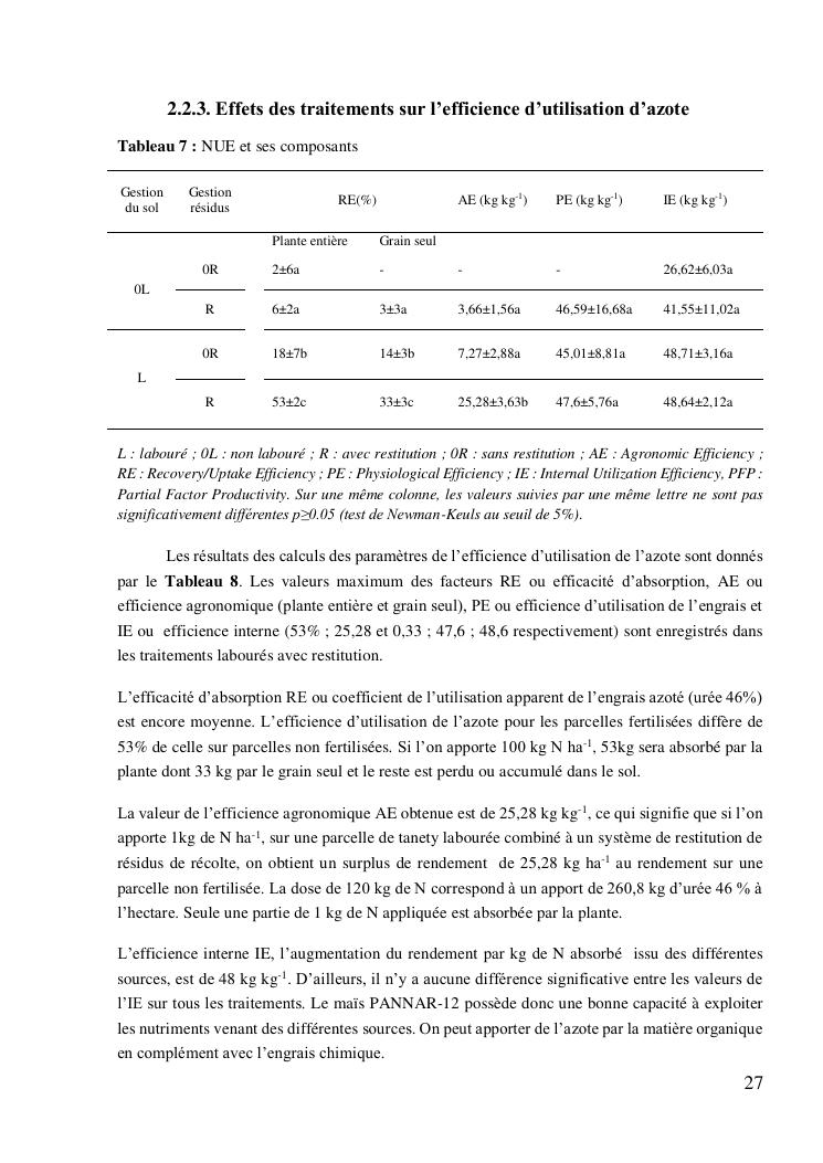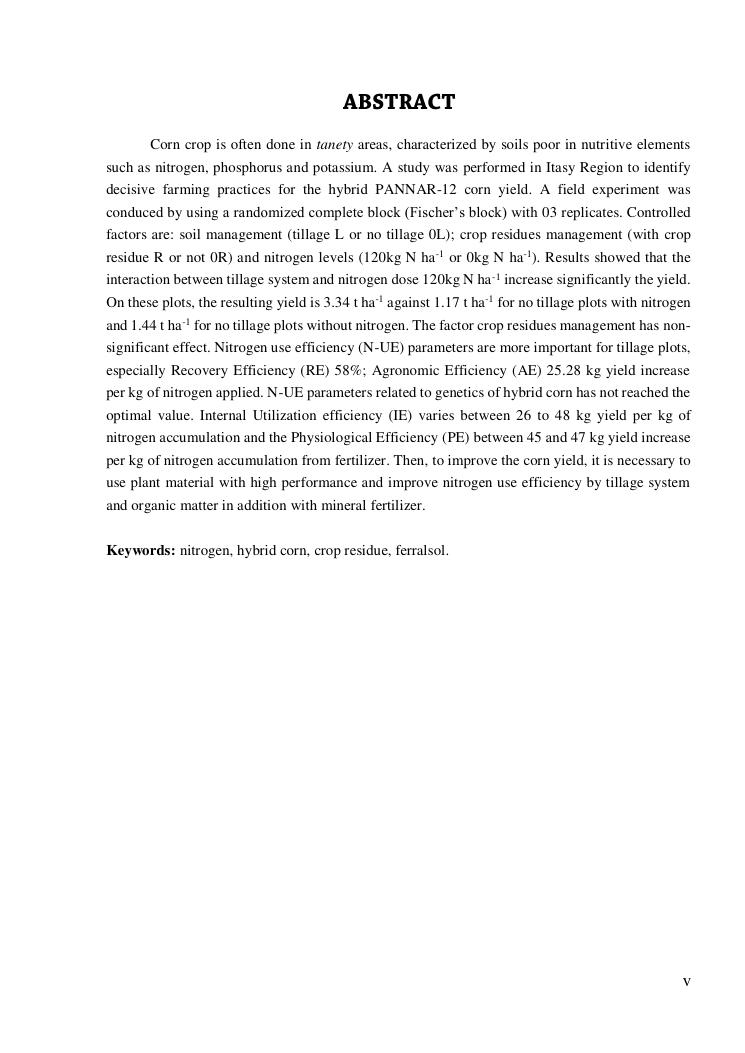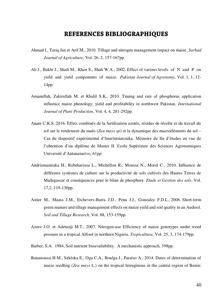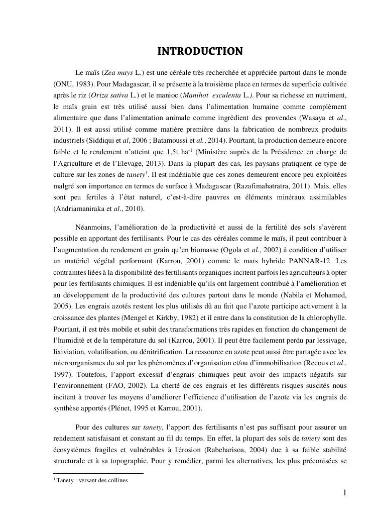 pratiques culturales et efficience d'utilisation de l'azote chez le maïs (zea mays l.) : cas du dispositif experimental d'imerintsiatosika