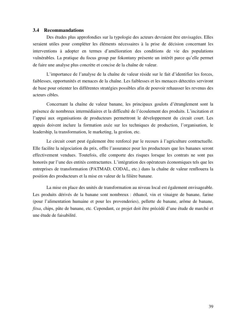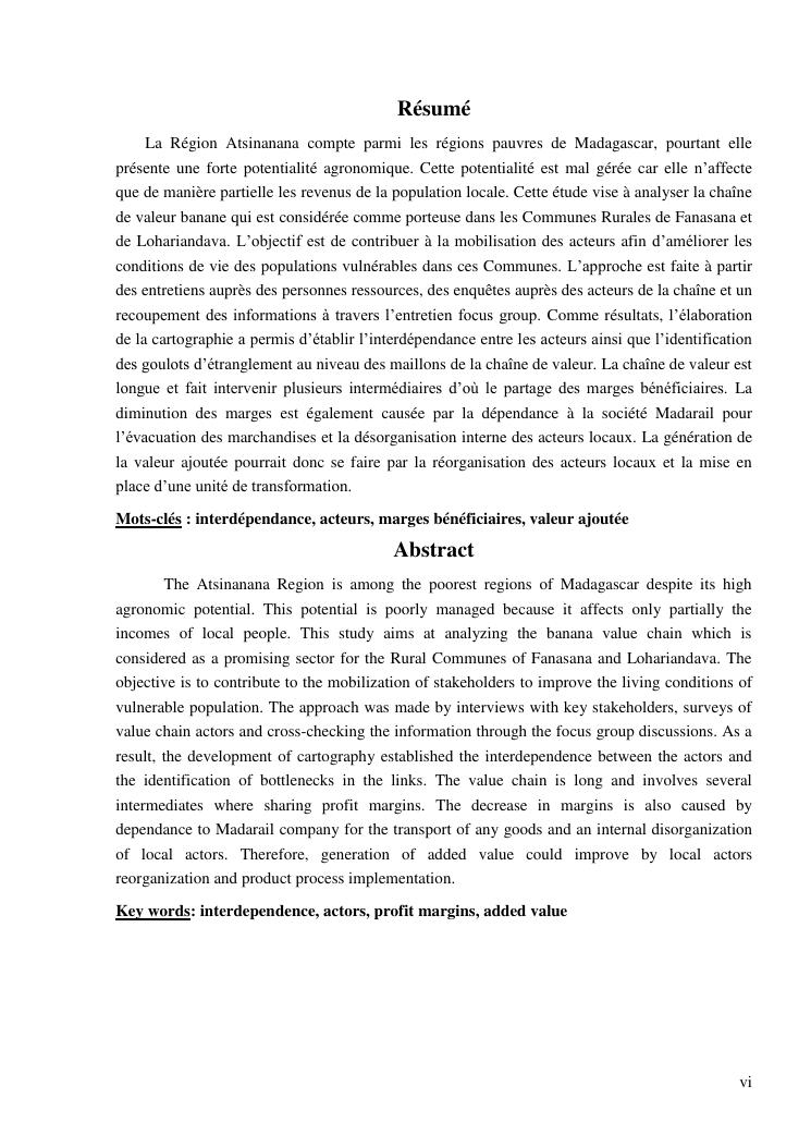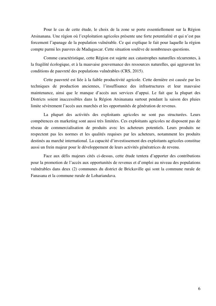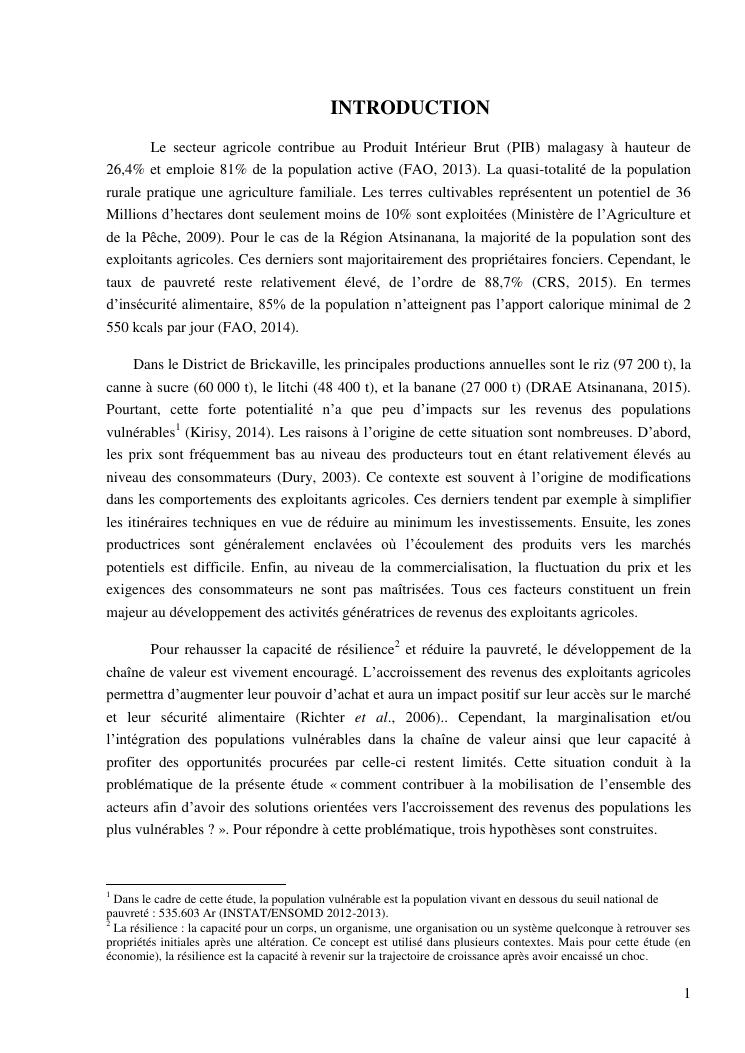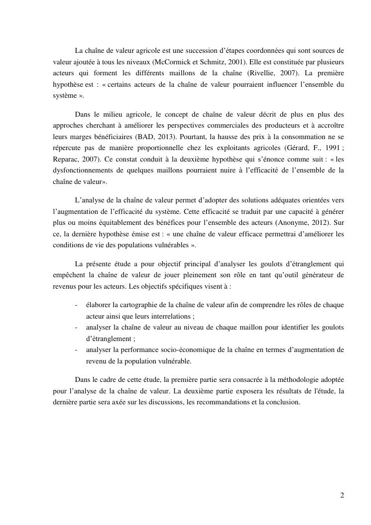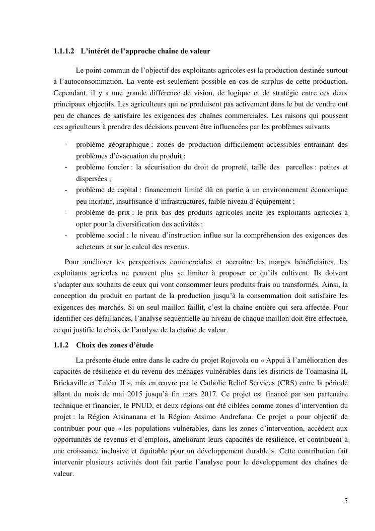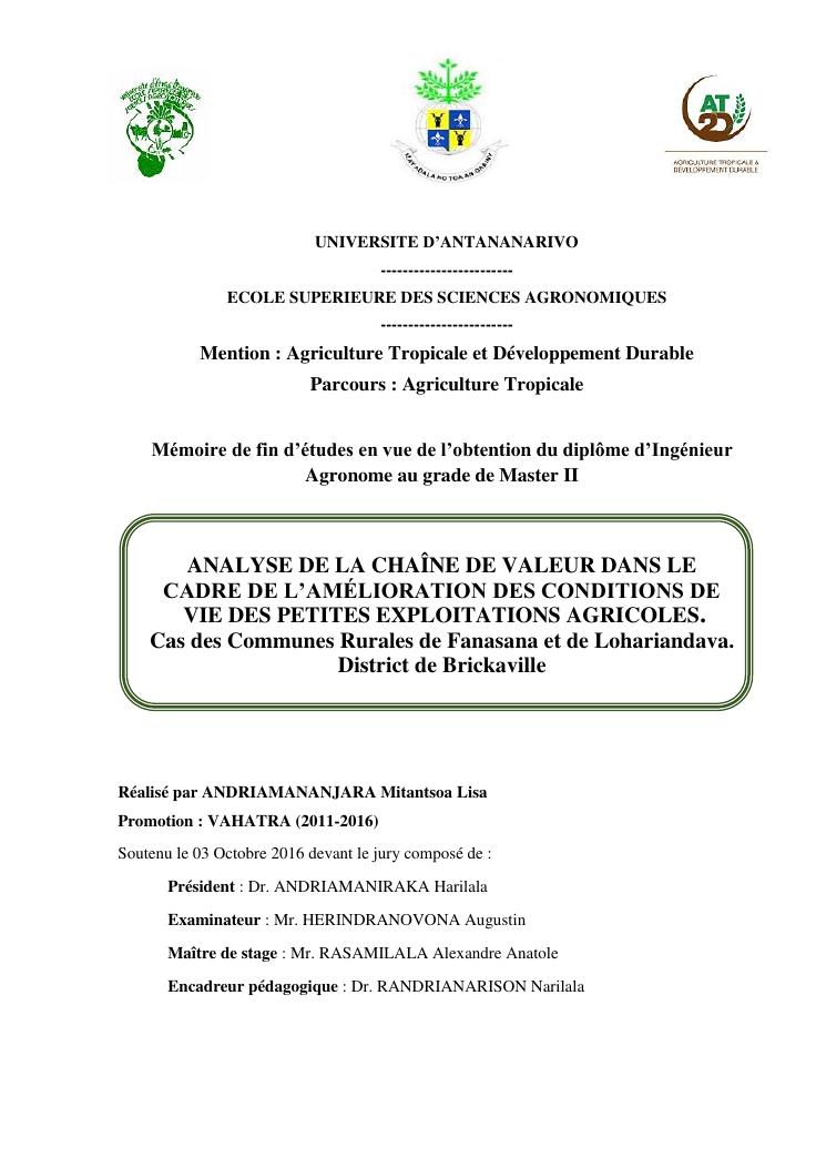 analyse de la chaîne de valeur dans le cadre de l'amélioration des conditions de vie des petites exploitations agricoles. cas des communes rurales de fanasana et de lohariandava. district de brickaville