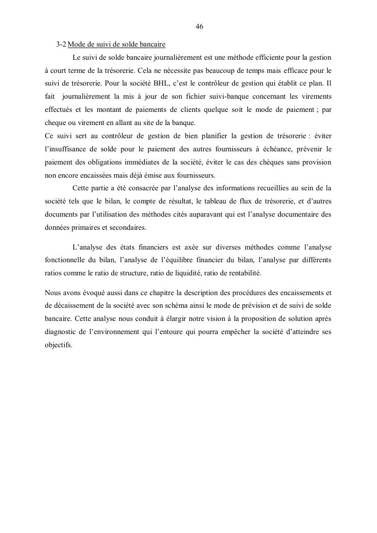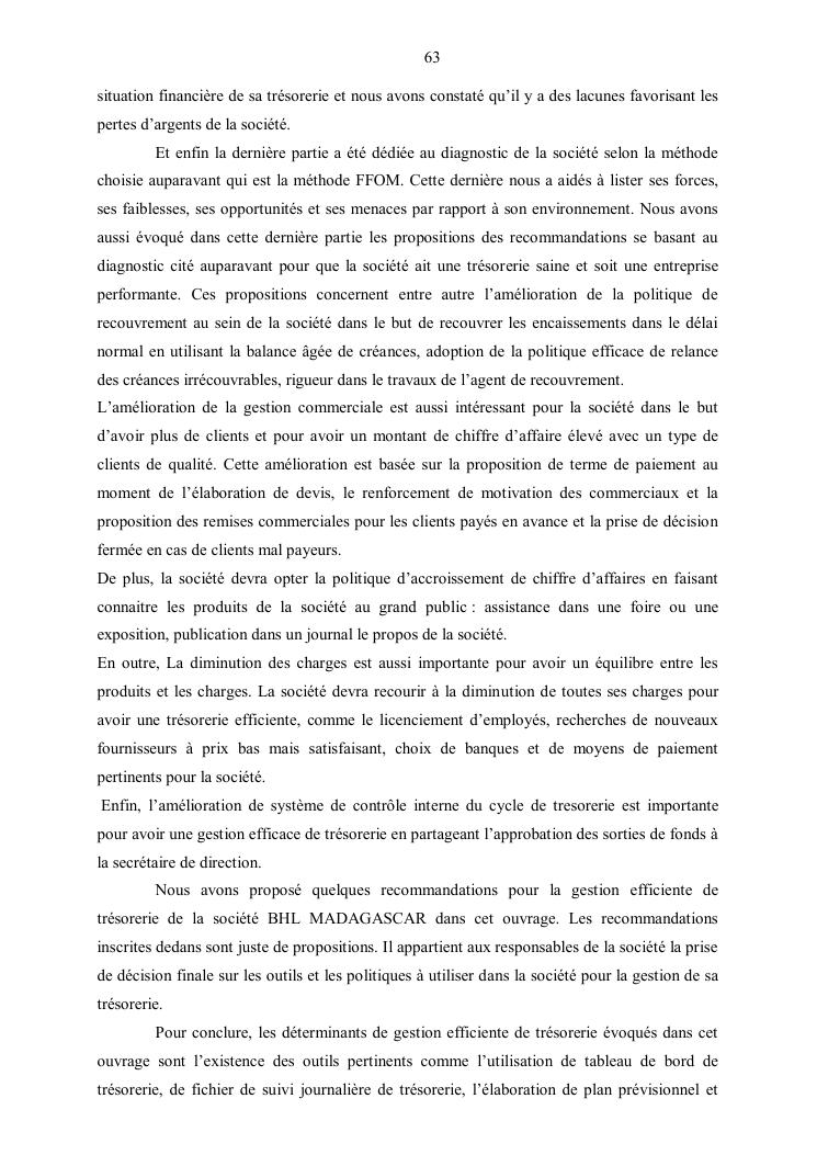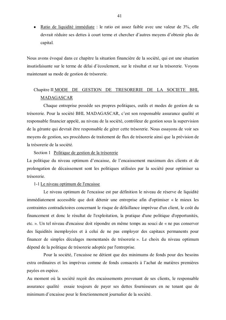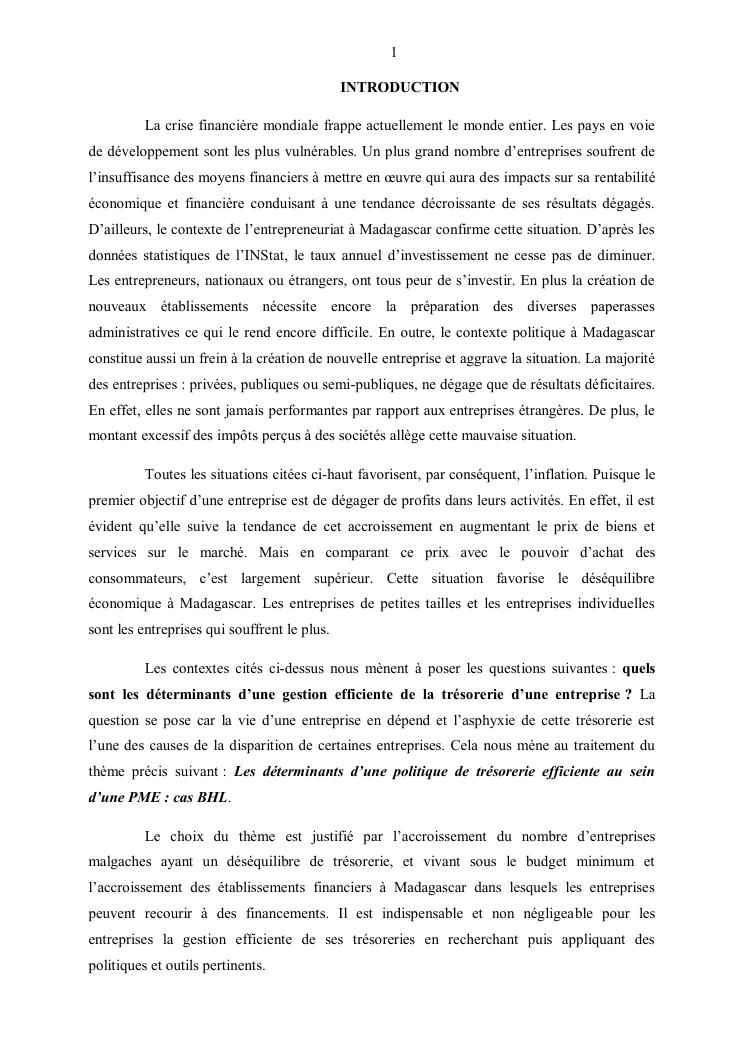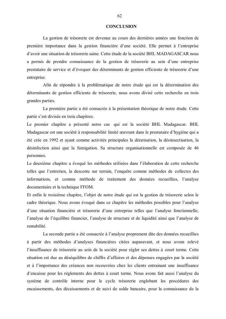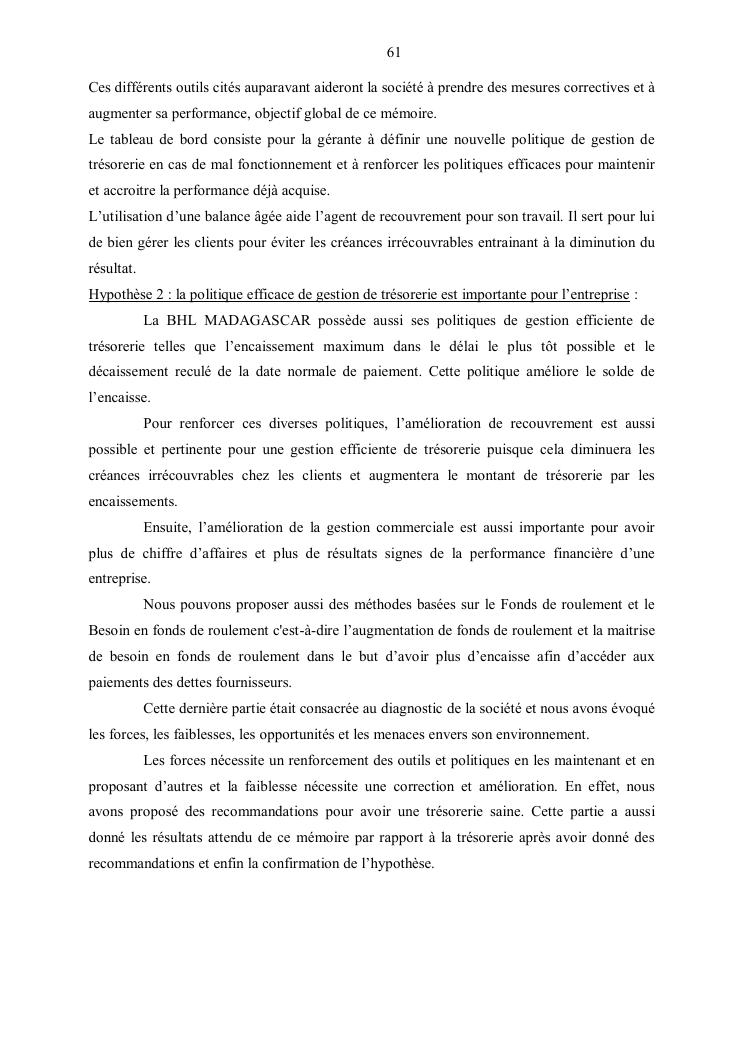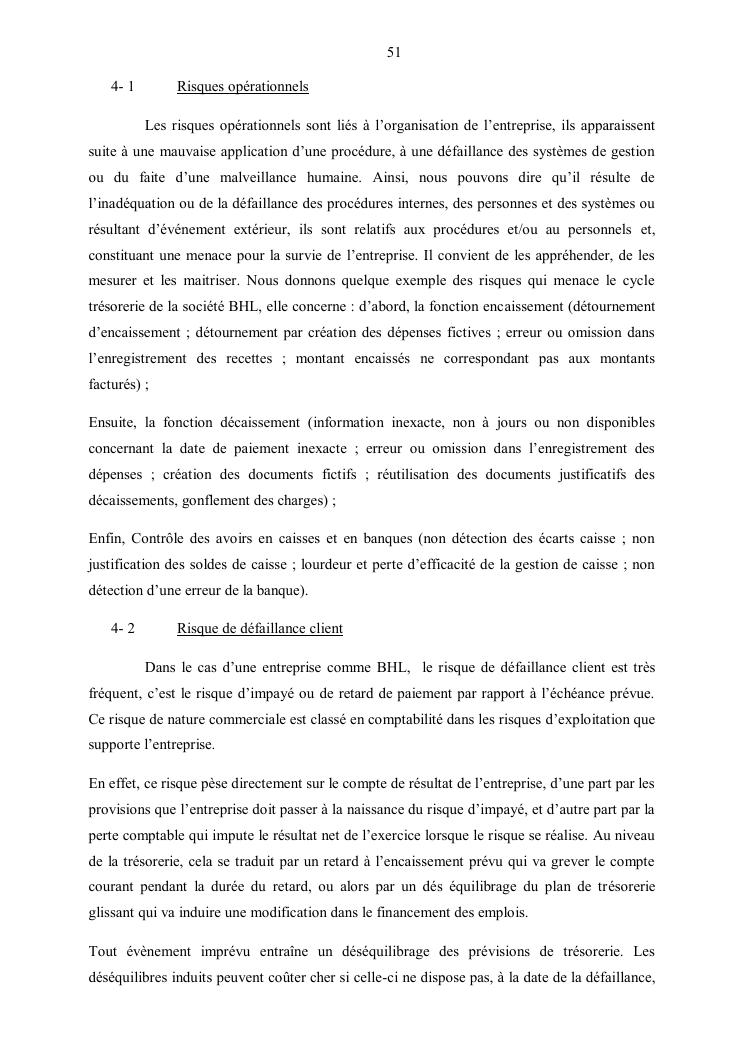 les determinants d'une politique de tresorerie efficiente au sein d'une pme : cas bhl