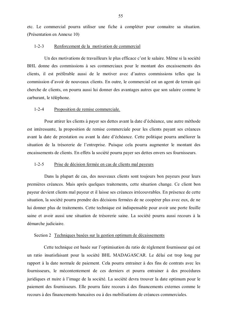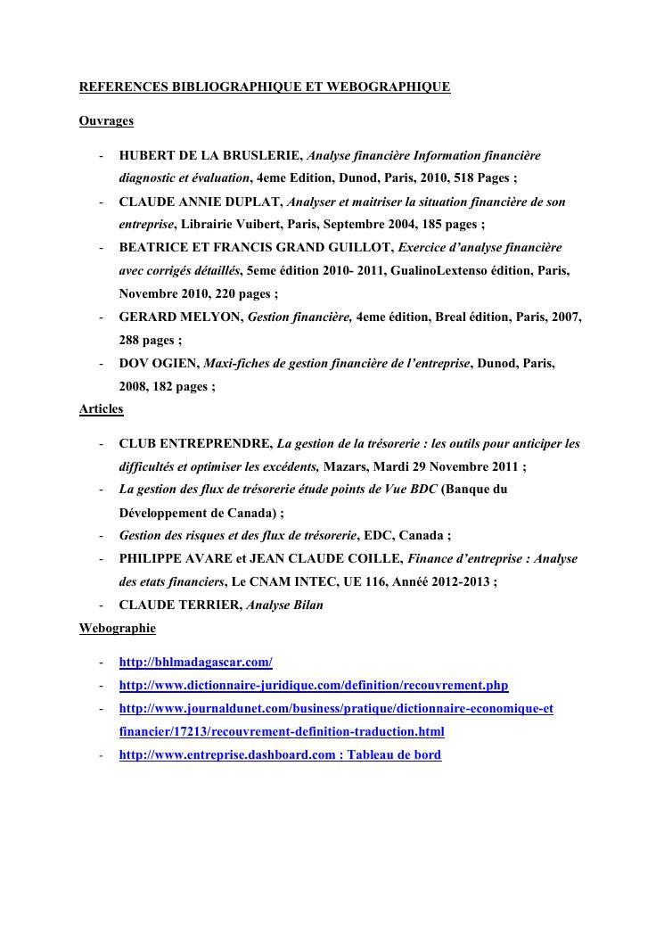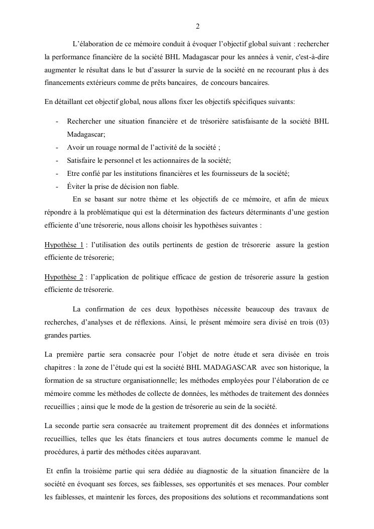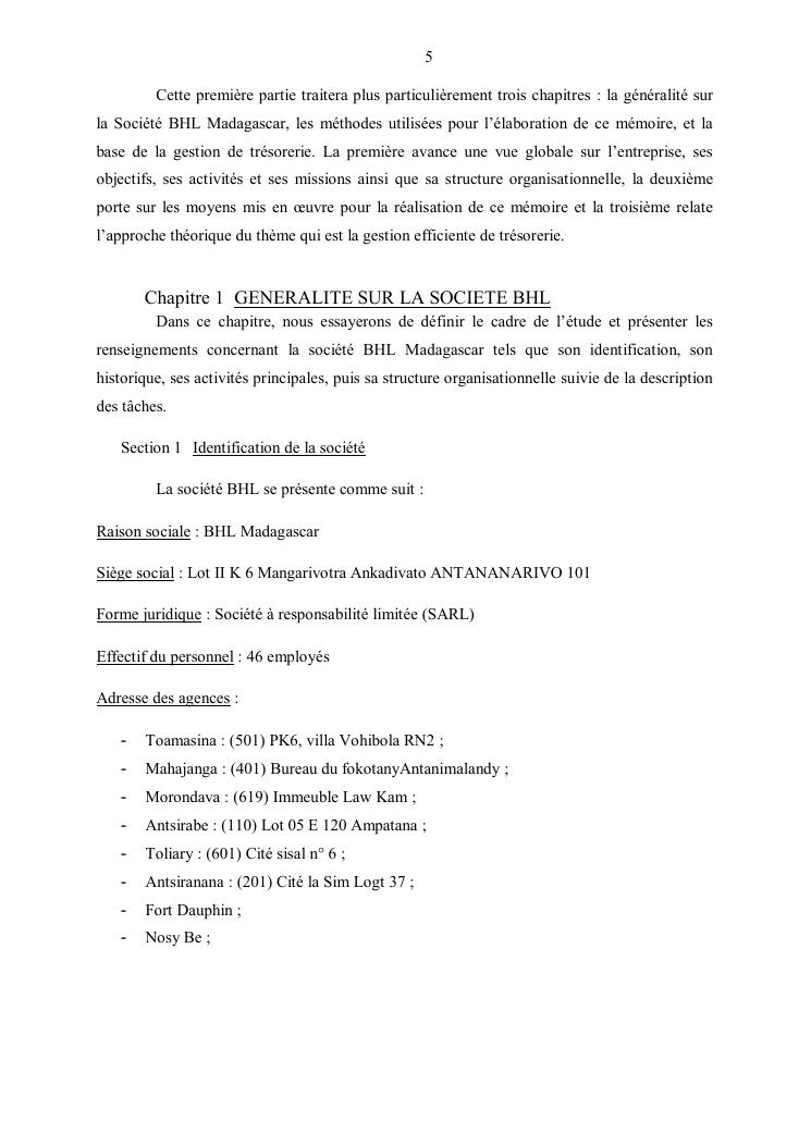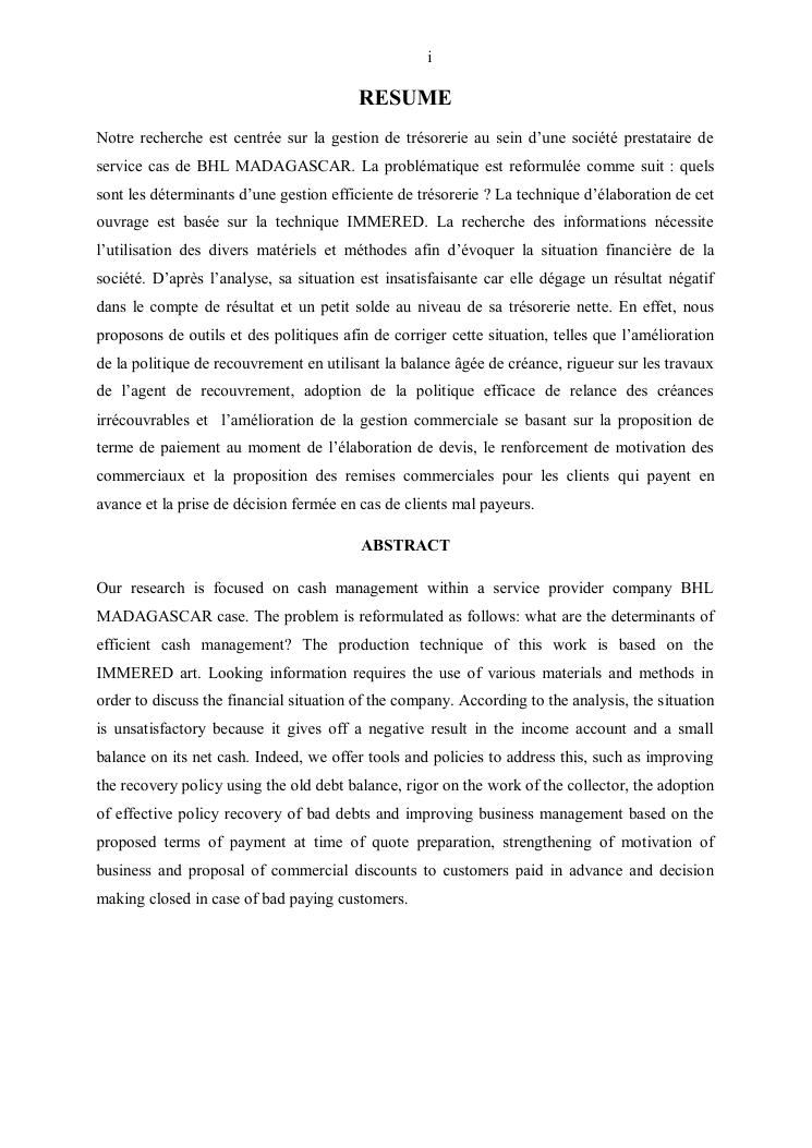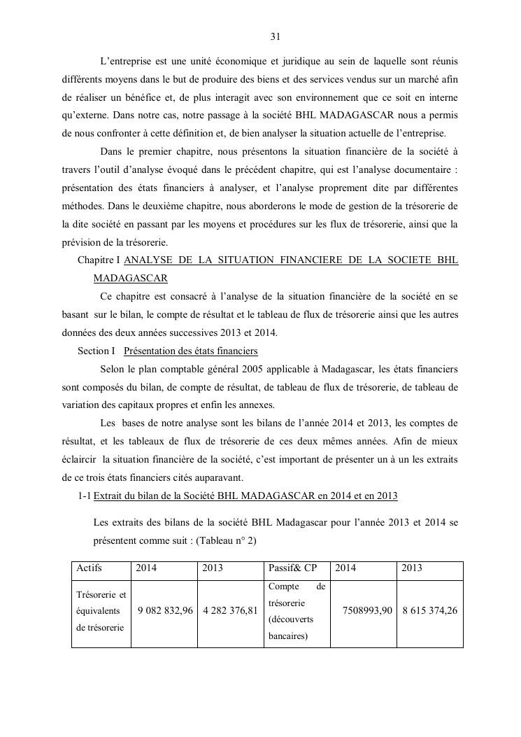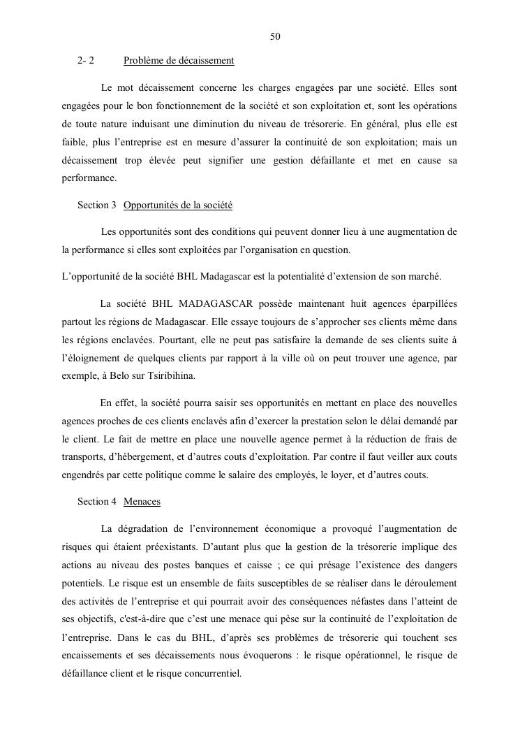 les determinants d'une politique de tresorerie efficiente au sein d'une pme : cas bhl