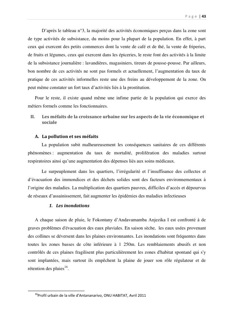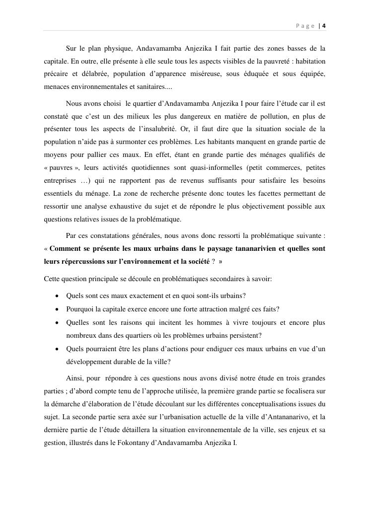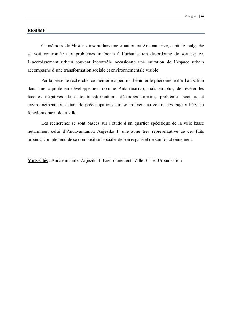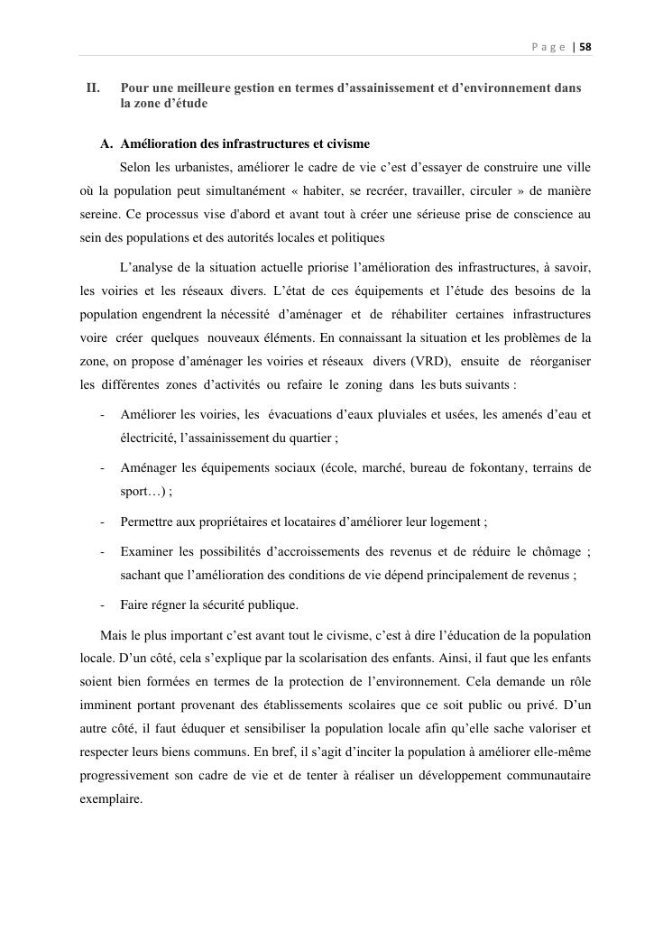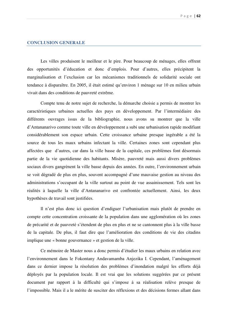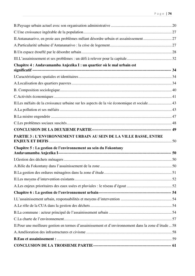 « les maux urbains et gestion de l'environnement : realites sociales dans la ville basse de la cua. cas du fokontany andavamamba anjezika i »