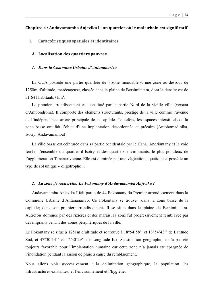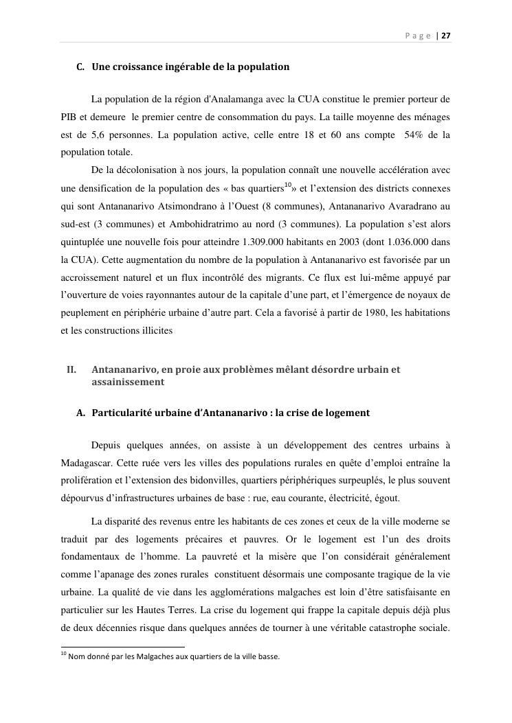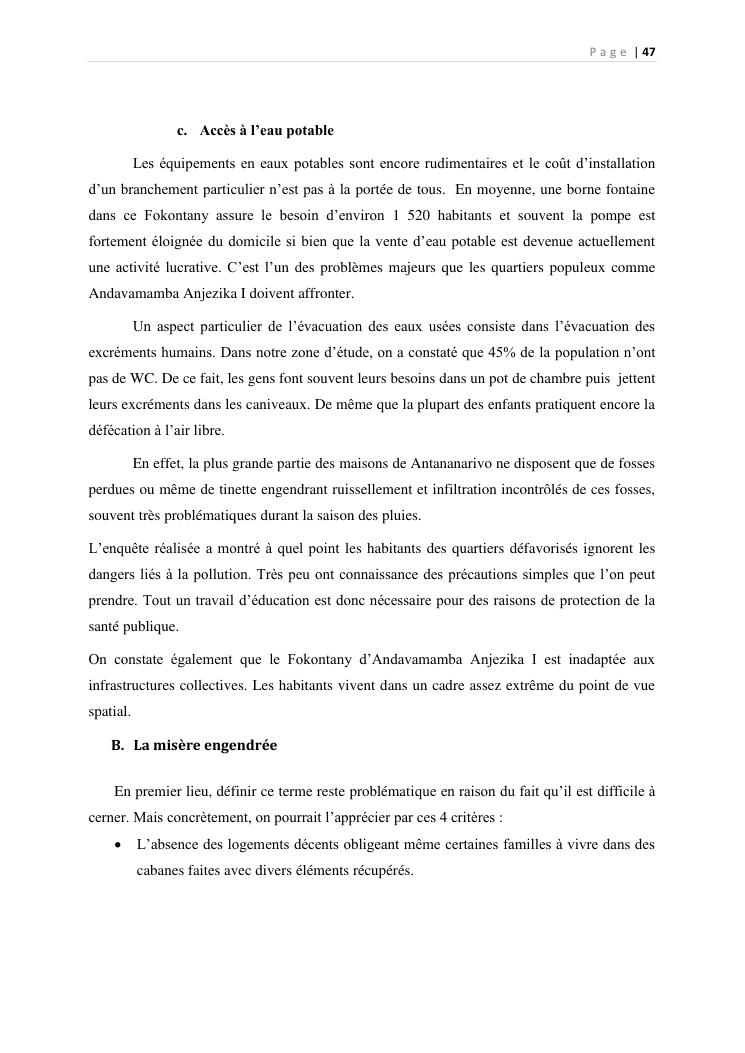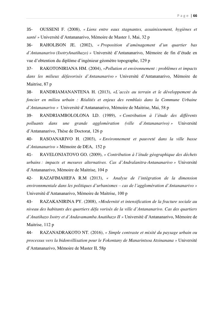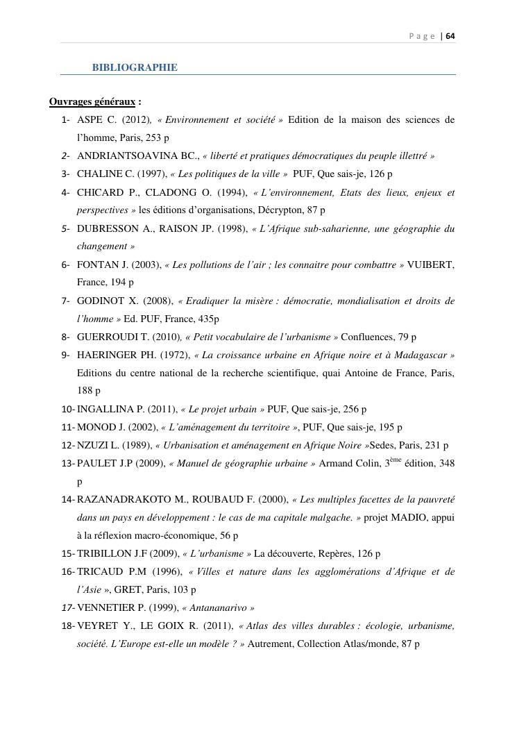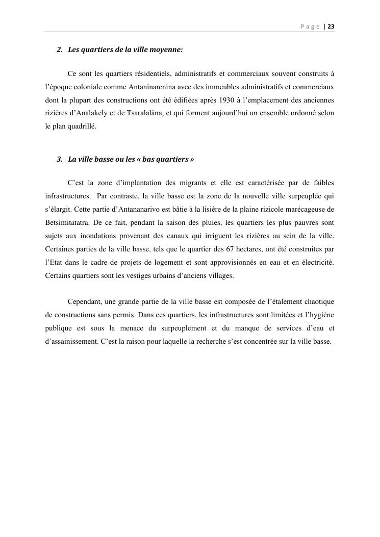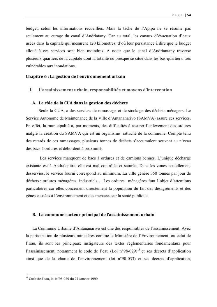 « les maux urbains et gestion de l'environnement : realites sociales dans la ville basse de la cua. cas du fokontany andavamamba anjezika i »