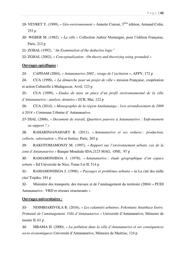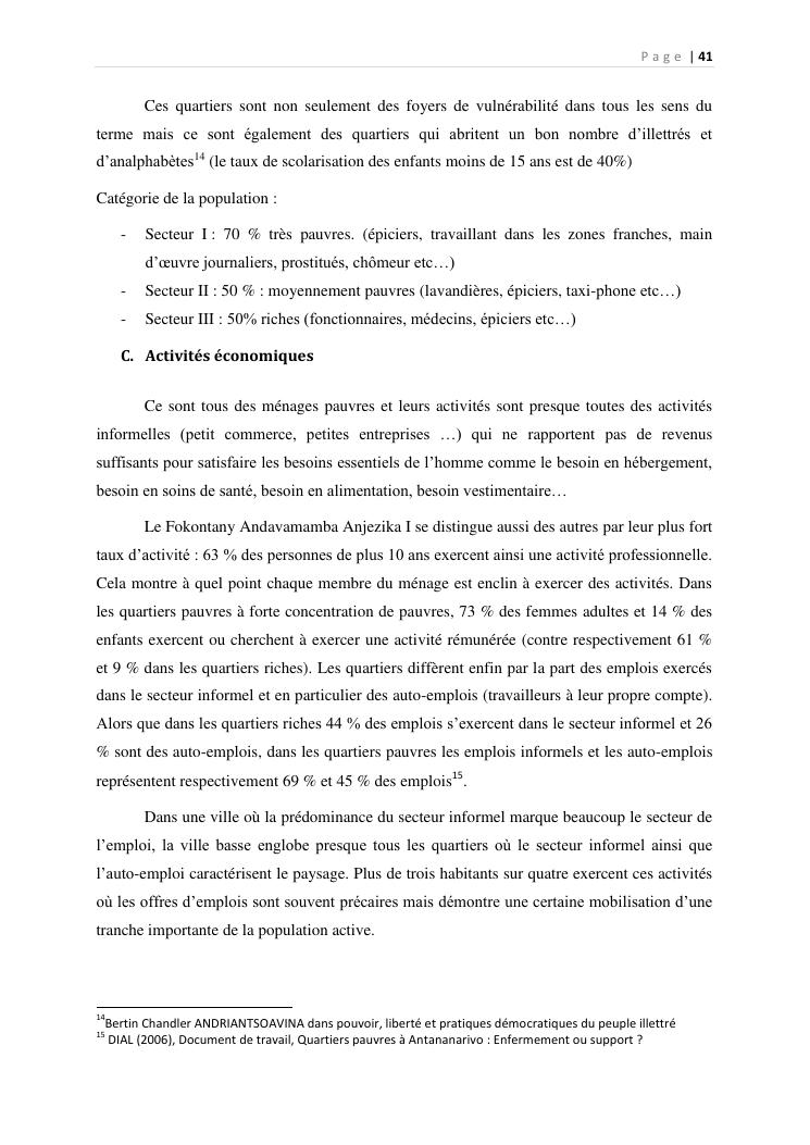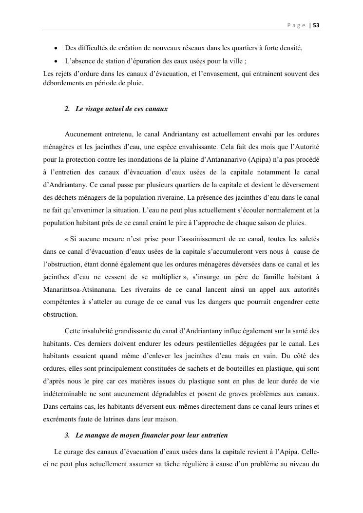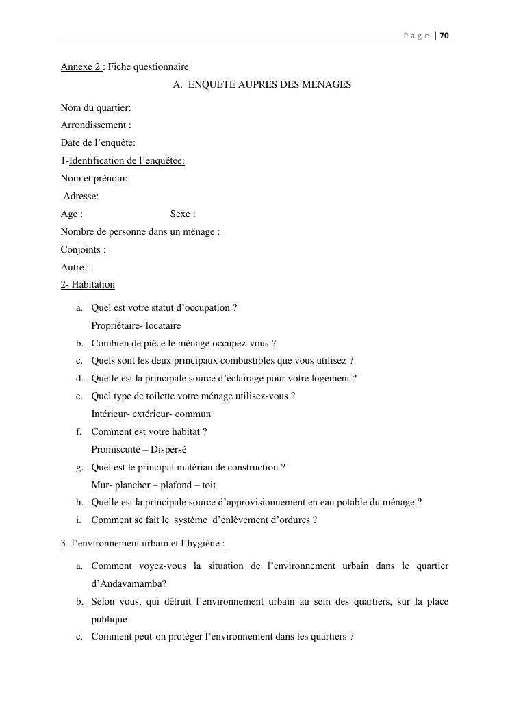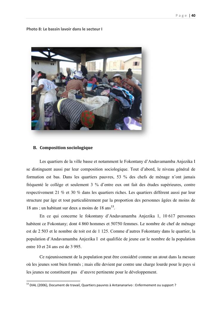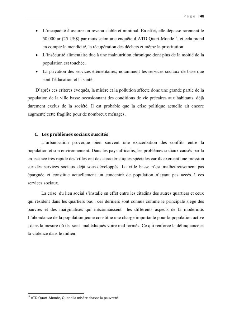 « les maux urbains et gestion de l'environnement : realites sociales dans la ville basse de la cua. cas du fokontany andavamamba anjezika i »