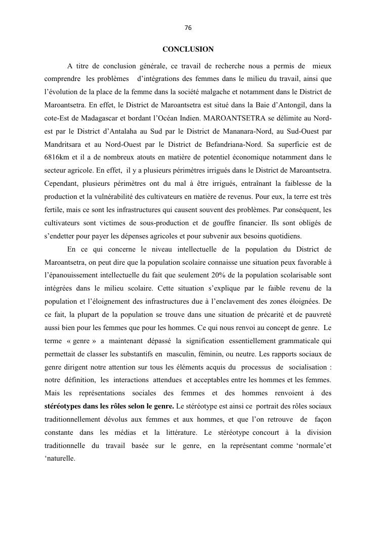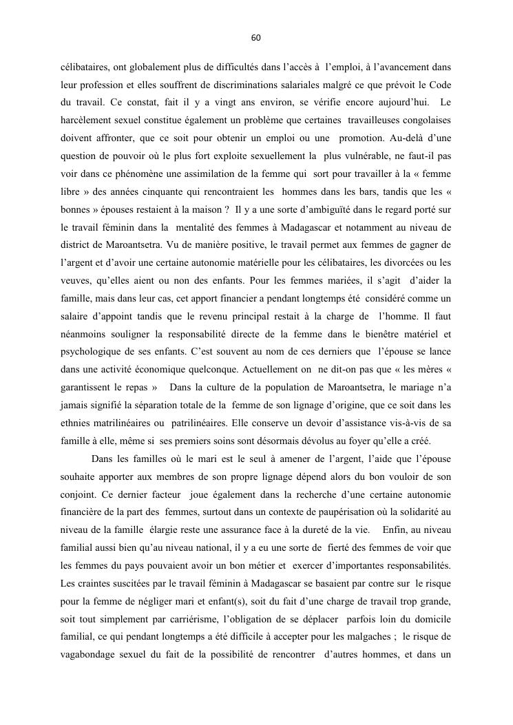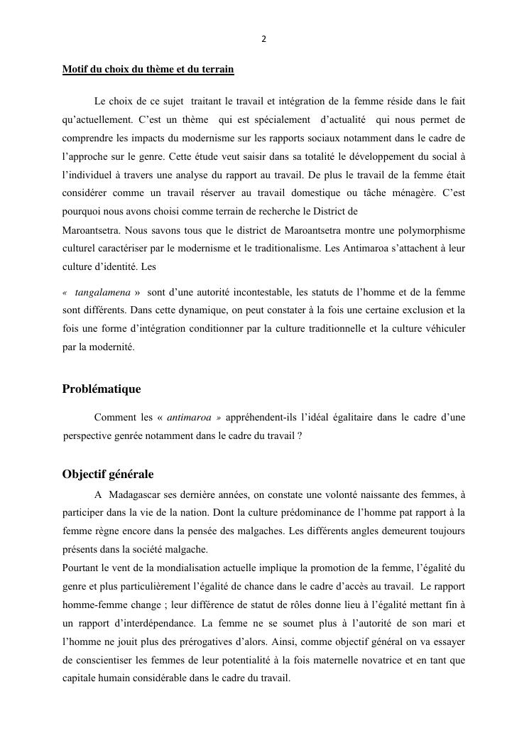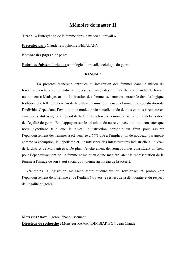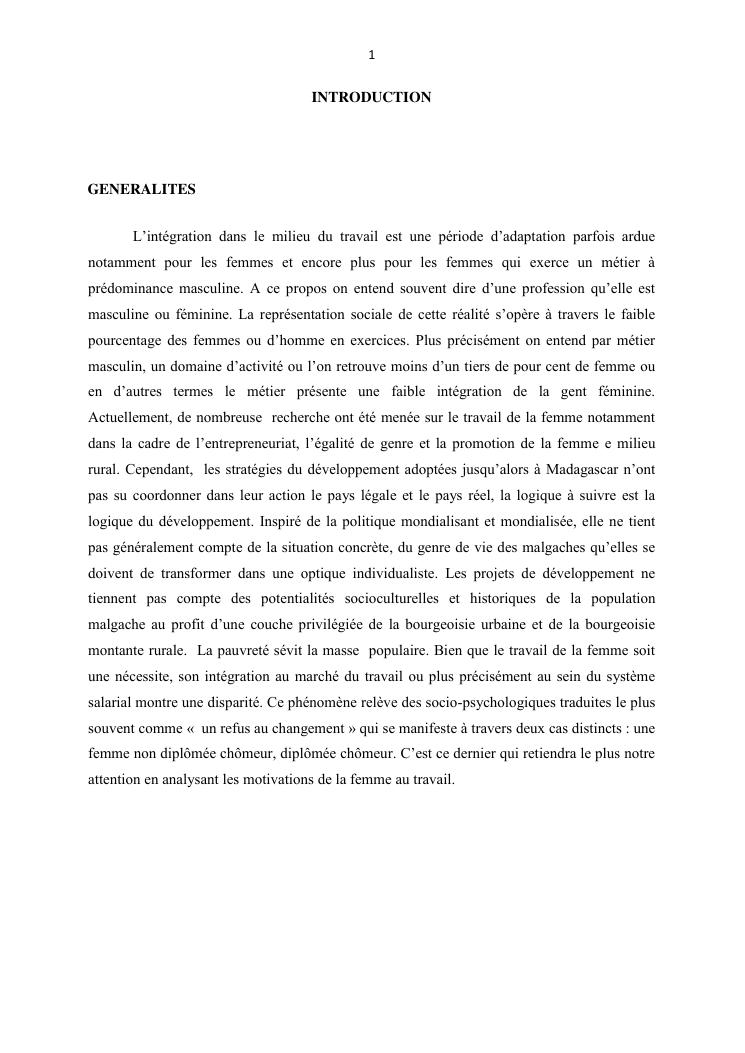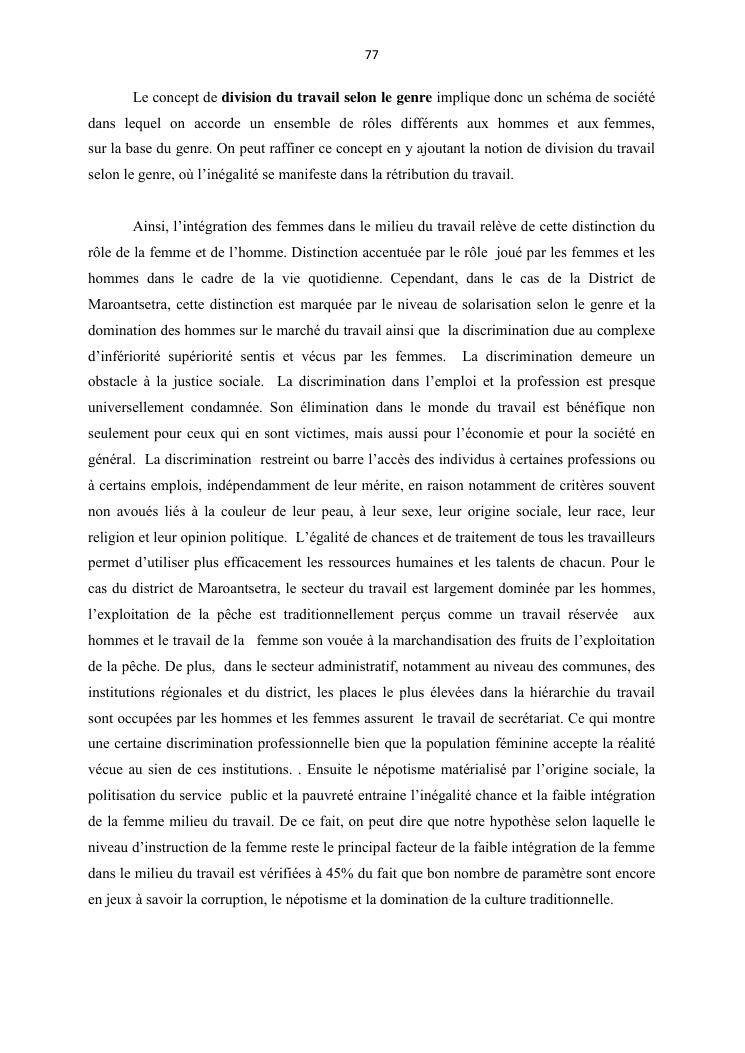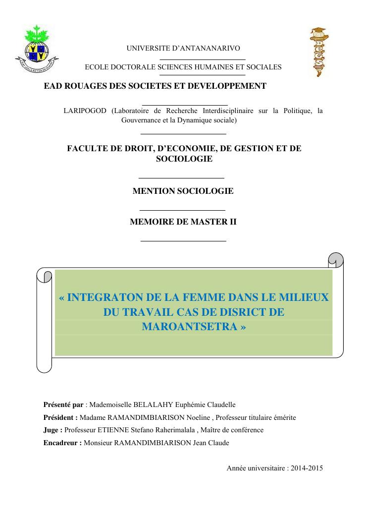 integraton de la femme dans le milieux du travail cas de disrict de maroantsetra