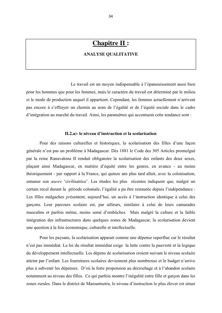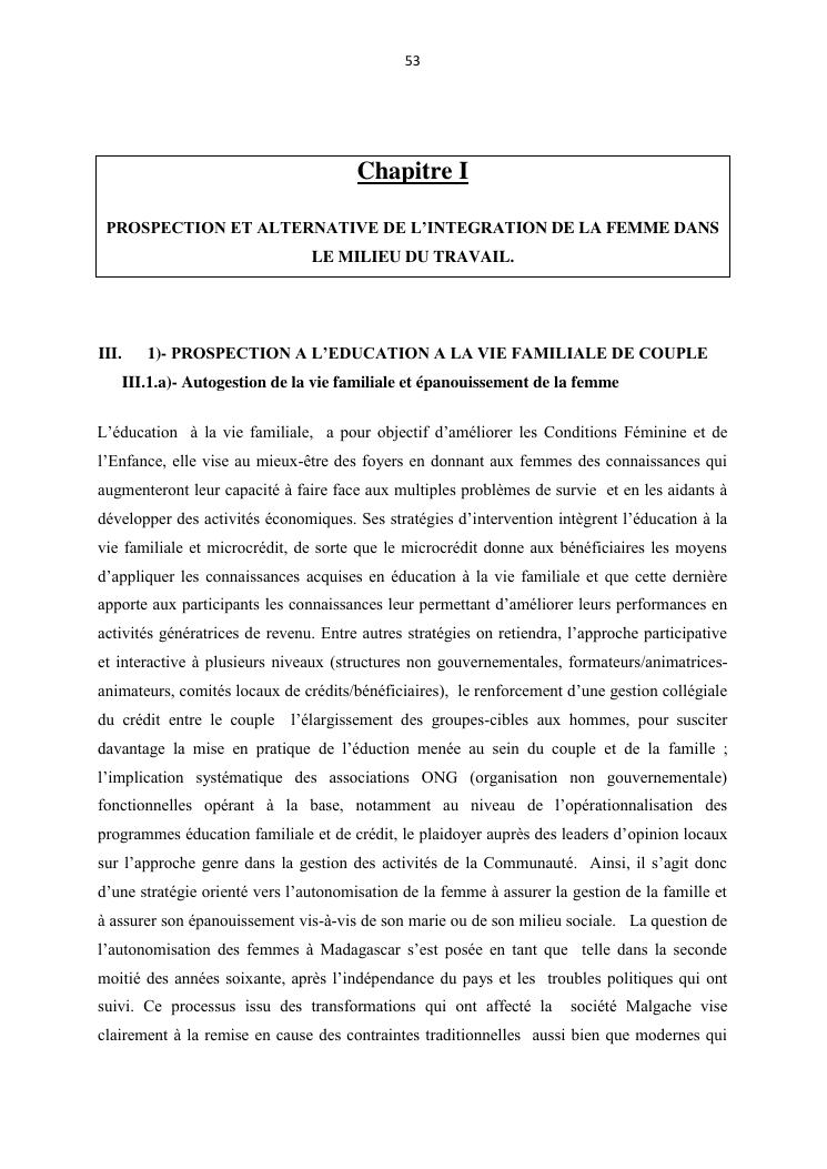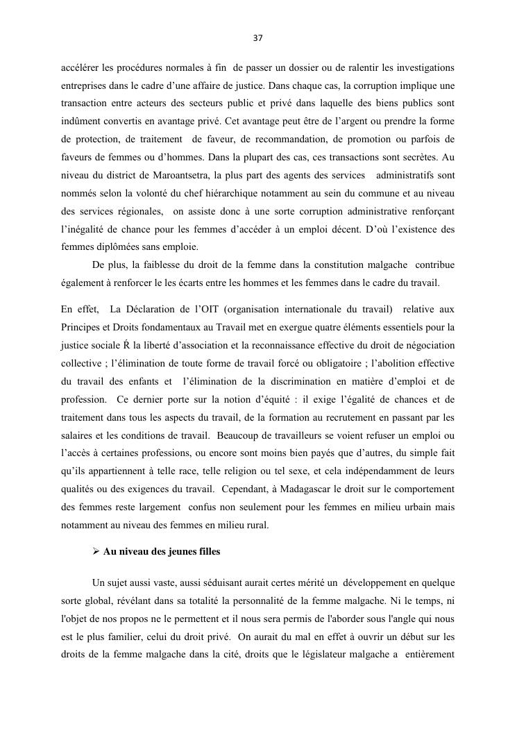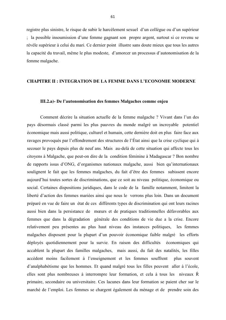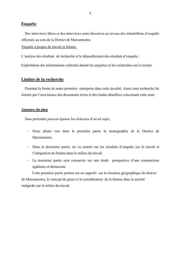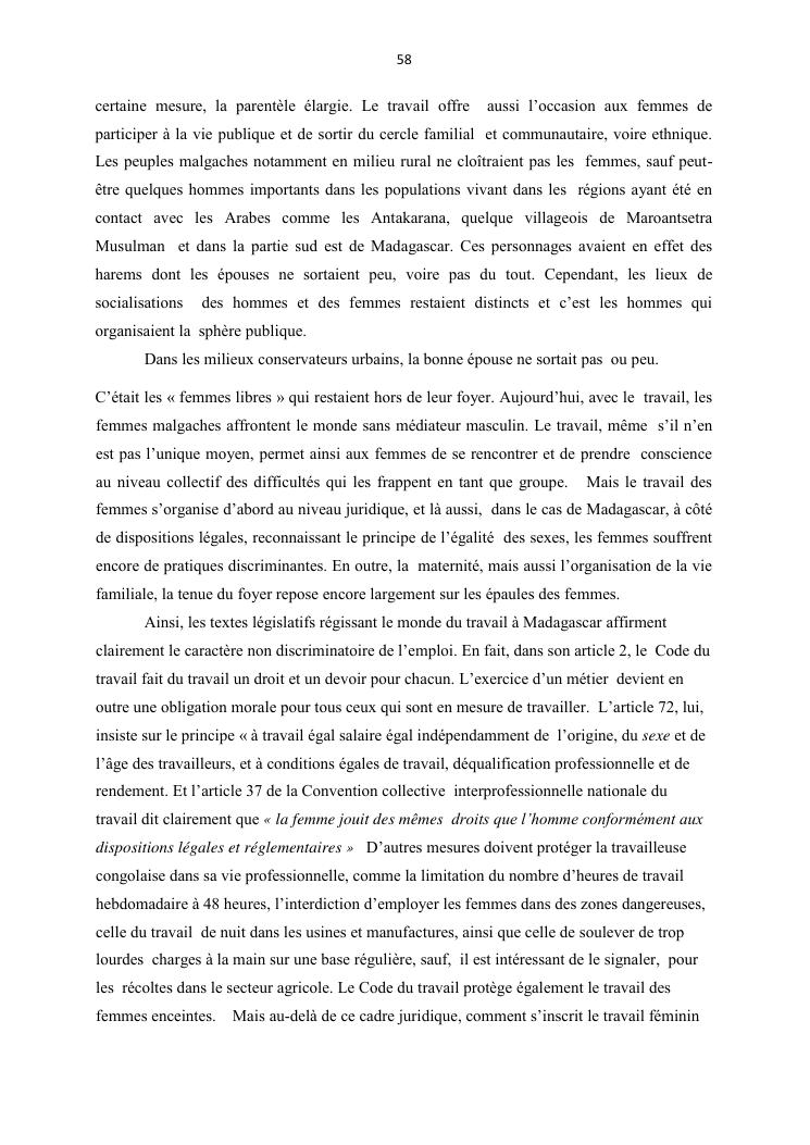 integraton de la femme dans le milieux du travail cas de disrict de maroantsetra