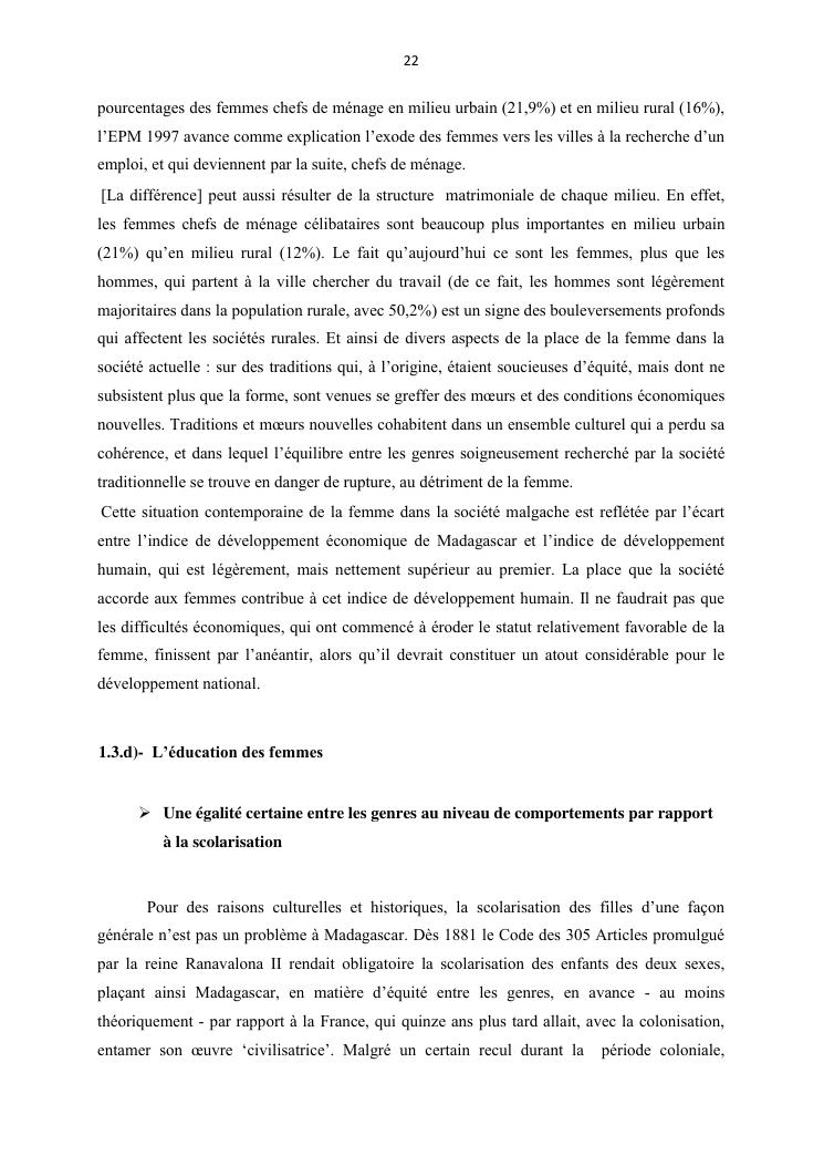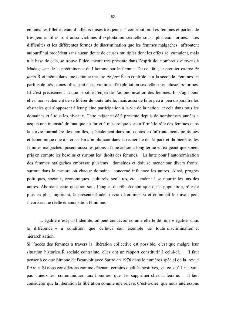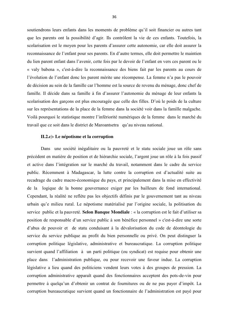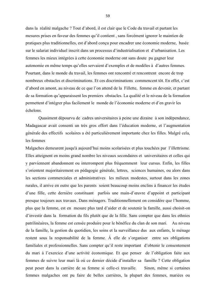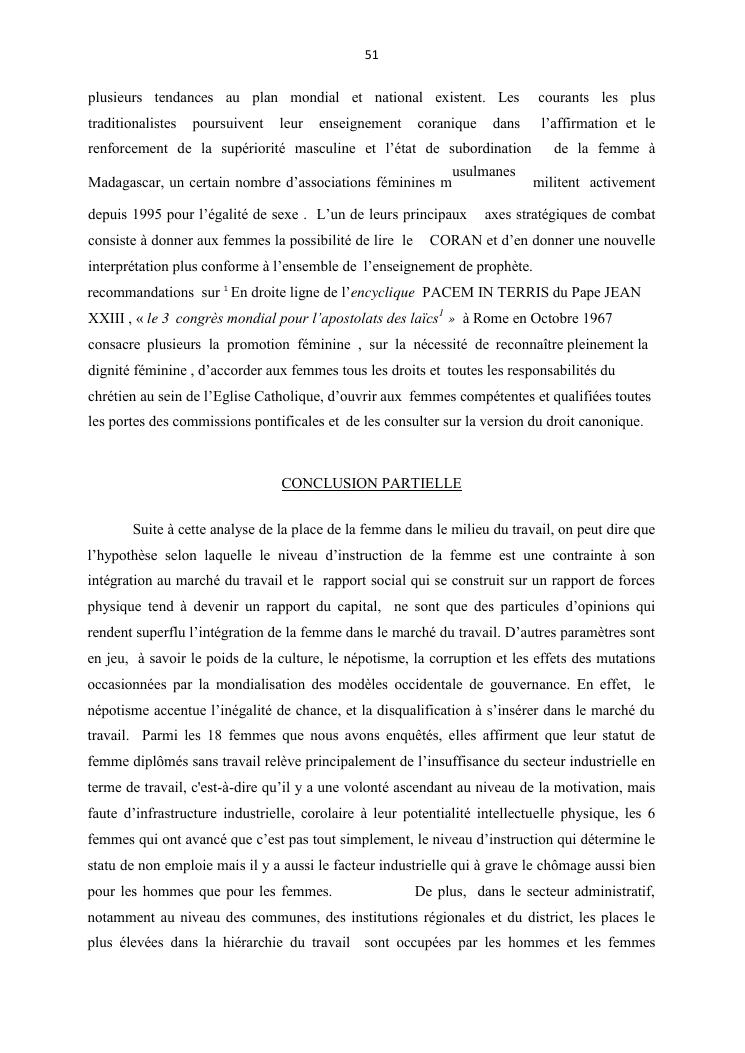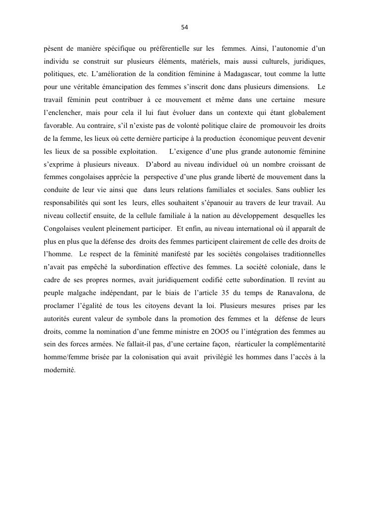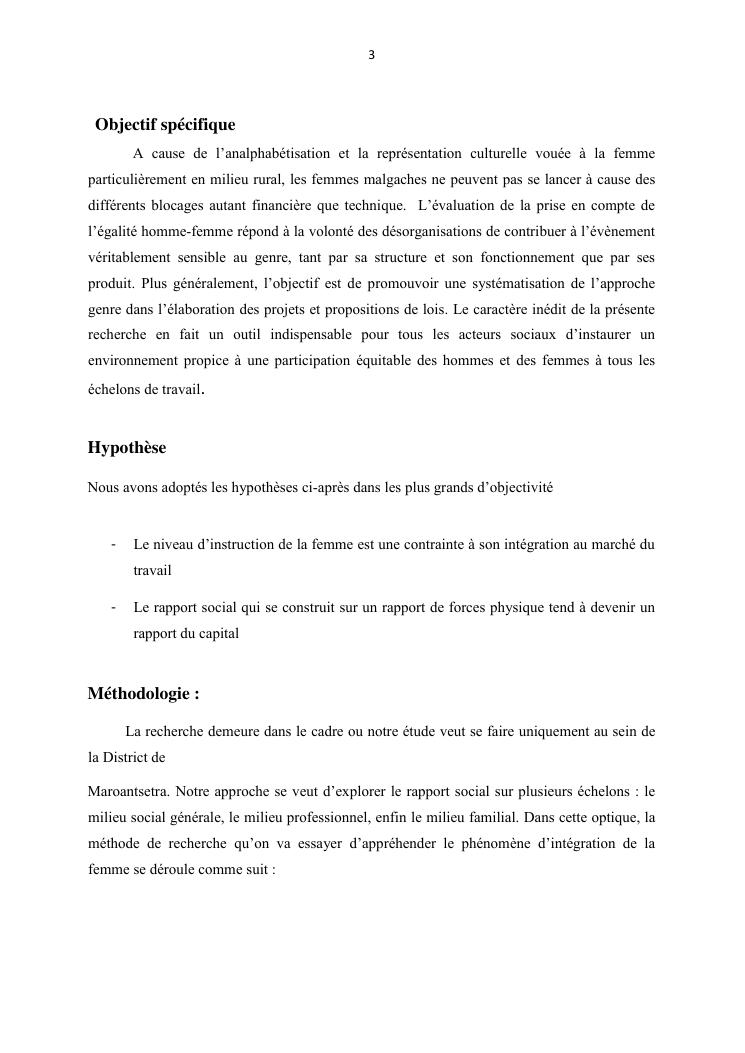 integraton de la femme dans le milieux du travail cas de disrict de maroantsetra