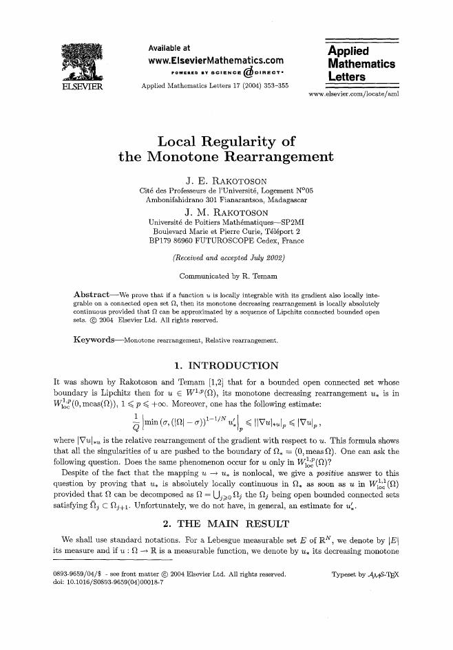 quelques elements d'analyse non-lineaire : du rearrangement monotone aux problemes d'evolution de surface. volume 1 : publications