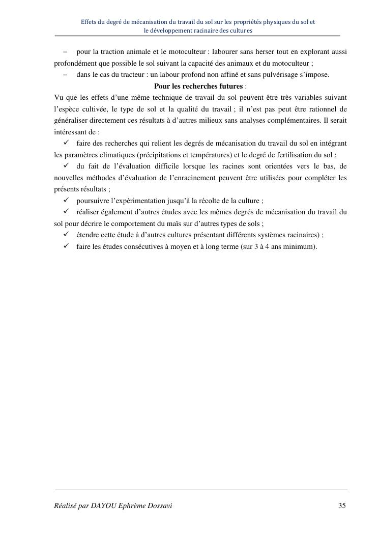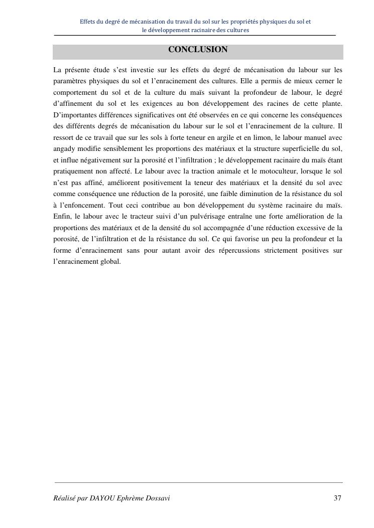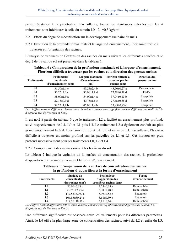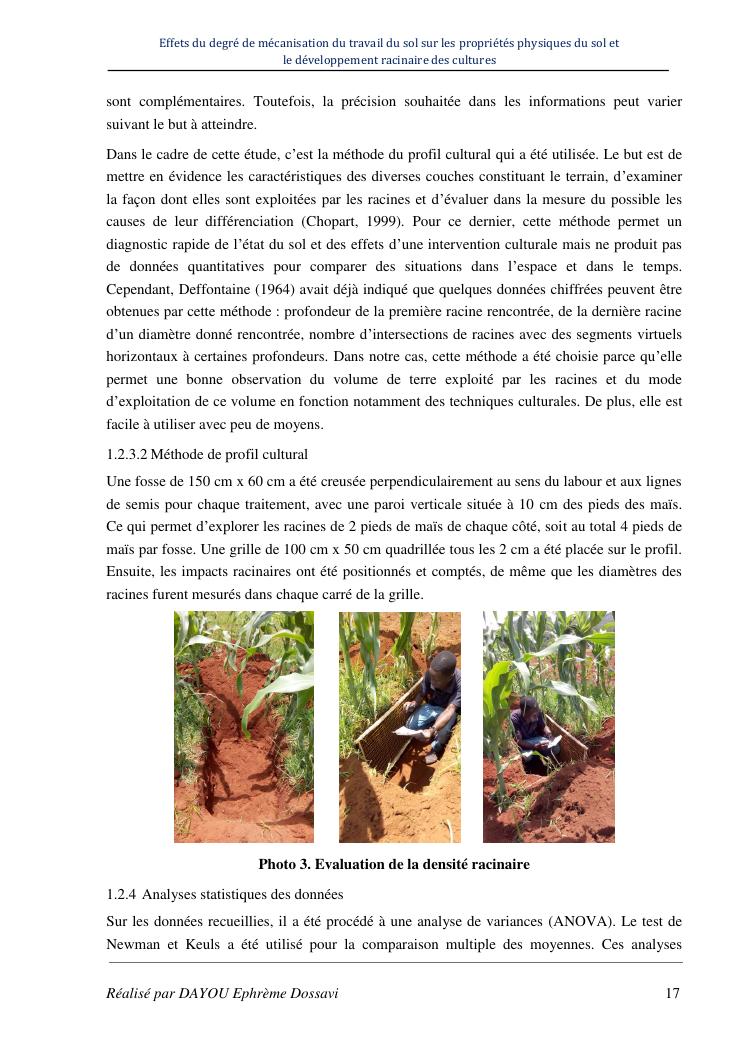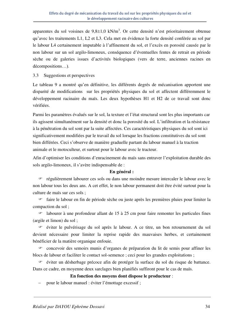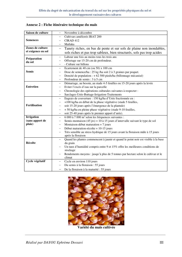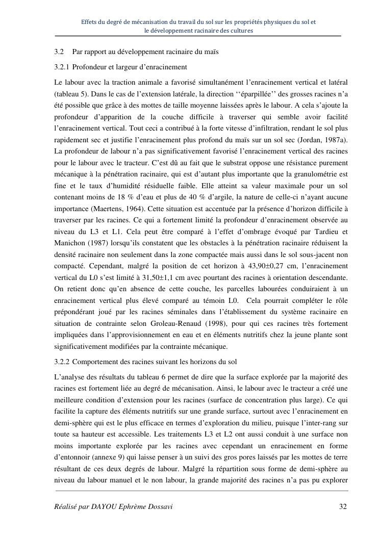 effets du degre de mecanisation du travail du sol sur les proprietes physiques du sol et le developpement racinaire du maïs