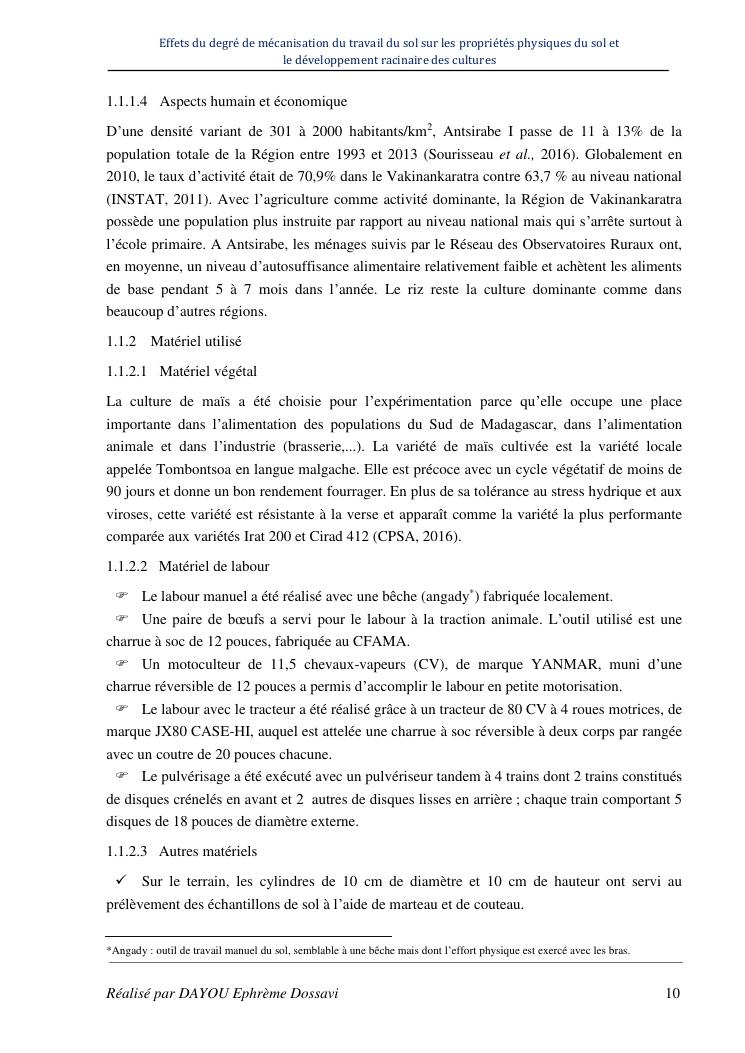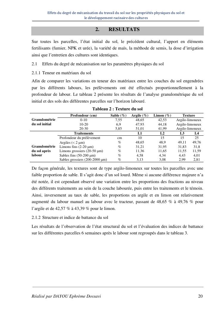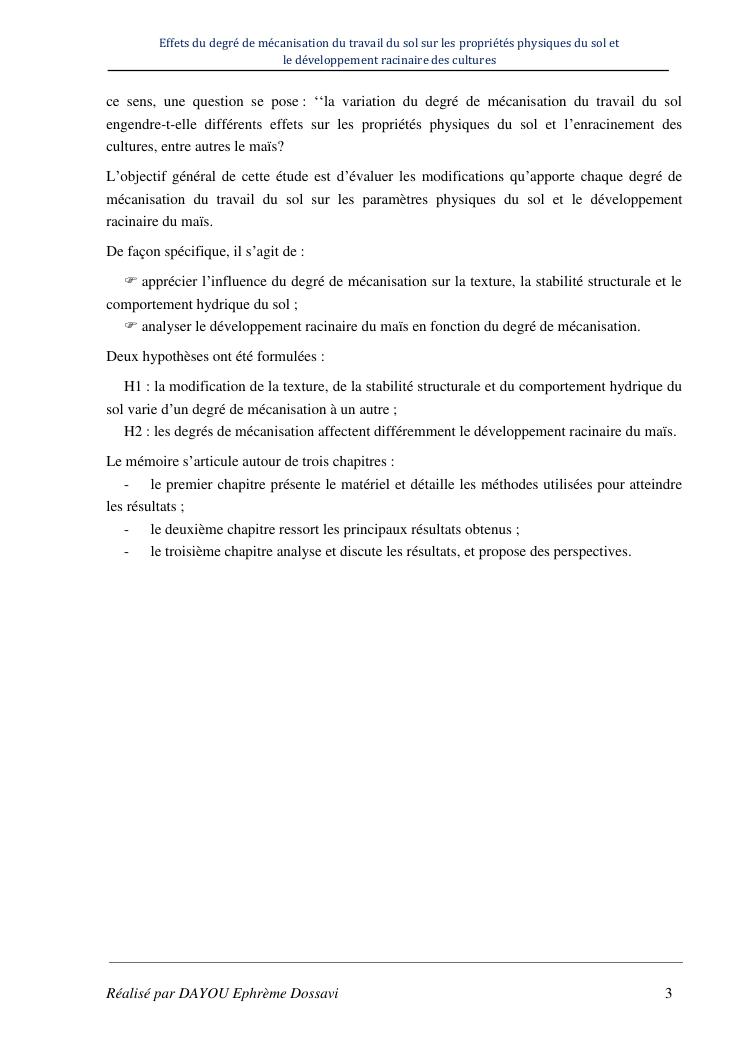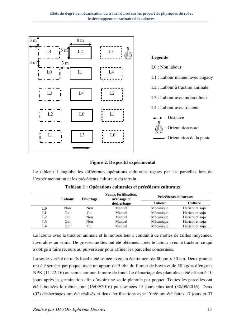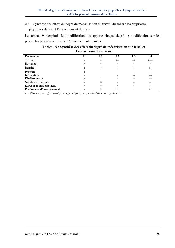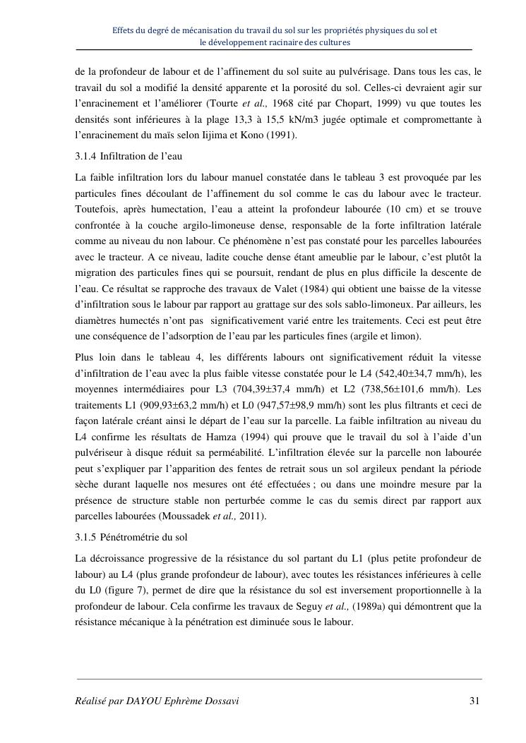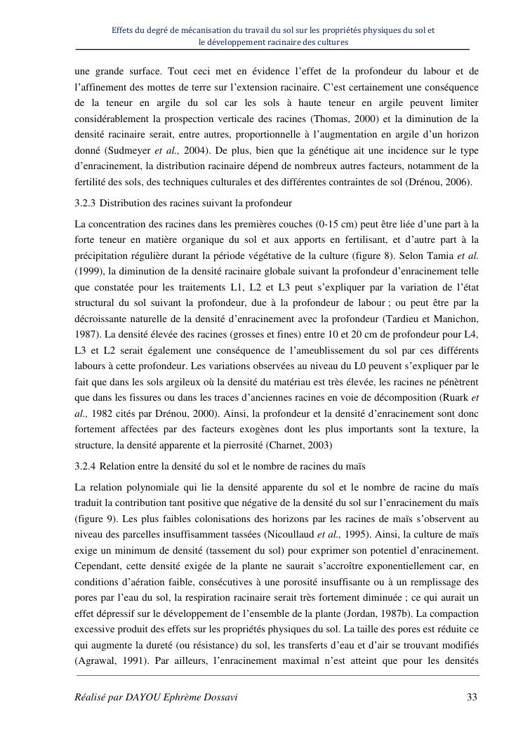 effets du degre de mecanisation du travail du sol sur les proprietes physiques du sol et le developpement racinaire du maïs