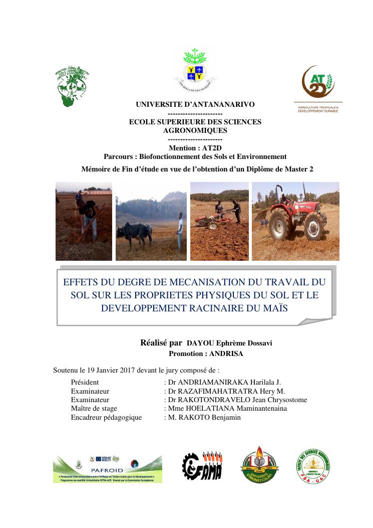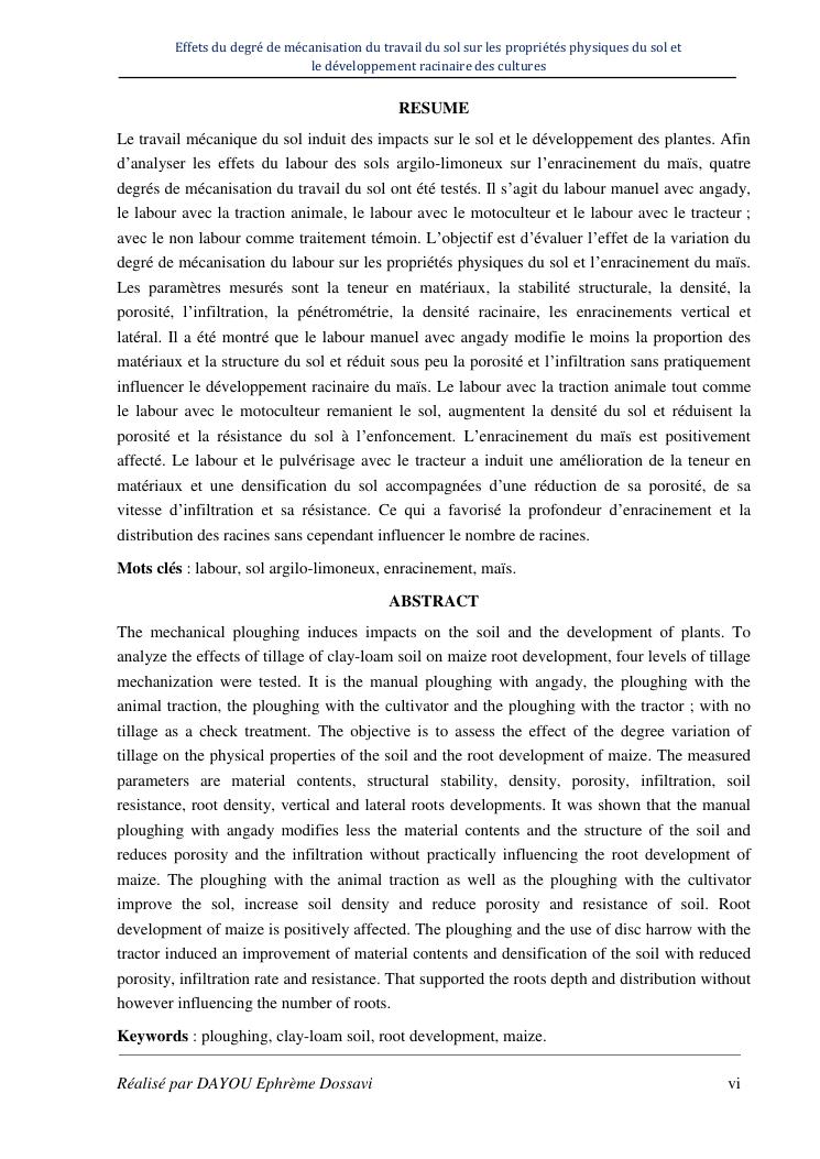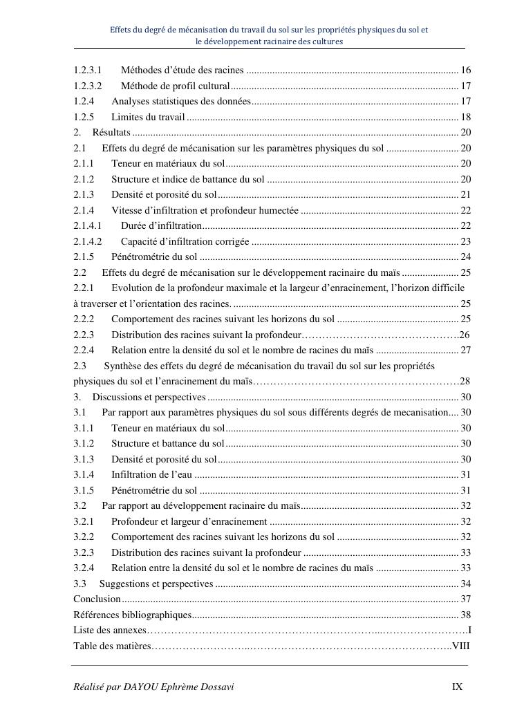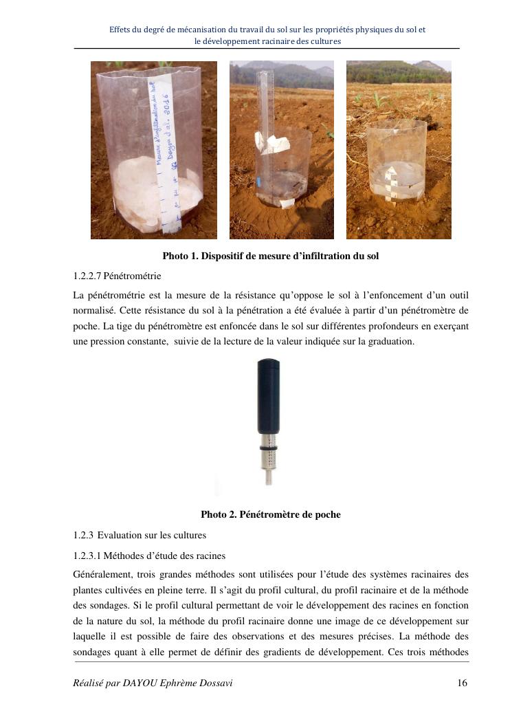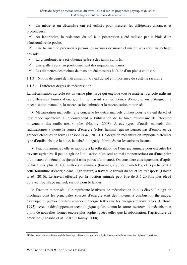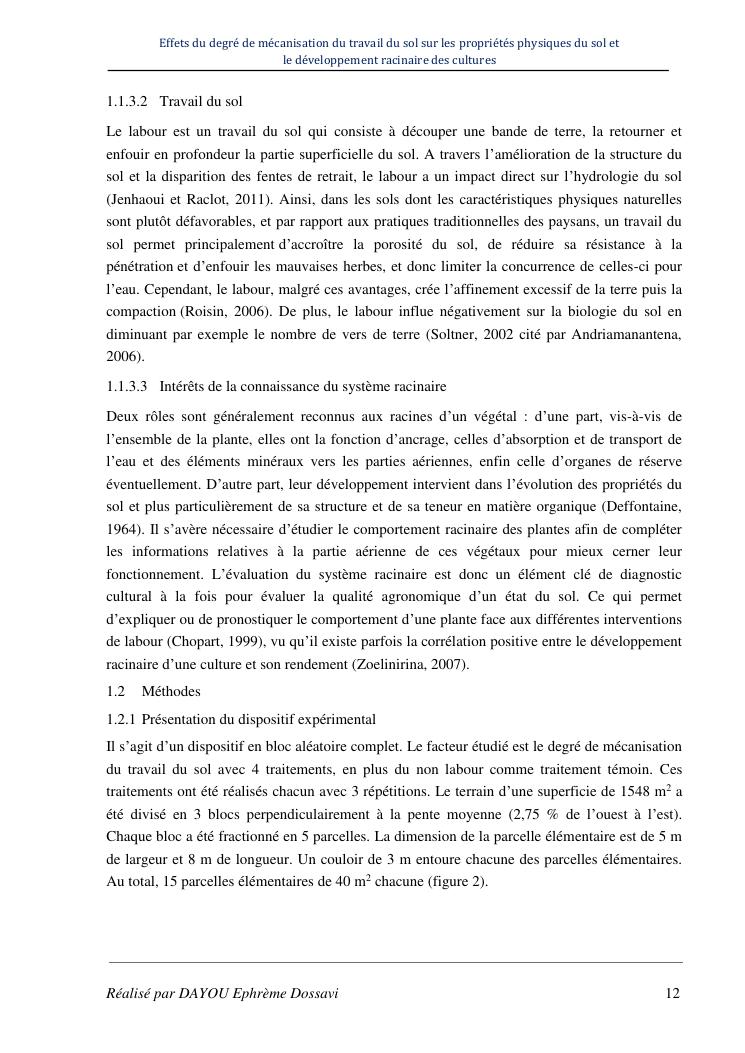 effets du degre de mecanisation du travail du sol sur les proprietes physiques du sol et le developpement racinaire du maïs