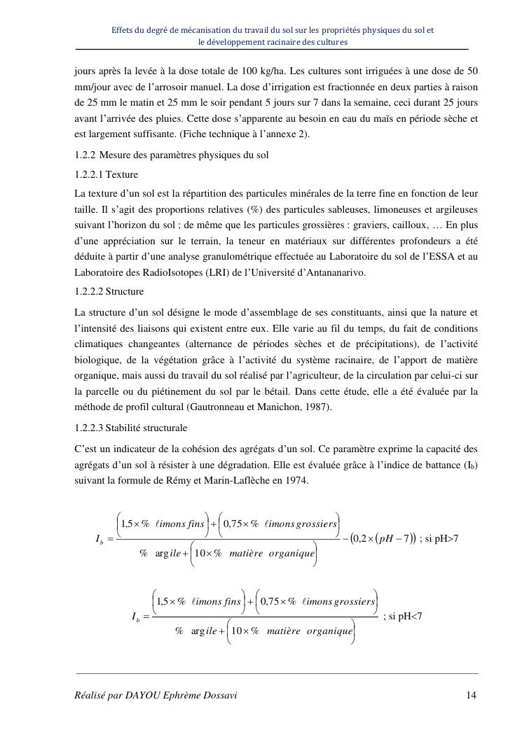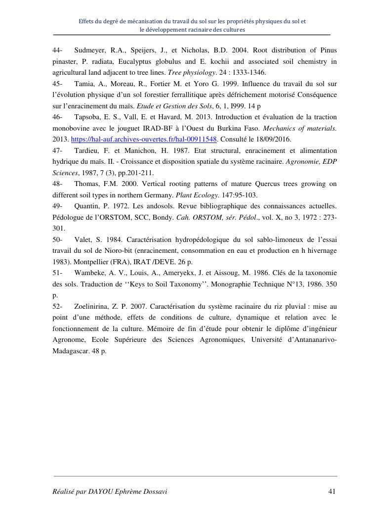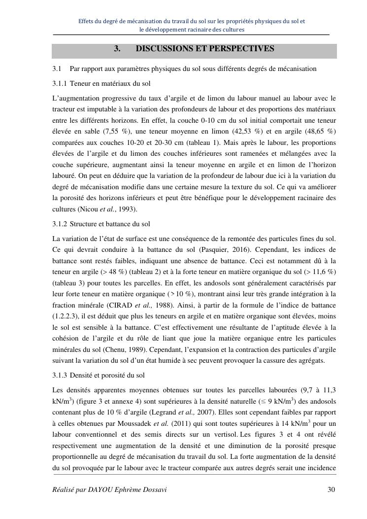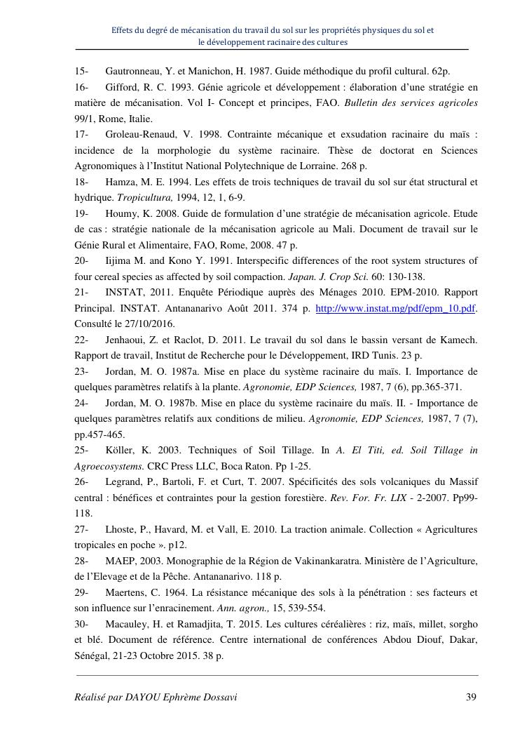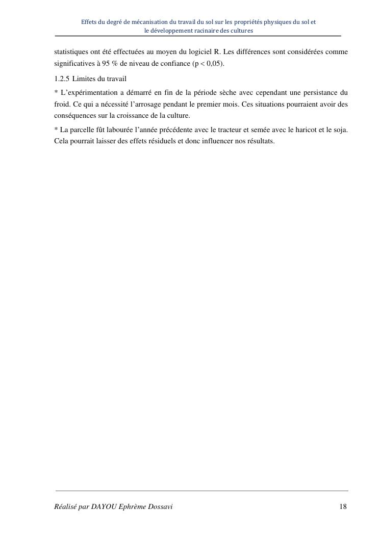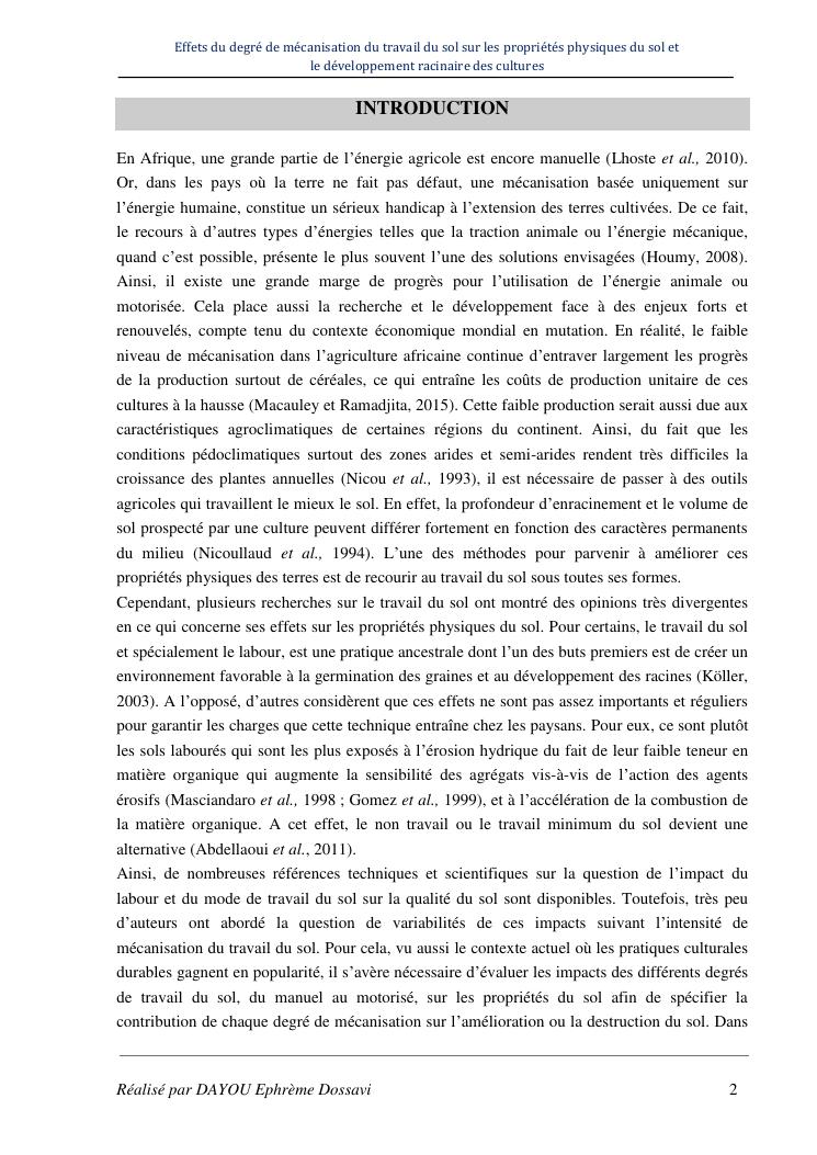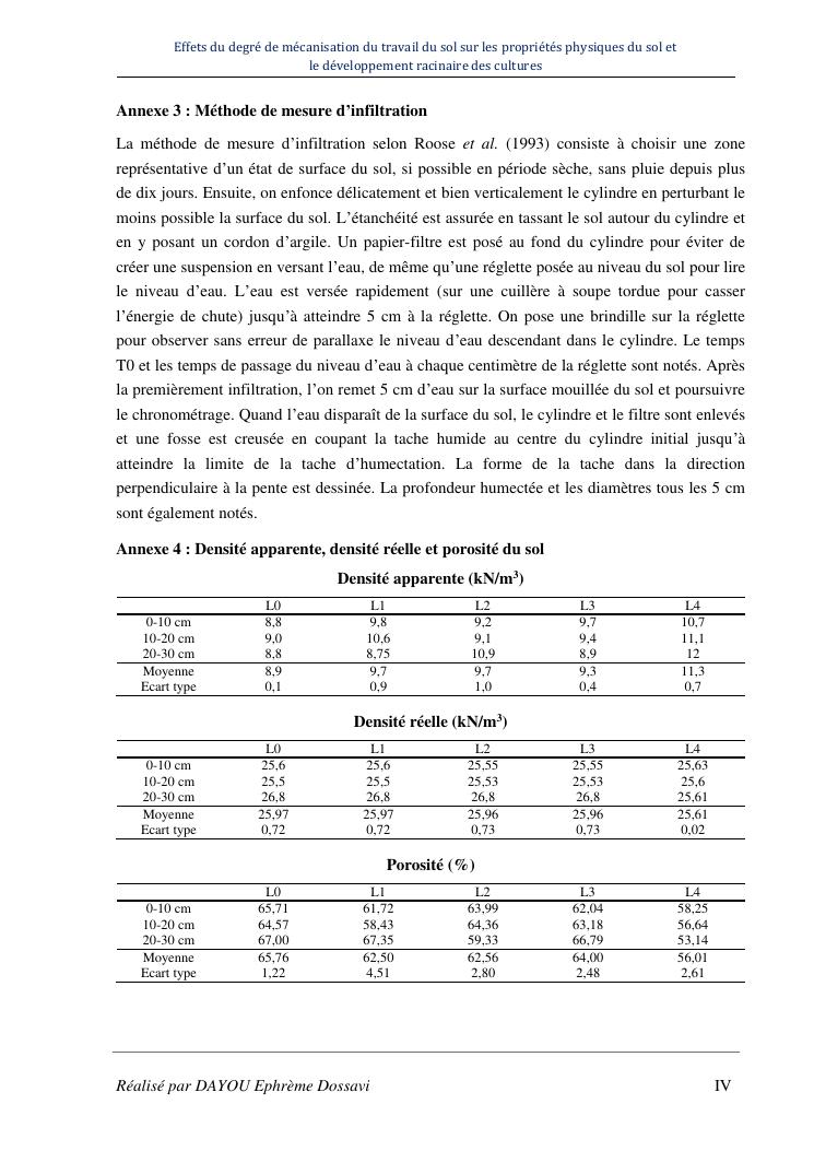effets du degre de mecanisation du travail du sol sur les proprietes physiques du sol et le developpement racinaire du maïs
