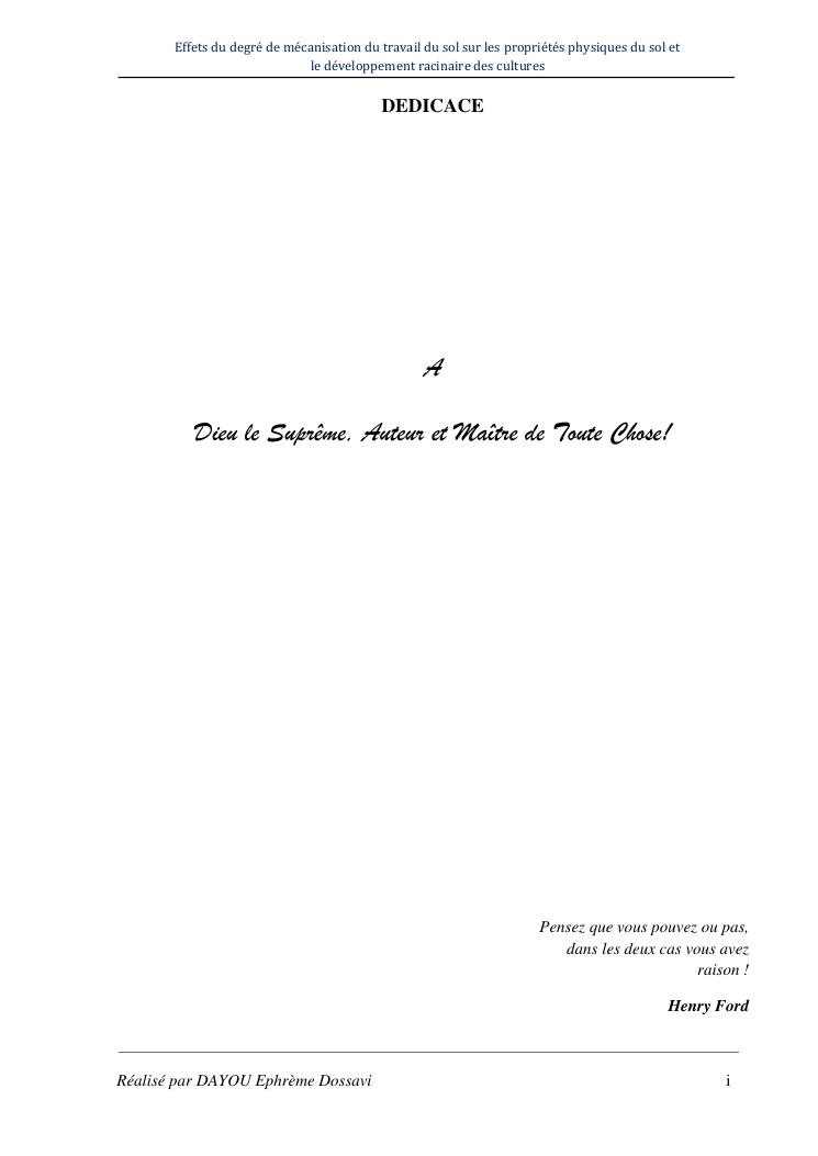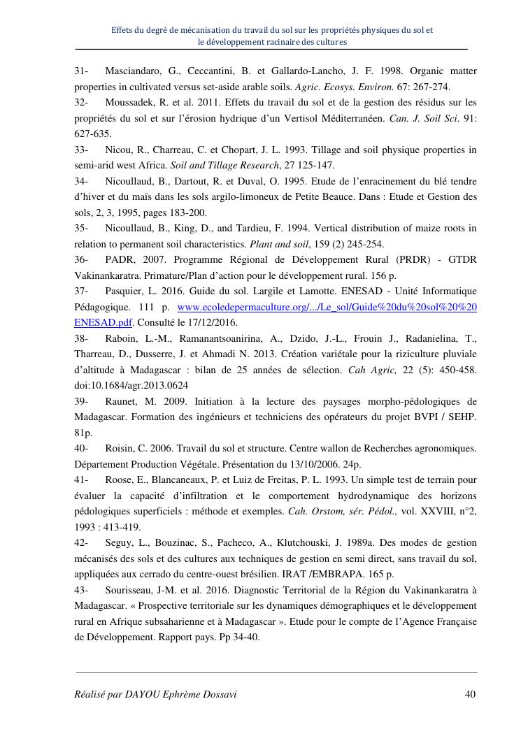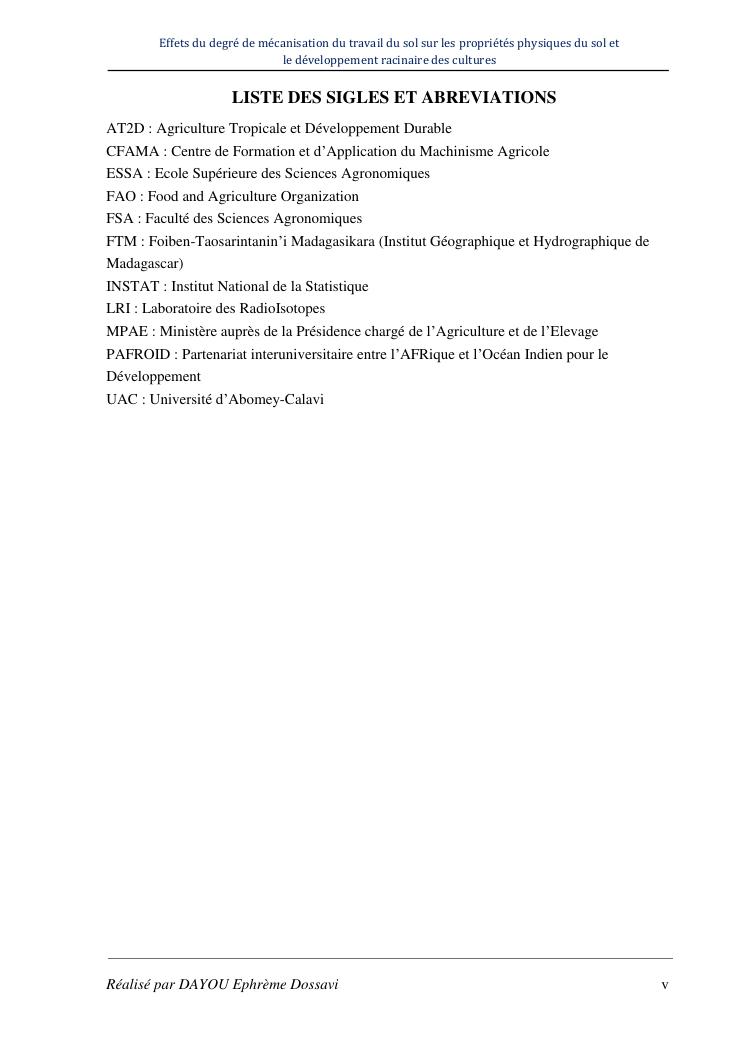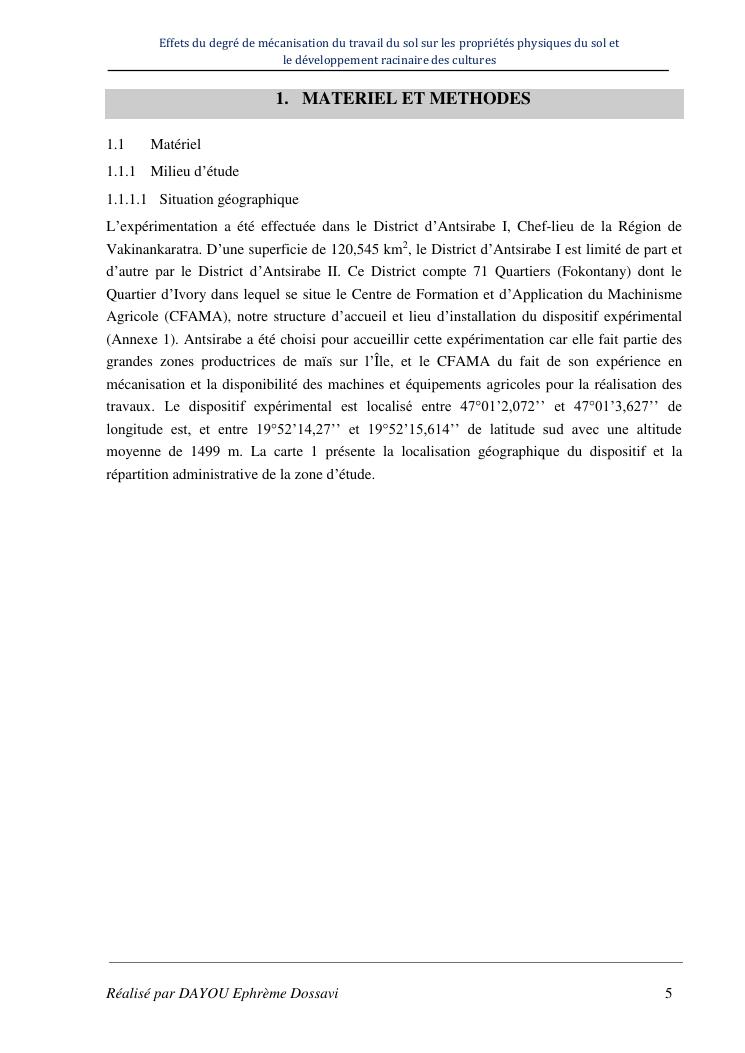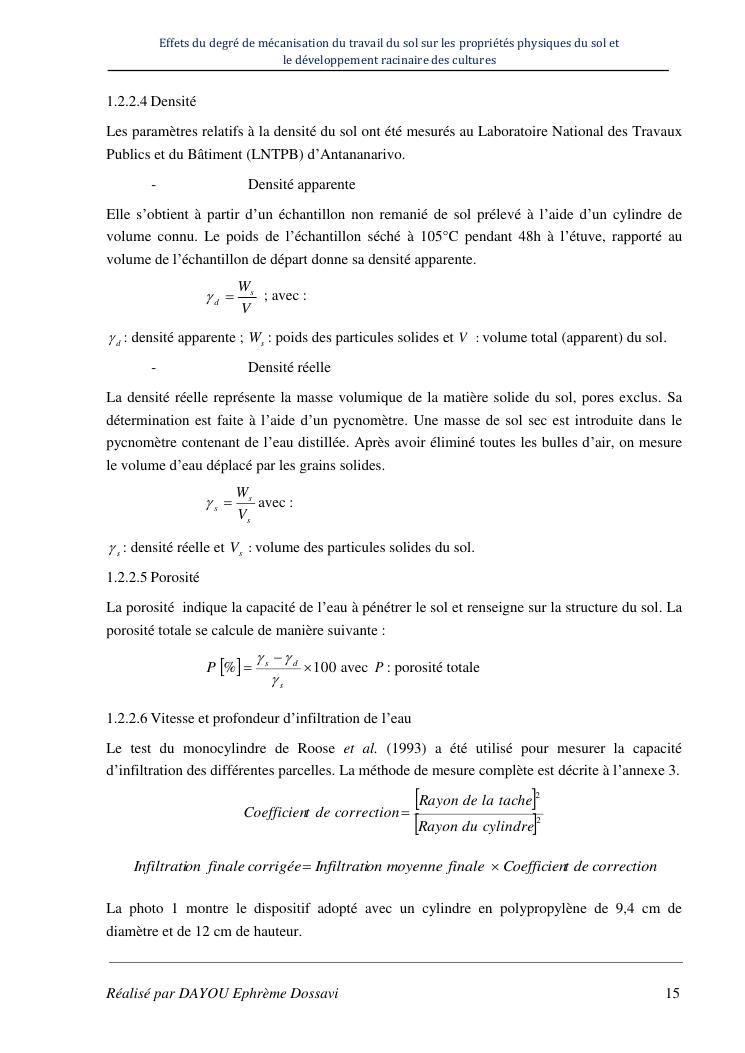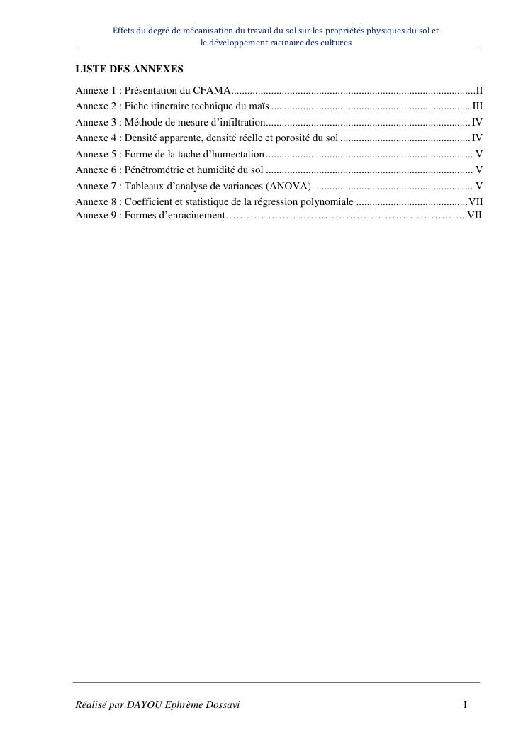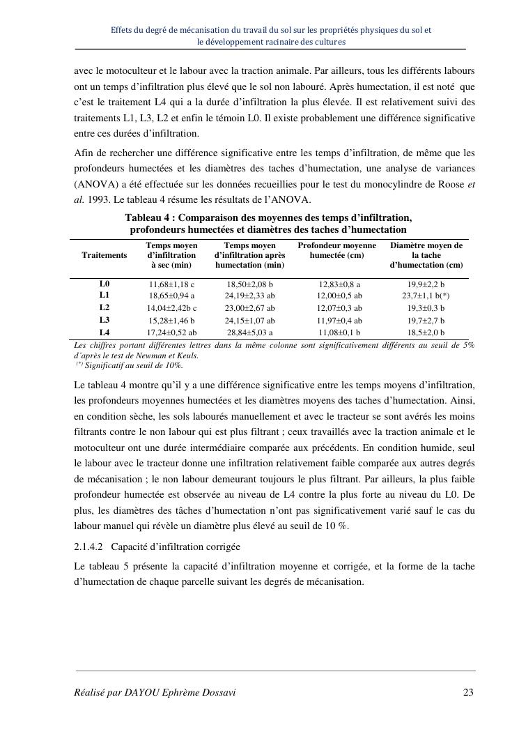 effets du degre de mecanisation du travail du sol sur les proprietes physiques du sol et le developpement racinaire du maïs