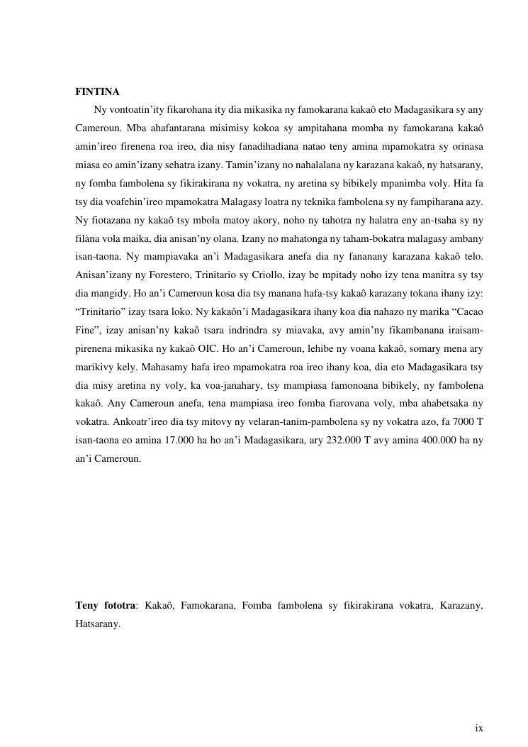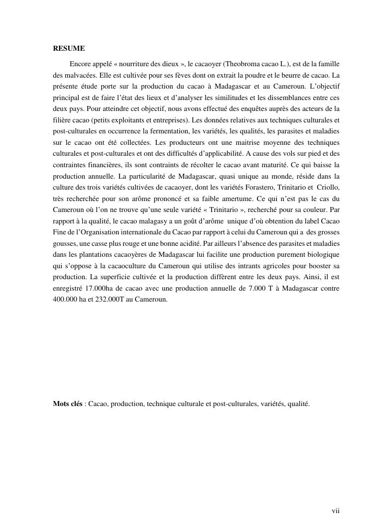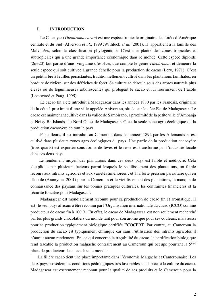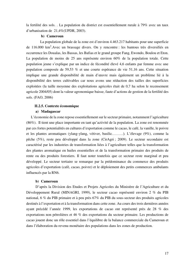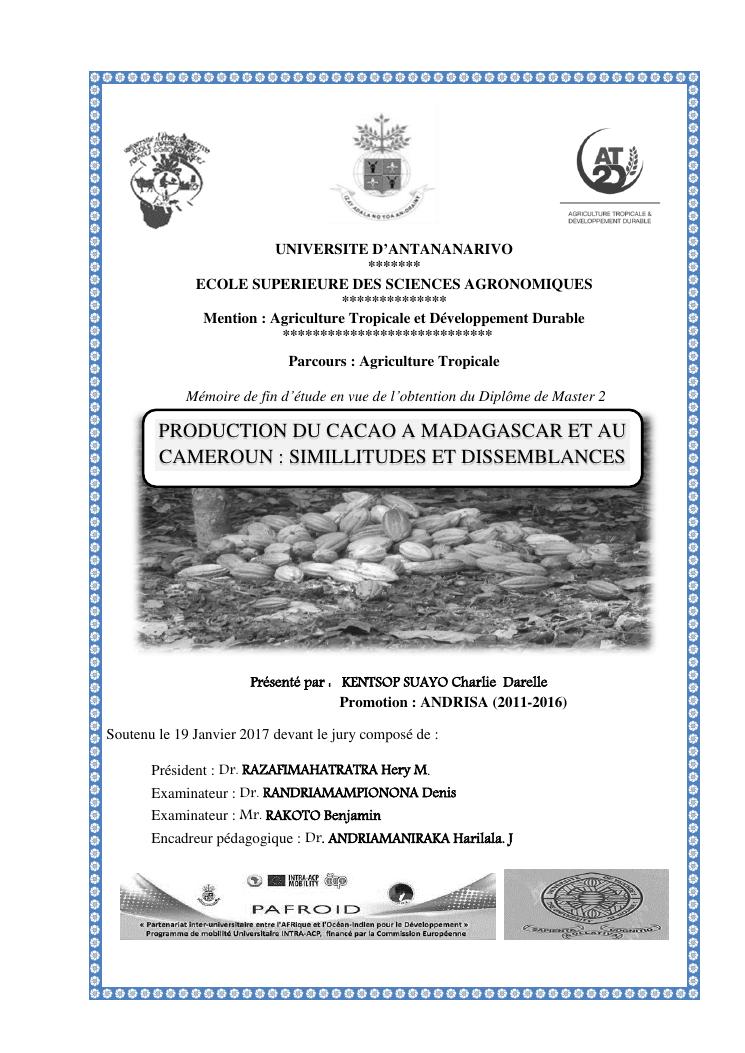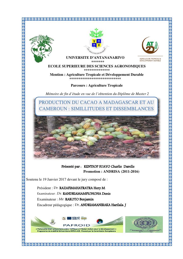 production du cacao a madagascar et au cameroun : simillitudes et dissemblances