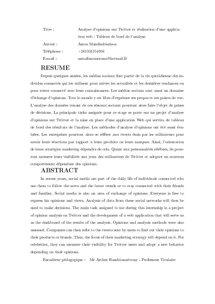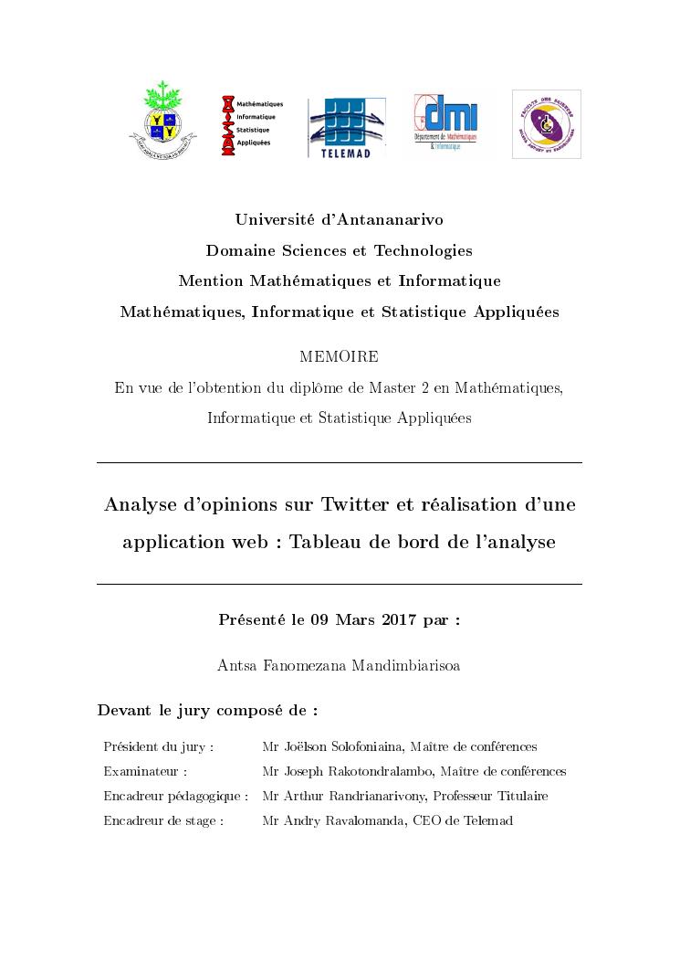 analyse d'opinions sur twitter et réalisation d'une application web : tableau de bord de l'analyse
